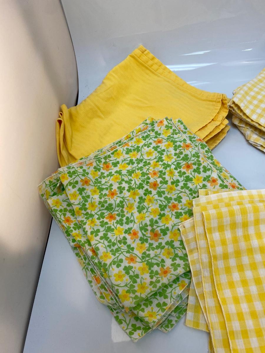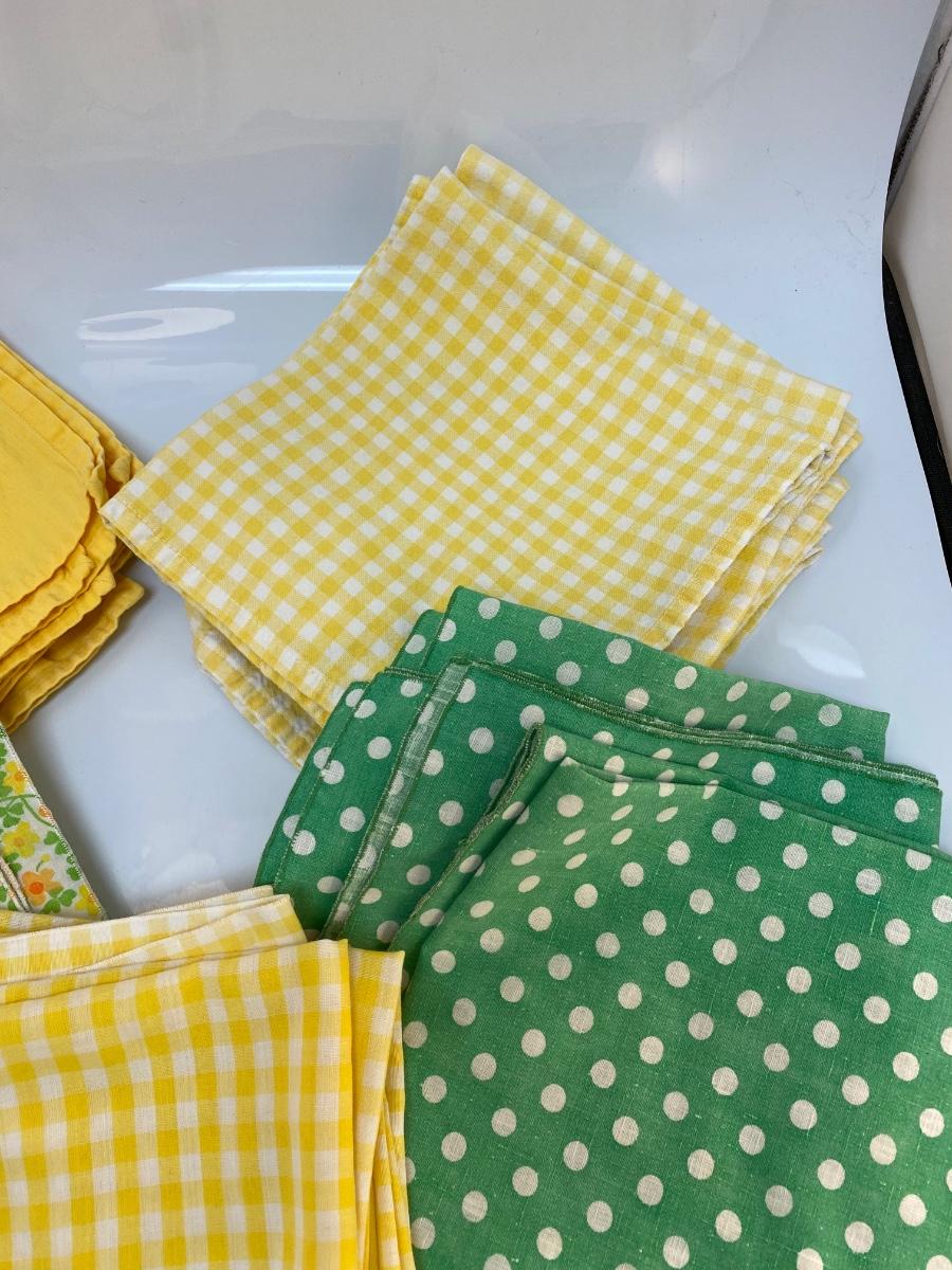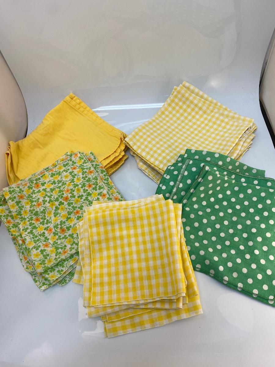 Mixed Lot of Yellow and Green Colored Dinner Fabric Napkins. In good previously used condition. Mix and match, various quantities of each pattern.