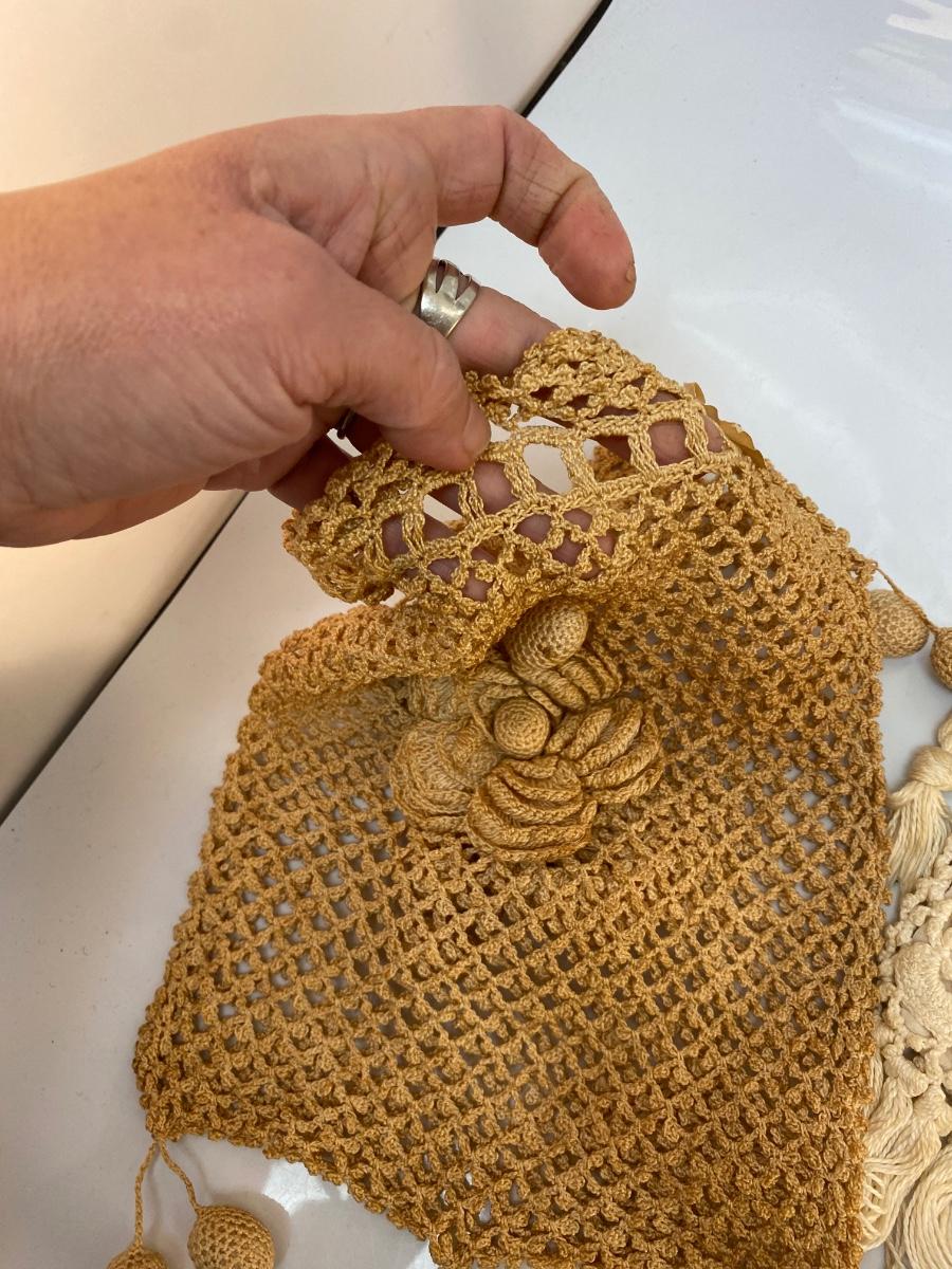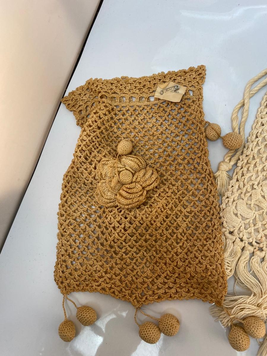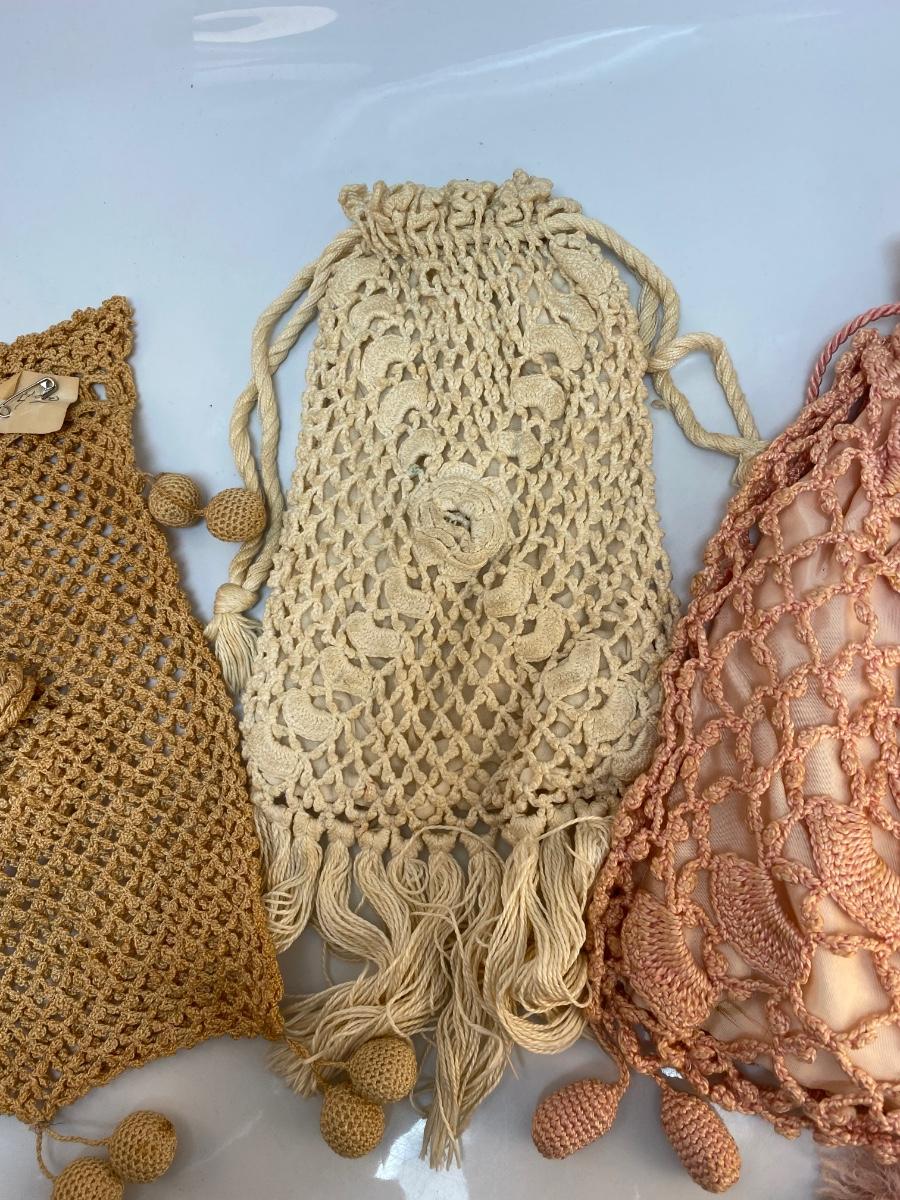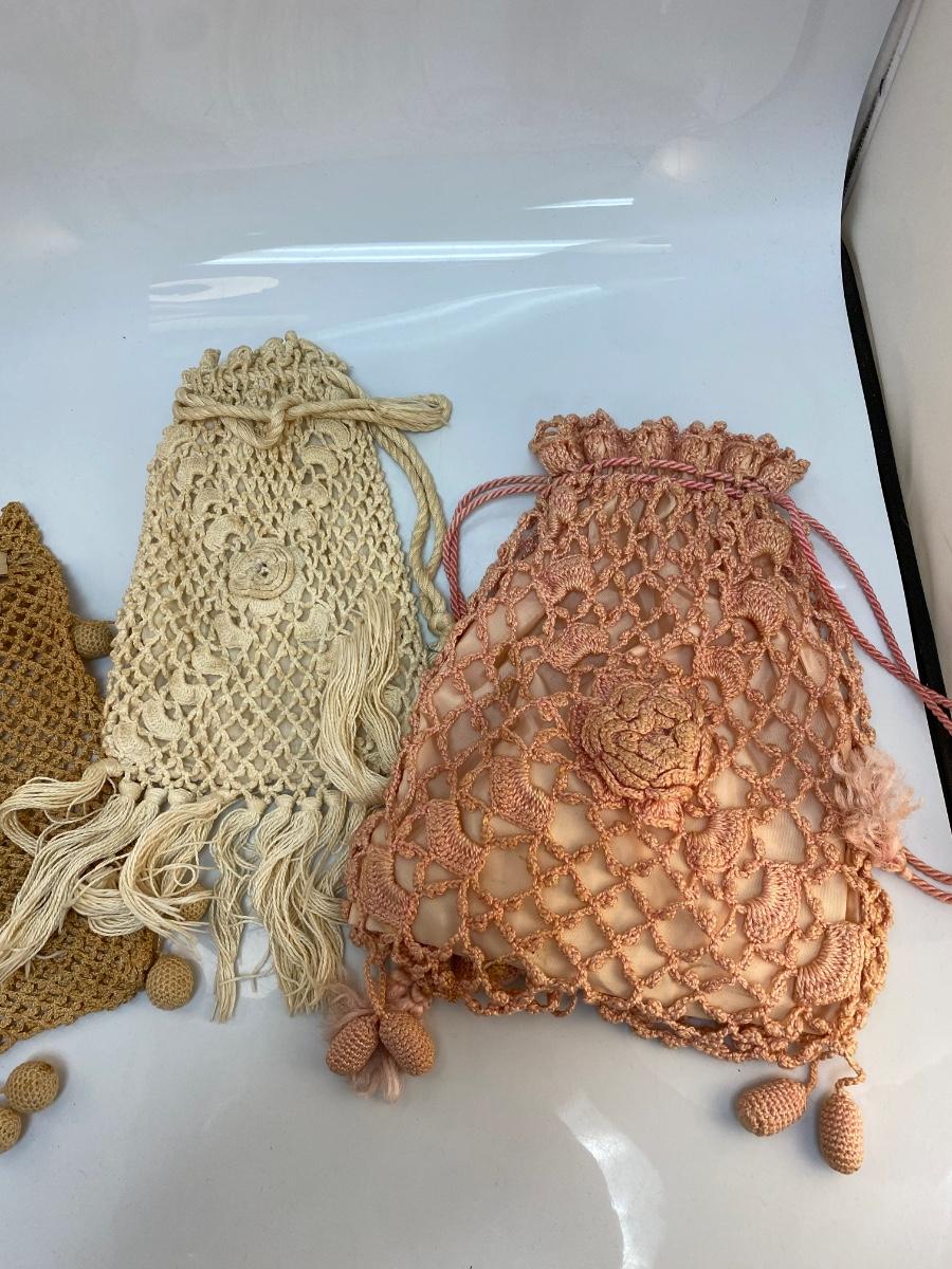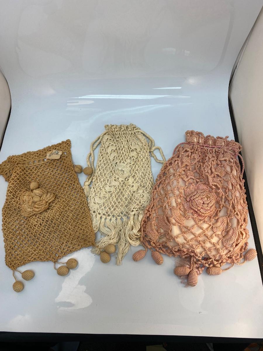 Set of 3 Vintage Victorian Boho Crochet Drawstring Purse Bag