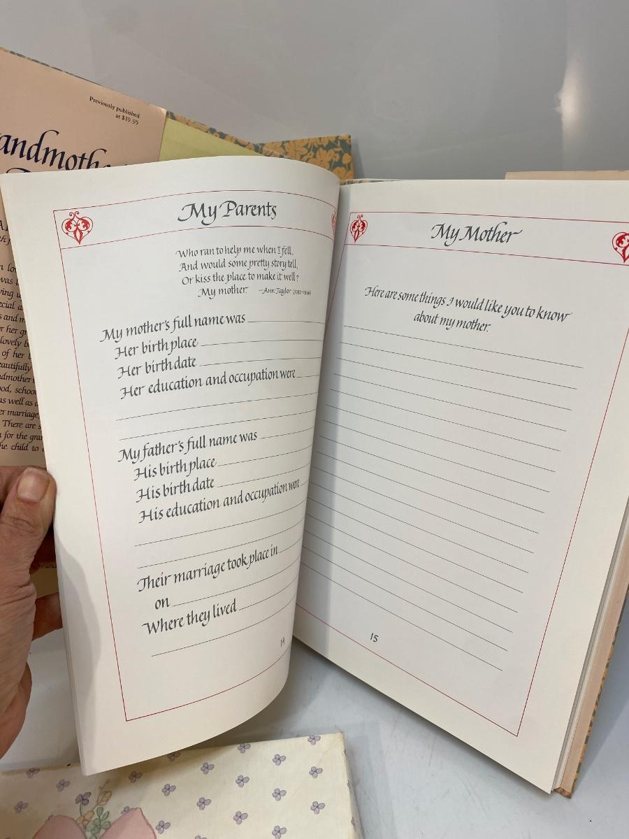 Set of Three Fillable Grandmother's Books Keepsake Family Tree Memories