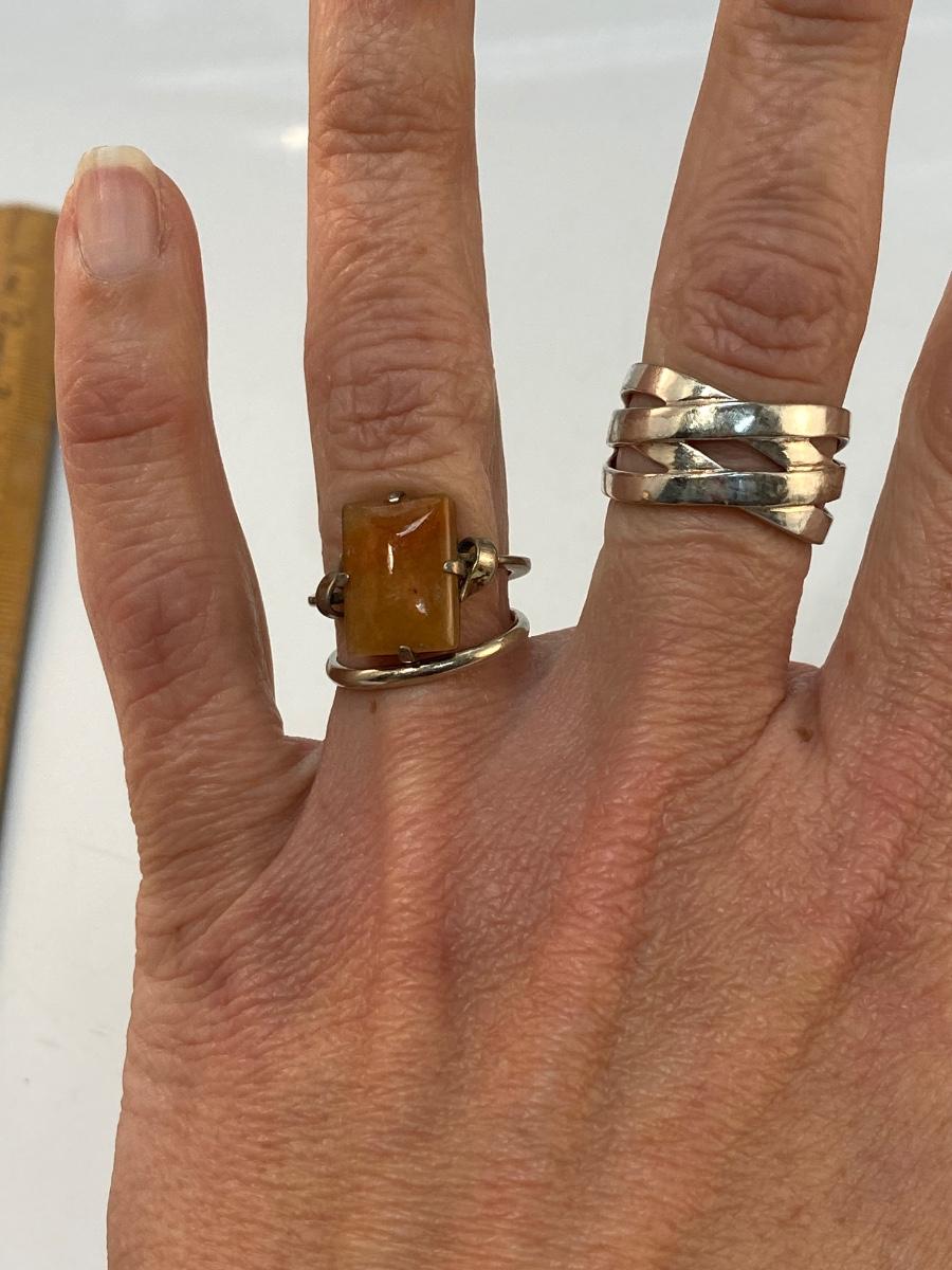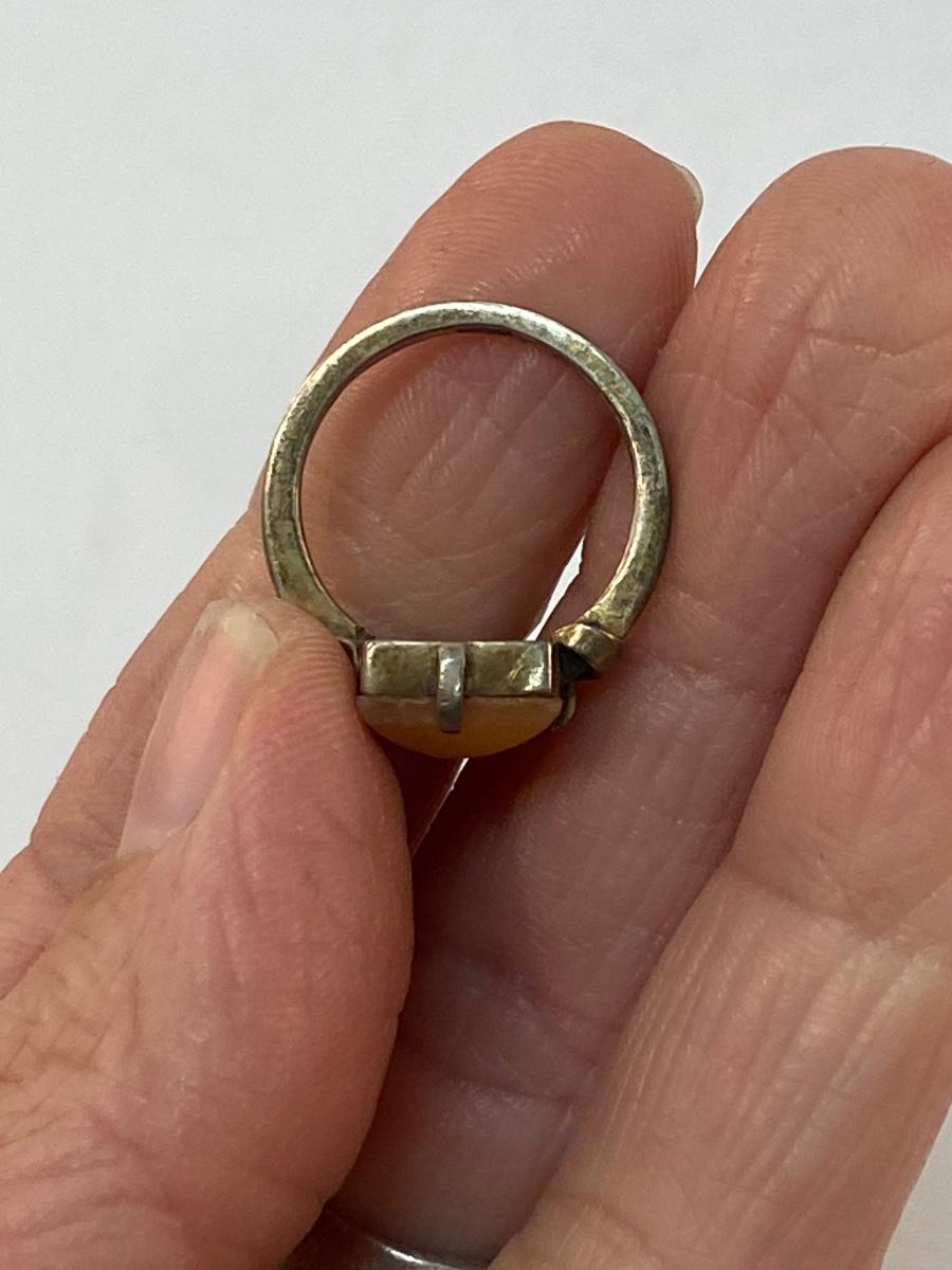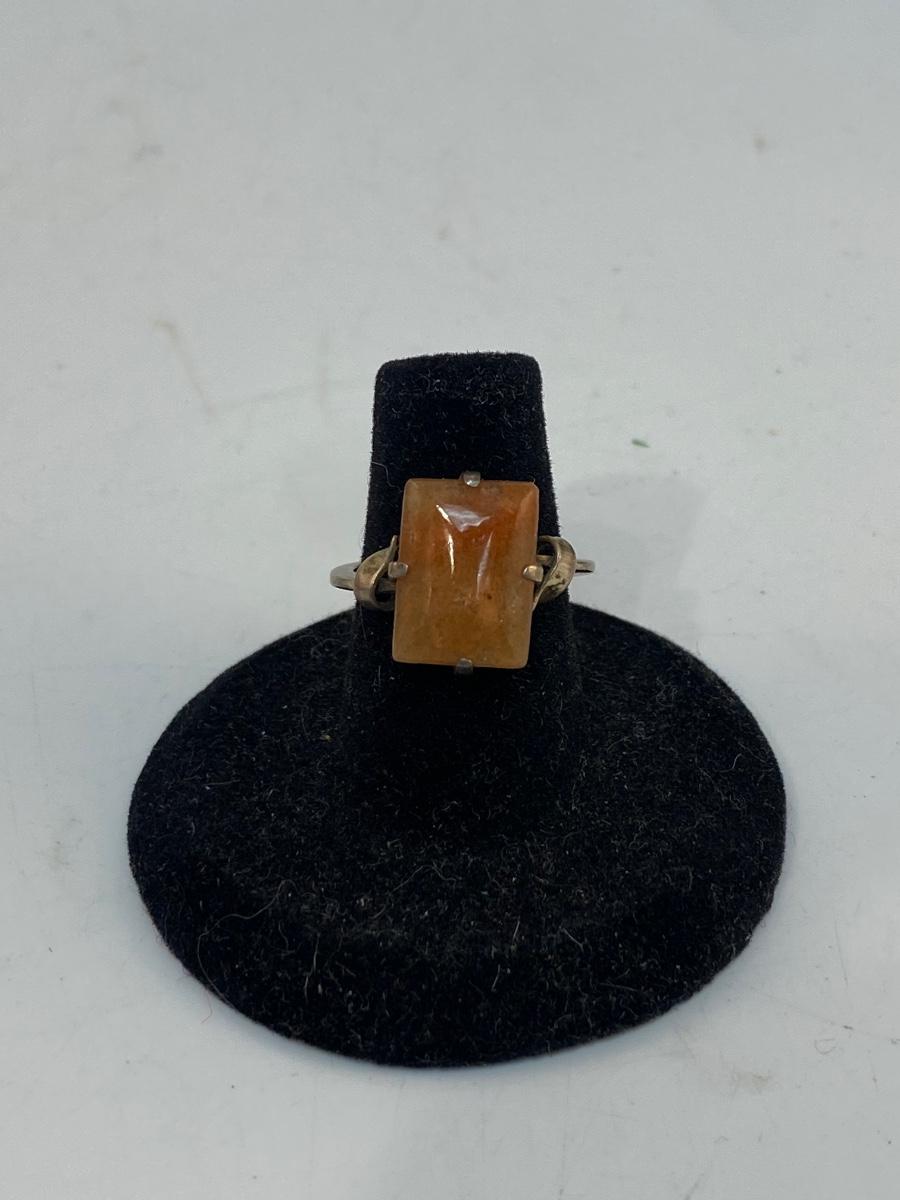 Polished Square Cut Carnelian Stone & Silver Ring. In good condition. Reddish colored stone in good condition, looks to be carnelian. There is a stamp inside, may be a sterling 925 mark but hard to read. About a size 6.