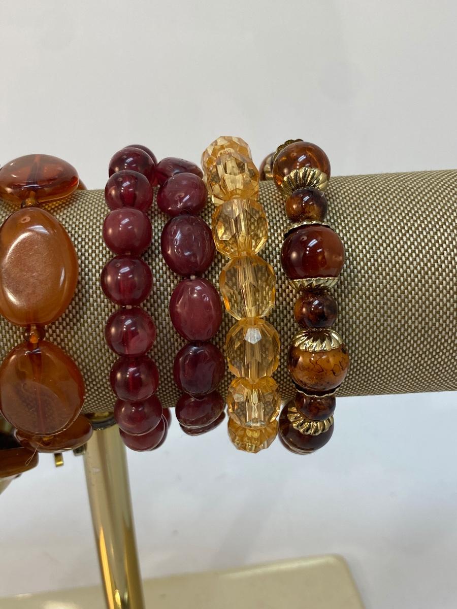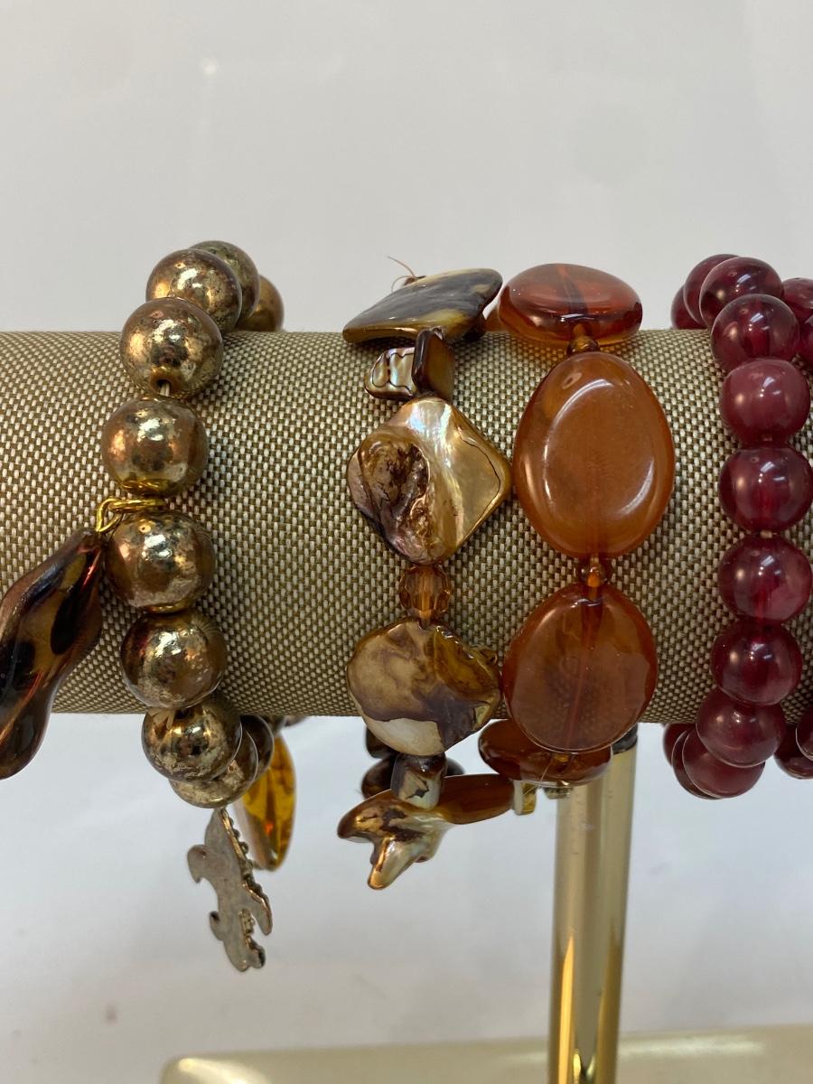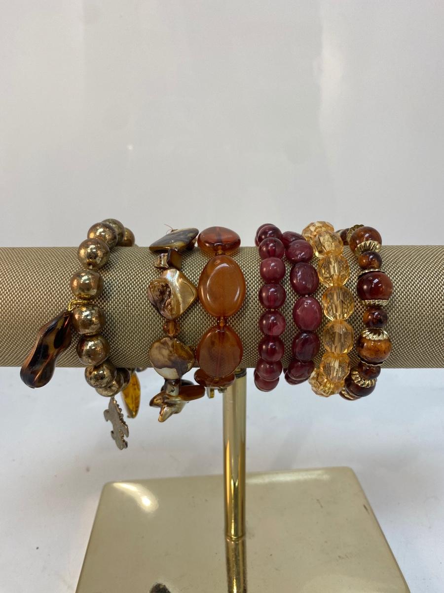Lot of 7 Neutral Natural Material Stretchy Beaded Bracelets. Good condition.