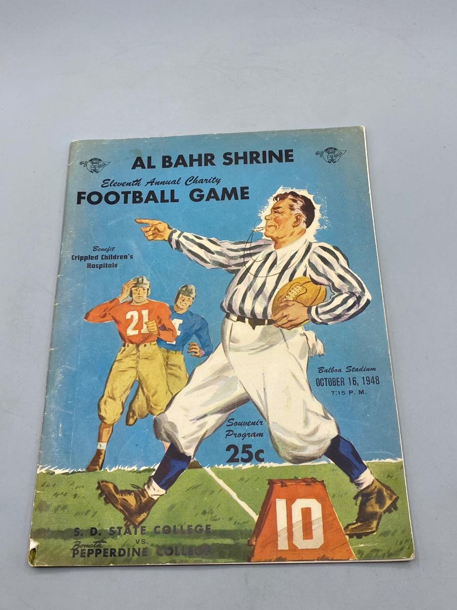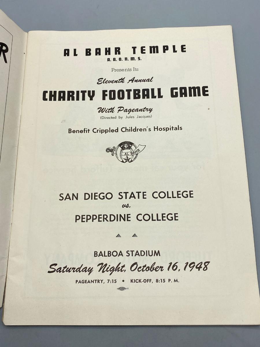 1948 Al Bahr Temple Charity Football Game Program Magazine San Diego State vs. Pepperdine. In vintage condition, some wear.
