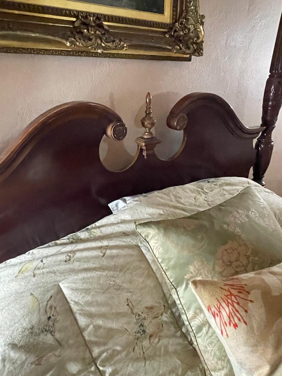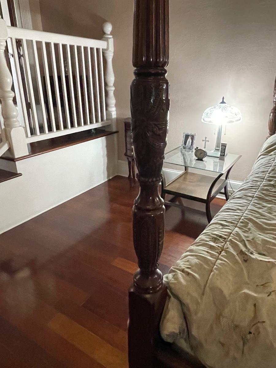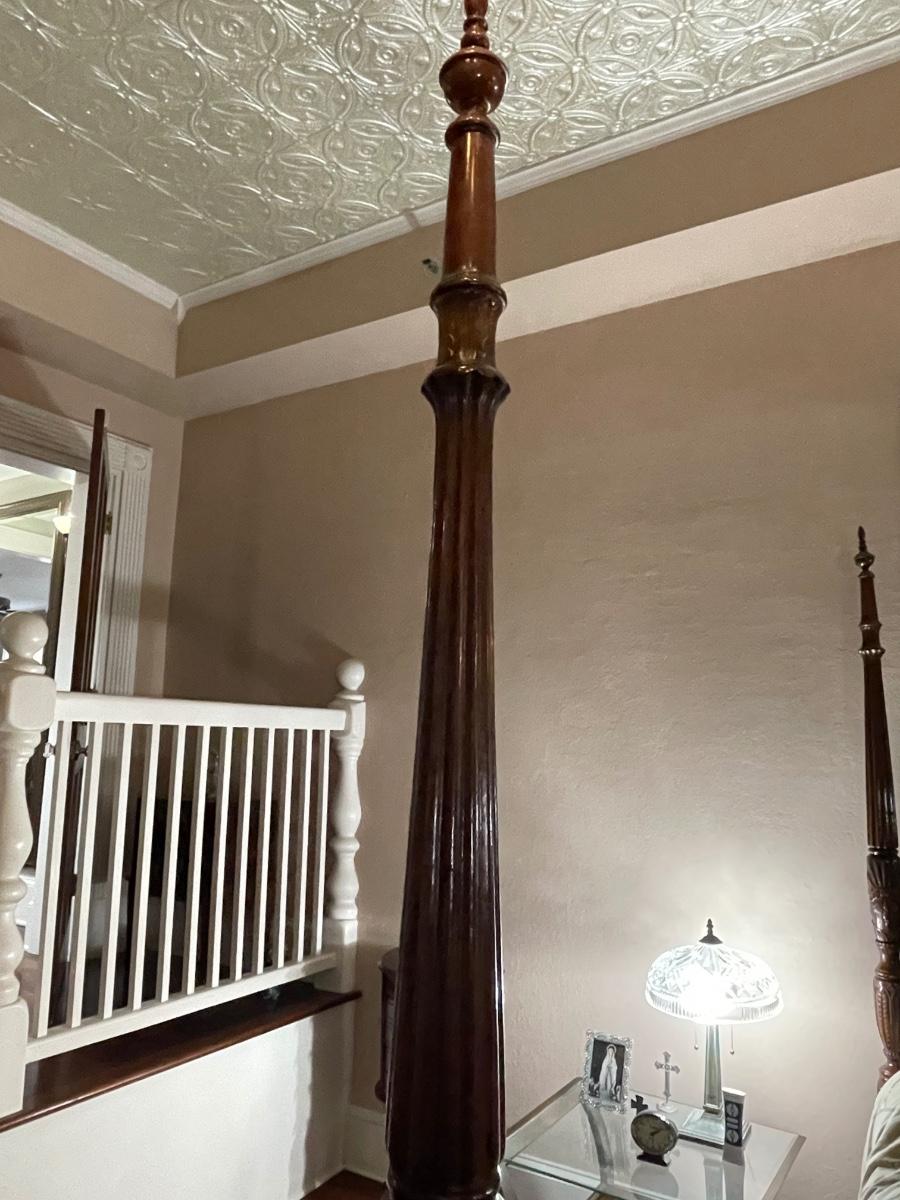 This is a handcarved piece with adjustable mattresses for comfort. Posts are 84" high