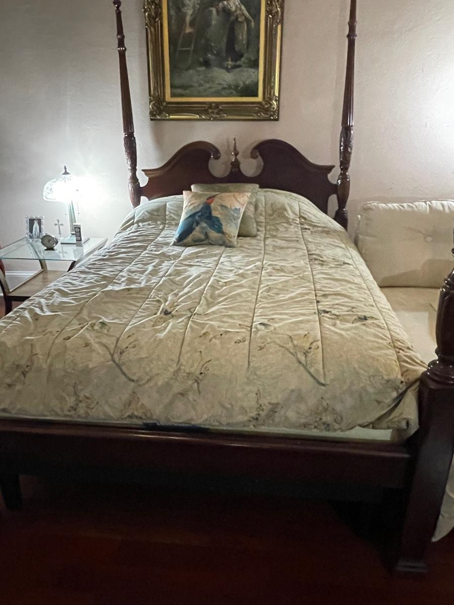 Vintage Queen Size Four Post Bed with Adjustable Mattress