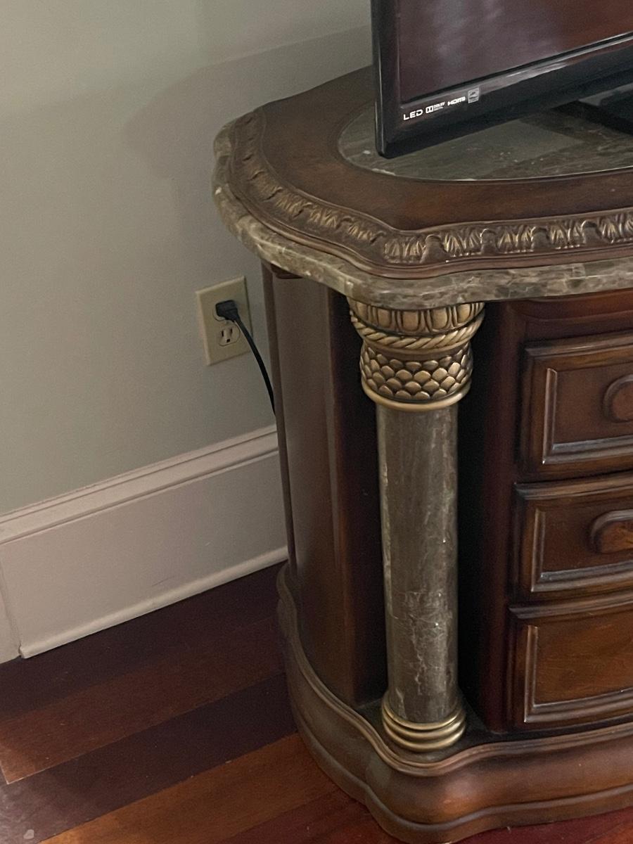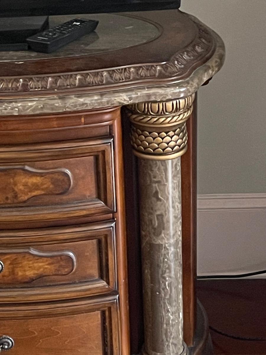 Marble, brass and wood