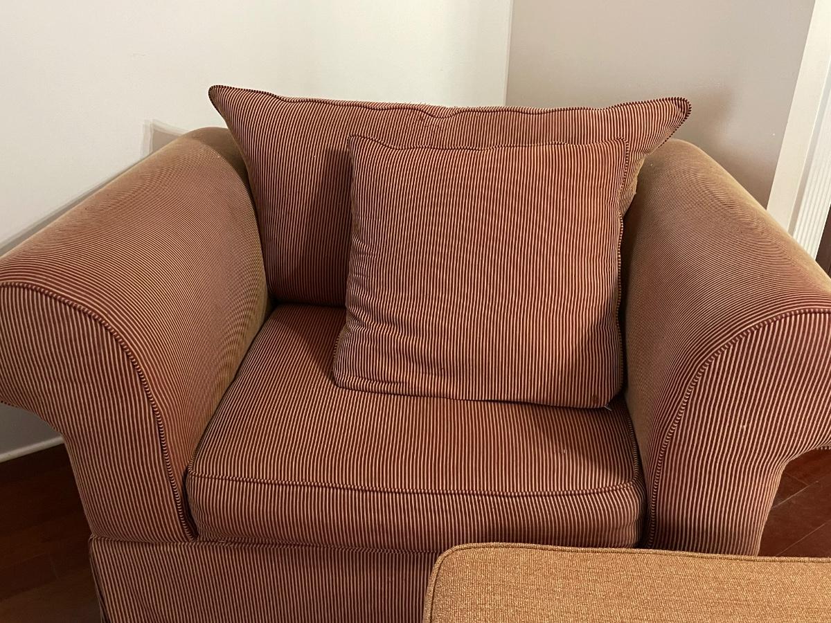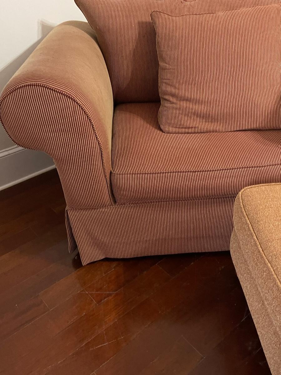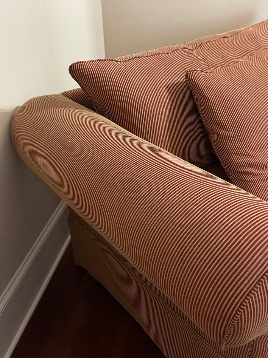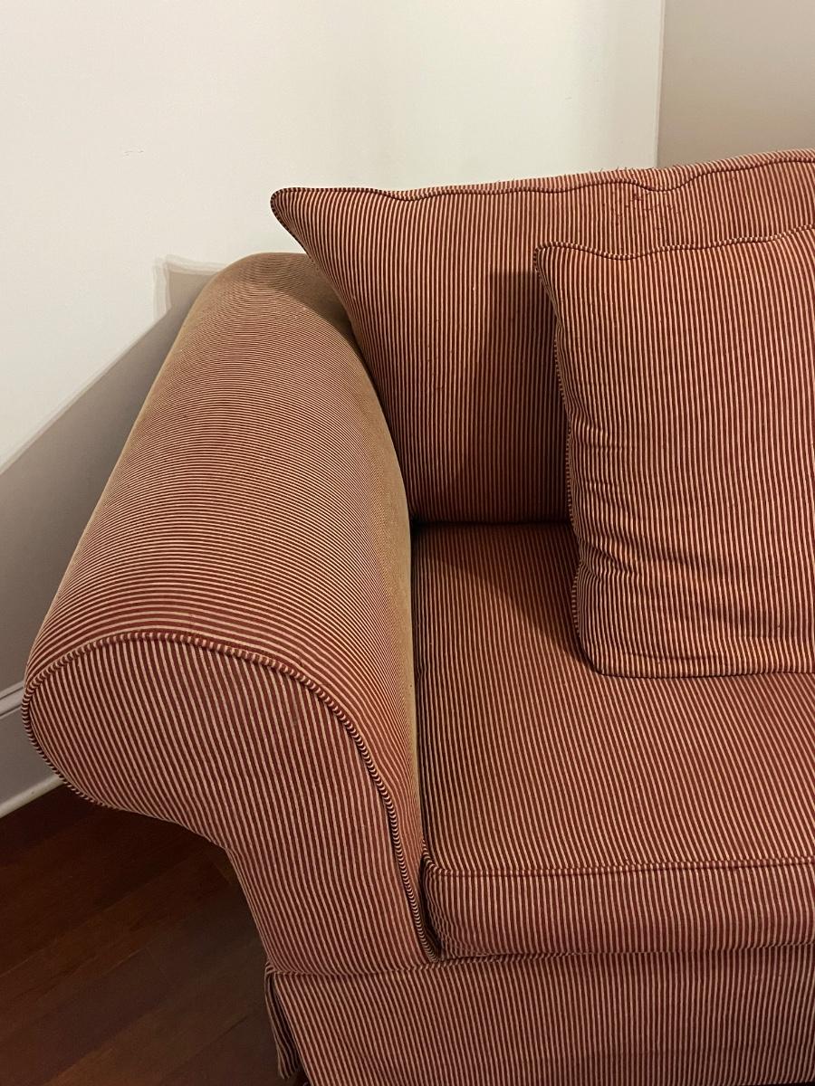 Has some wear and pulls at the top. No tears. Measures 38.5 x 52 and seat is 18" off ground.