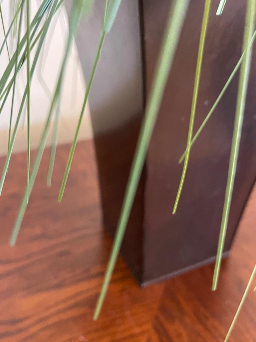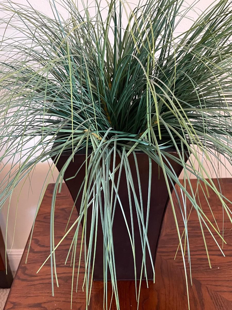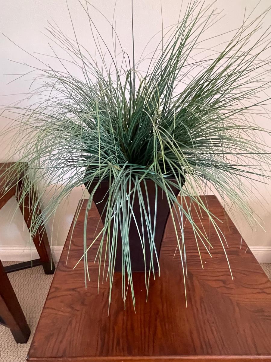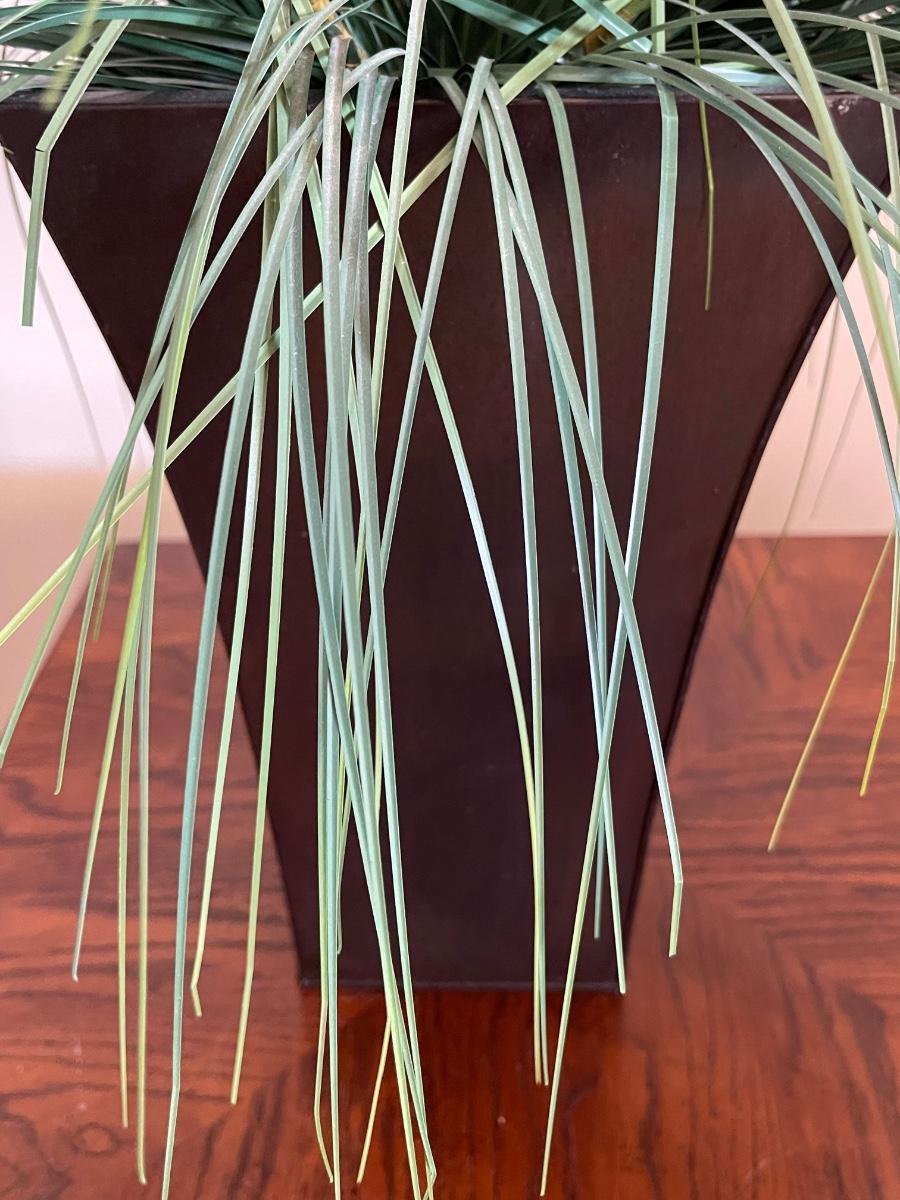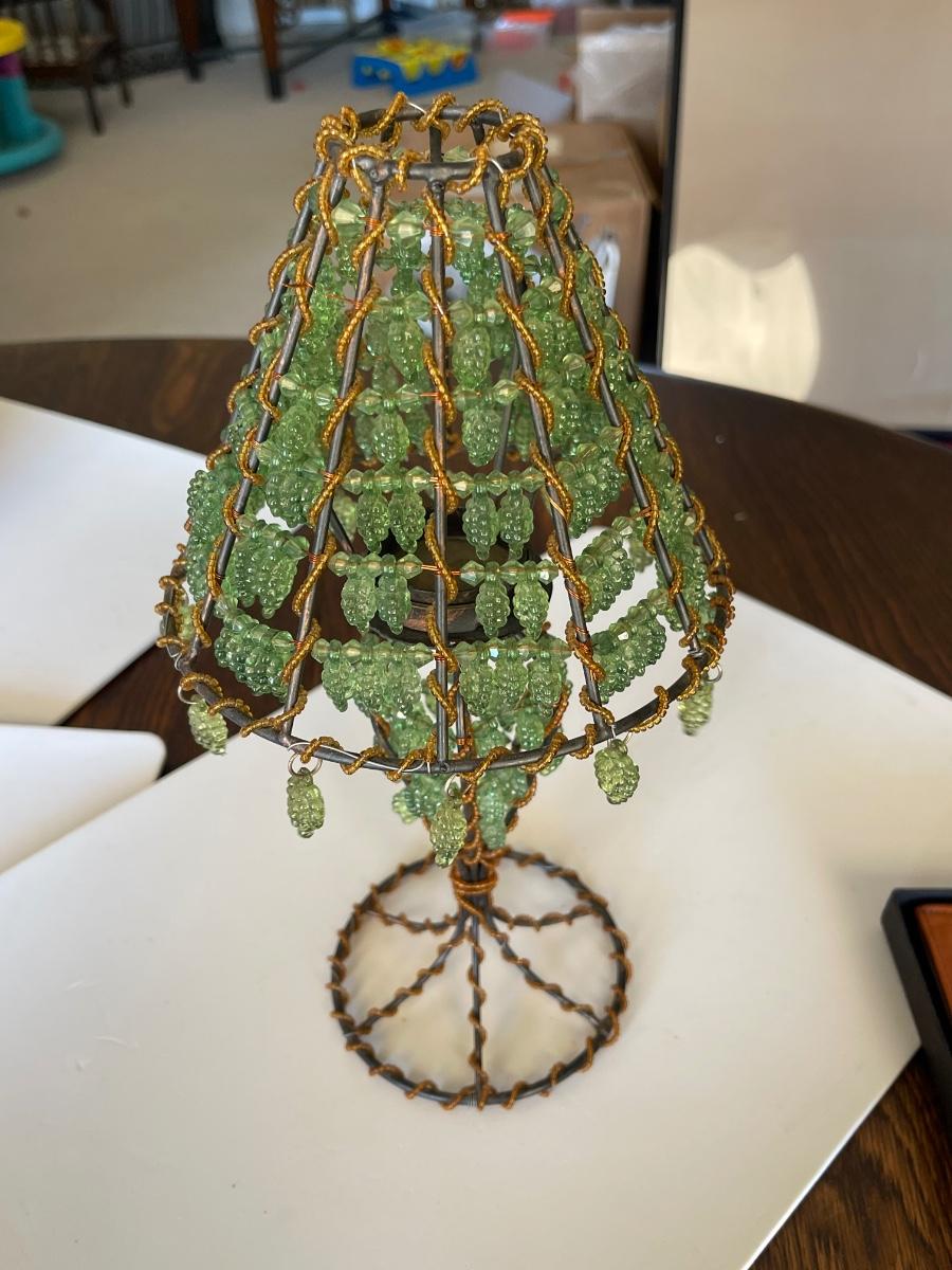 This lot includes two artificial plants and one beaded votive candle lamp.