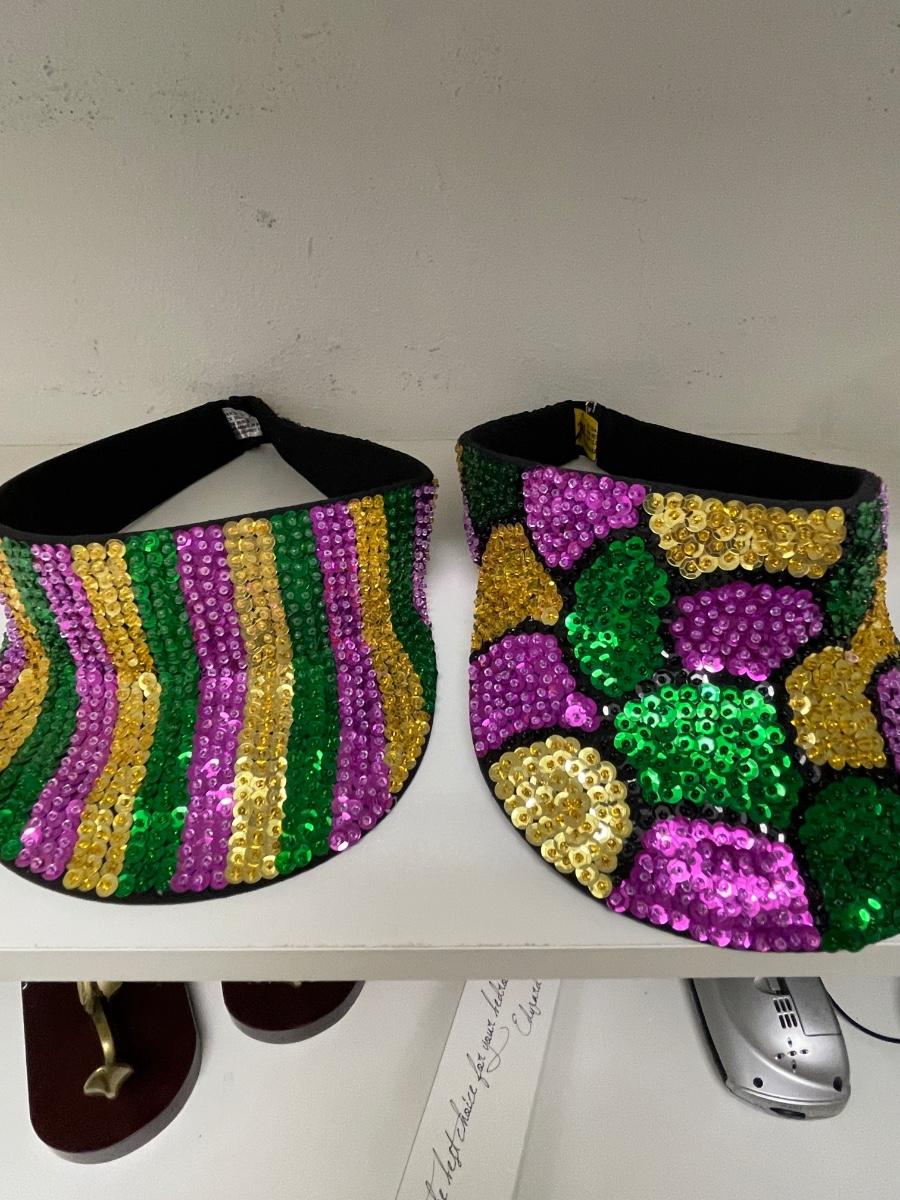 One vest is Medium and one is XXL. The two visors are adjustable.