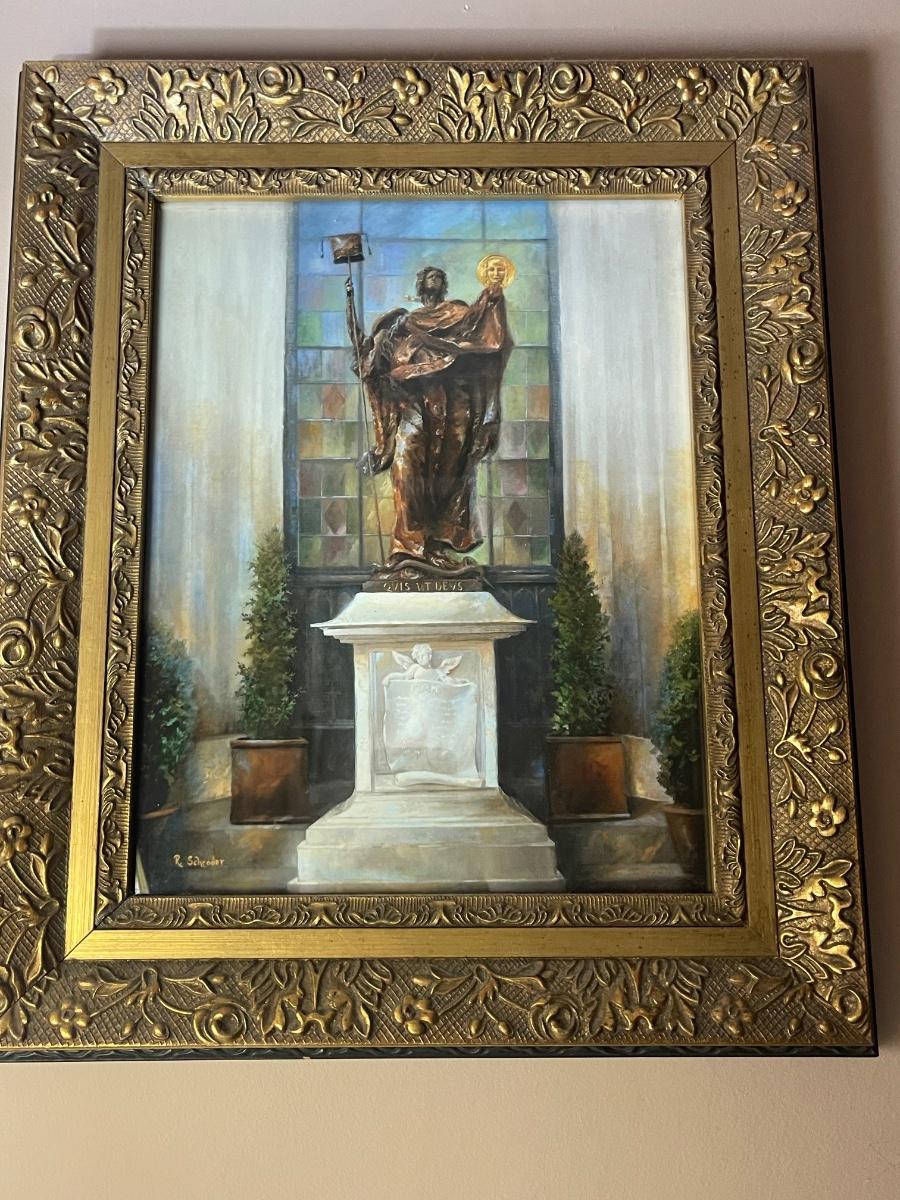 Signed Art of the Archangel Michael in a Gold Frame - R. Schroder