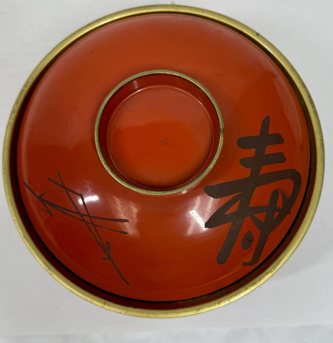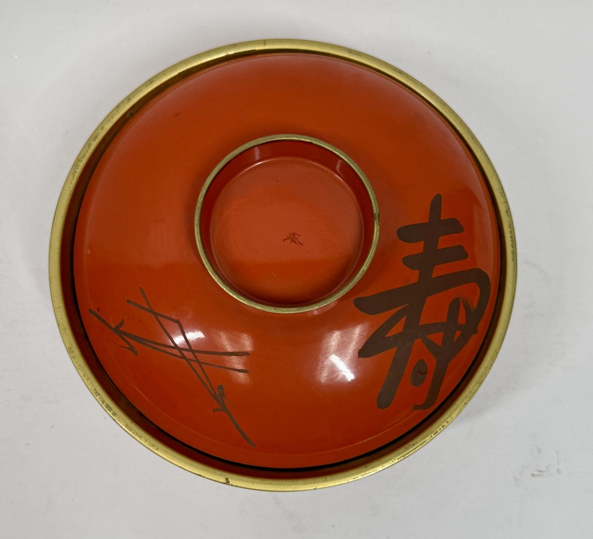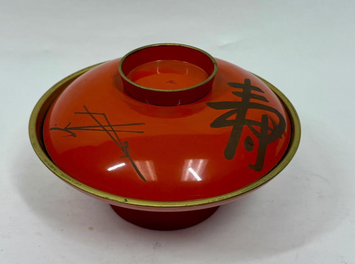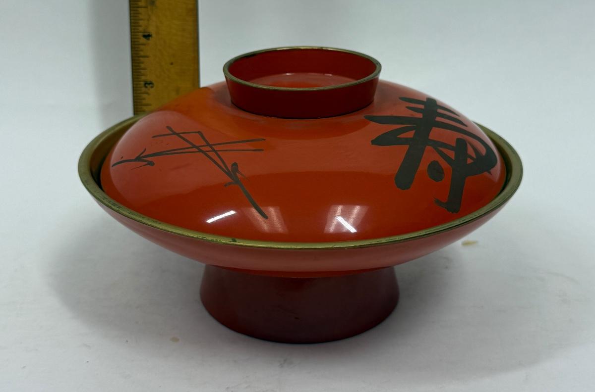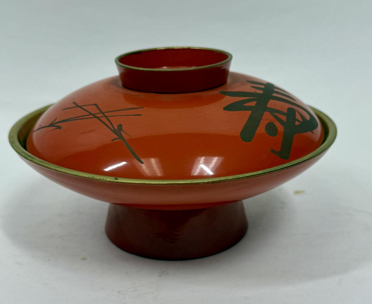 Japanese Lacquer Bowl with Lid orange and black chinoiserie