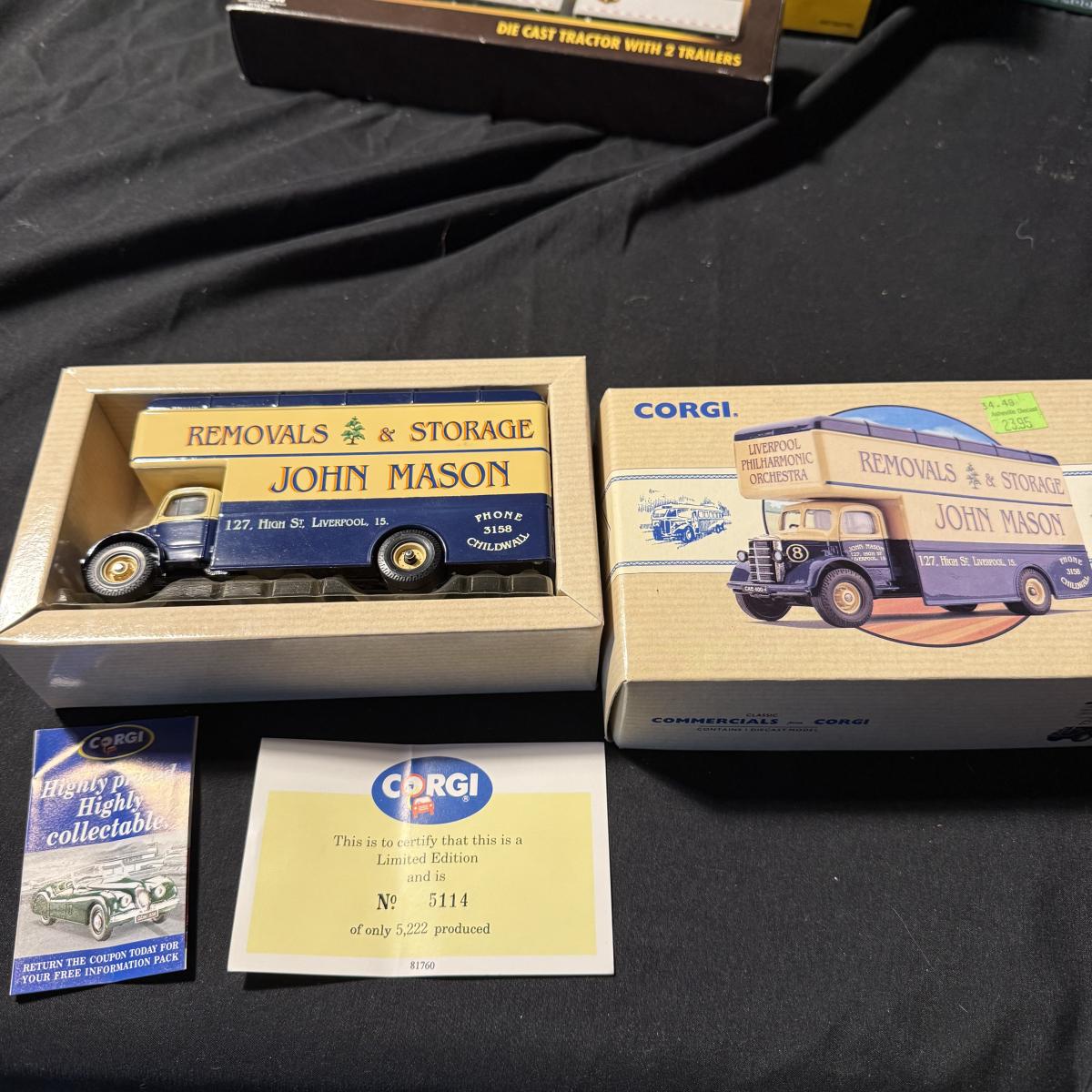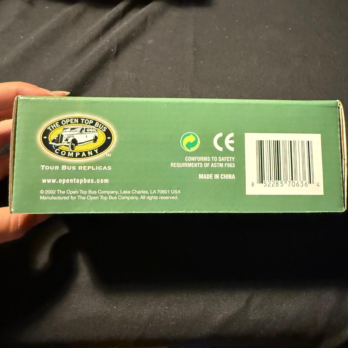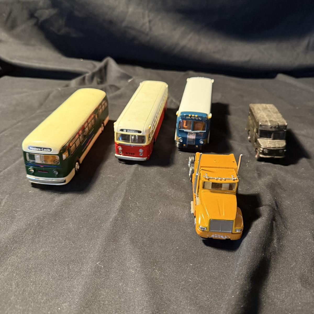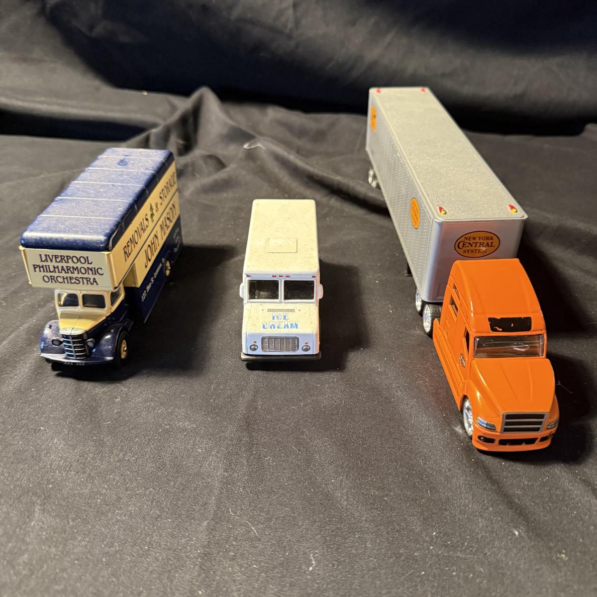 This lot contains a total of 17 toy trucks and buses. Nine of the buses and trucks come with their original boxes. The Greyhound bus measures 8” x 2” x 2”H and the ice cream truck measures 4.5” x 1.5” x 2”H. See pictures for full inventory. Shipping available. Please note that any price tag seen on an item was not put there by Sterling Transitions and does not reflect the current value of the item.