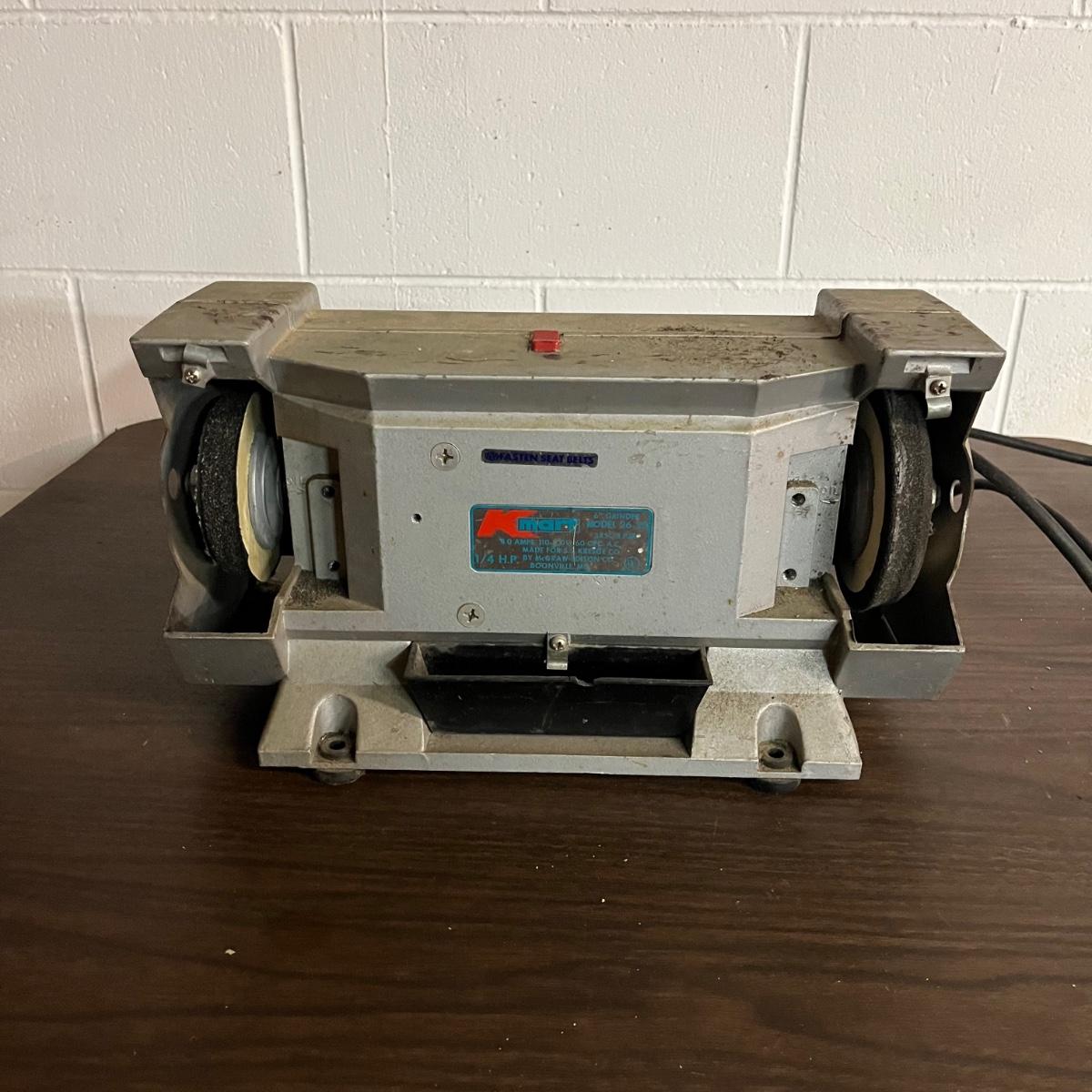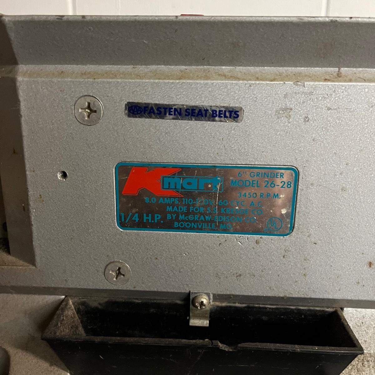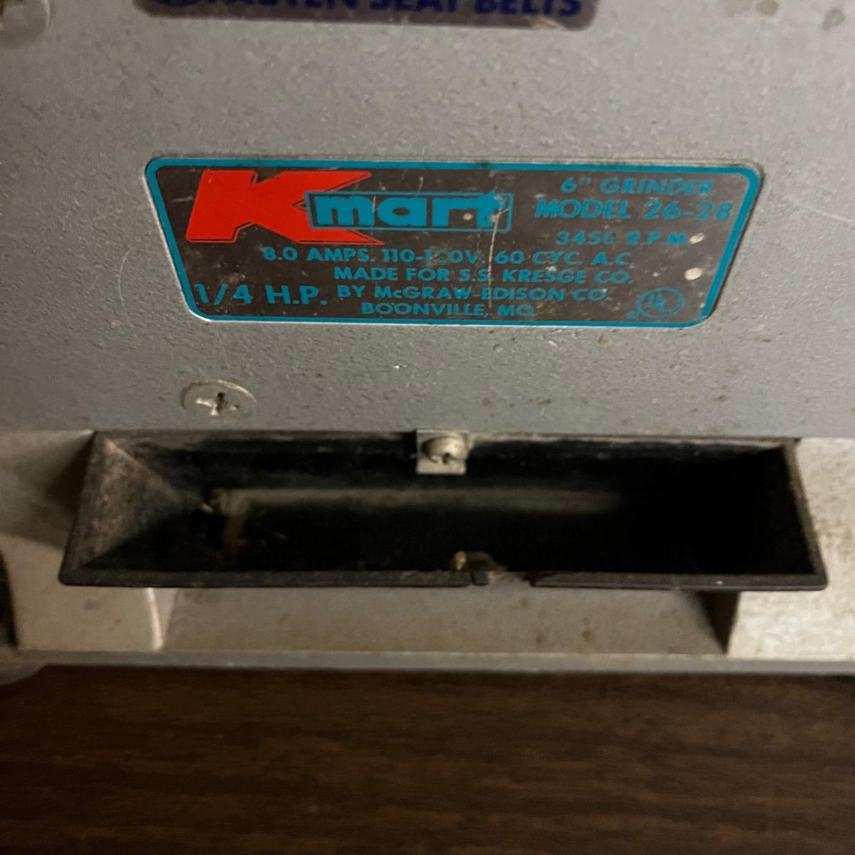 Lot includes a Kmart 6” grinder. Grinder worked when tested. Grinder measures 7” x 15” x 8”.