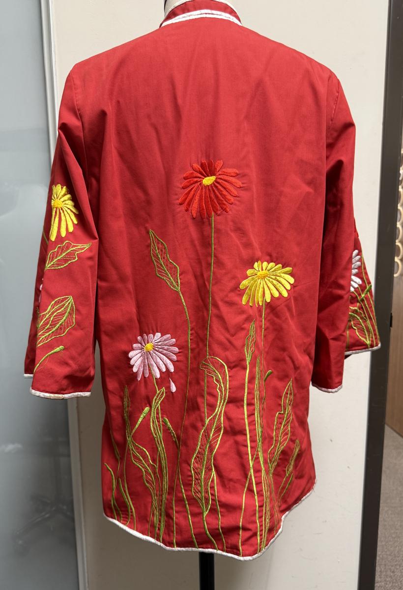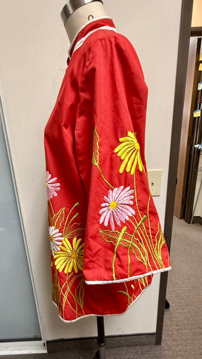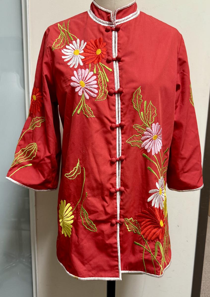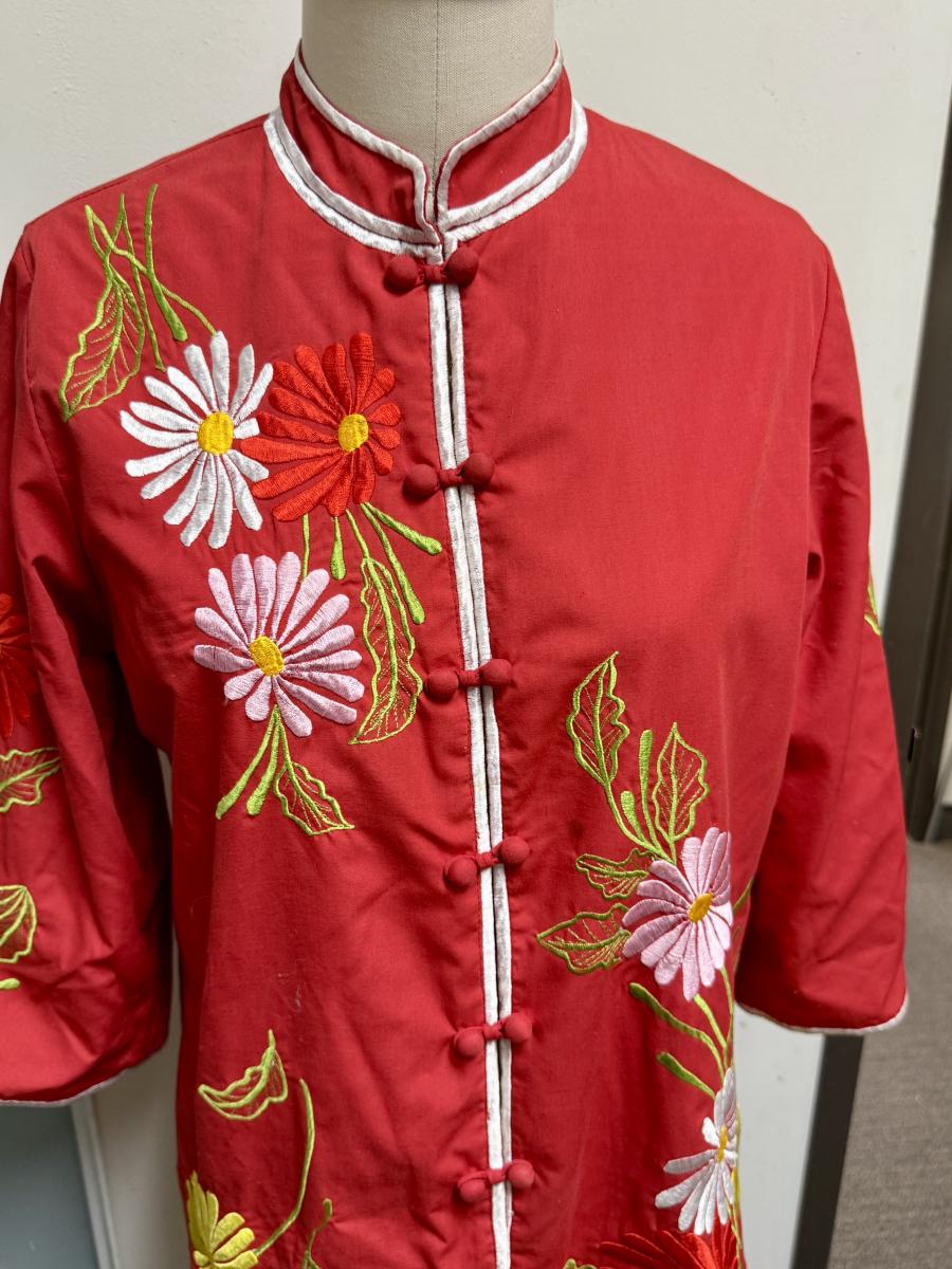 Vintage Chuchi Chinese Asian Red Blouse Jacket Embroidered Flowers