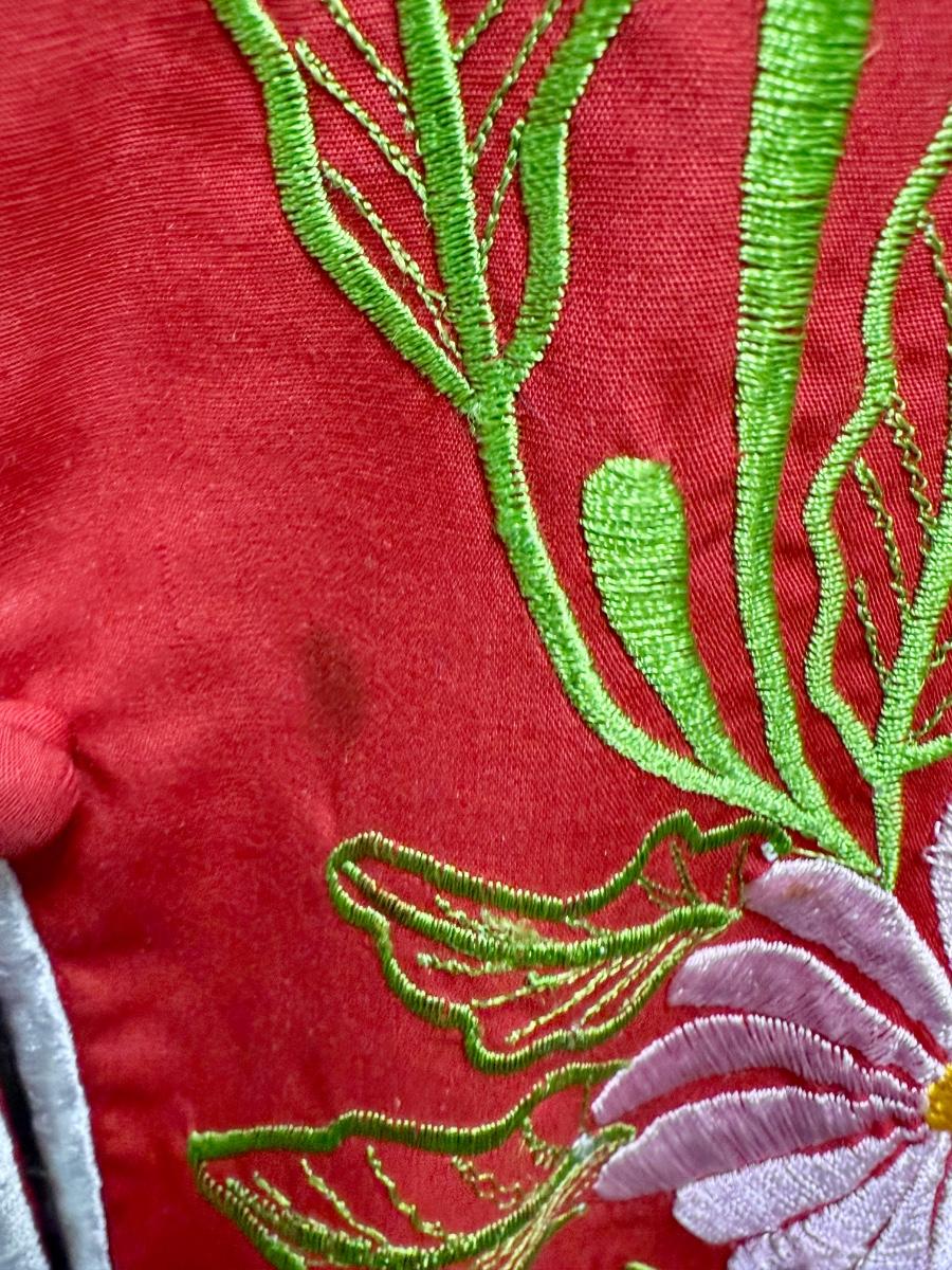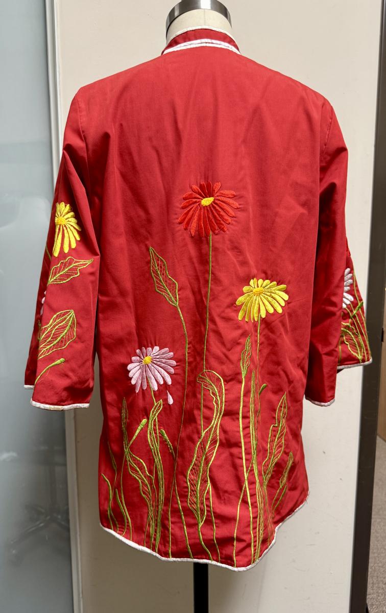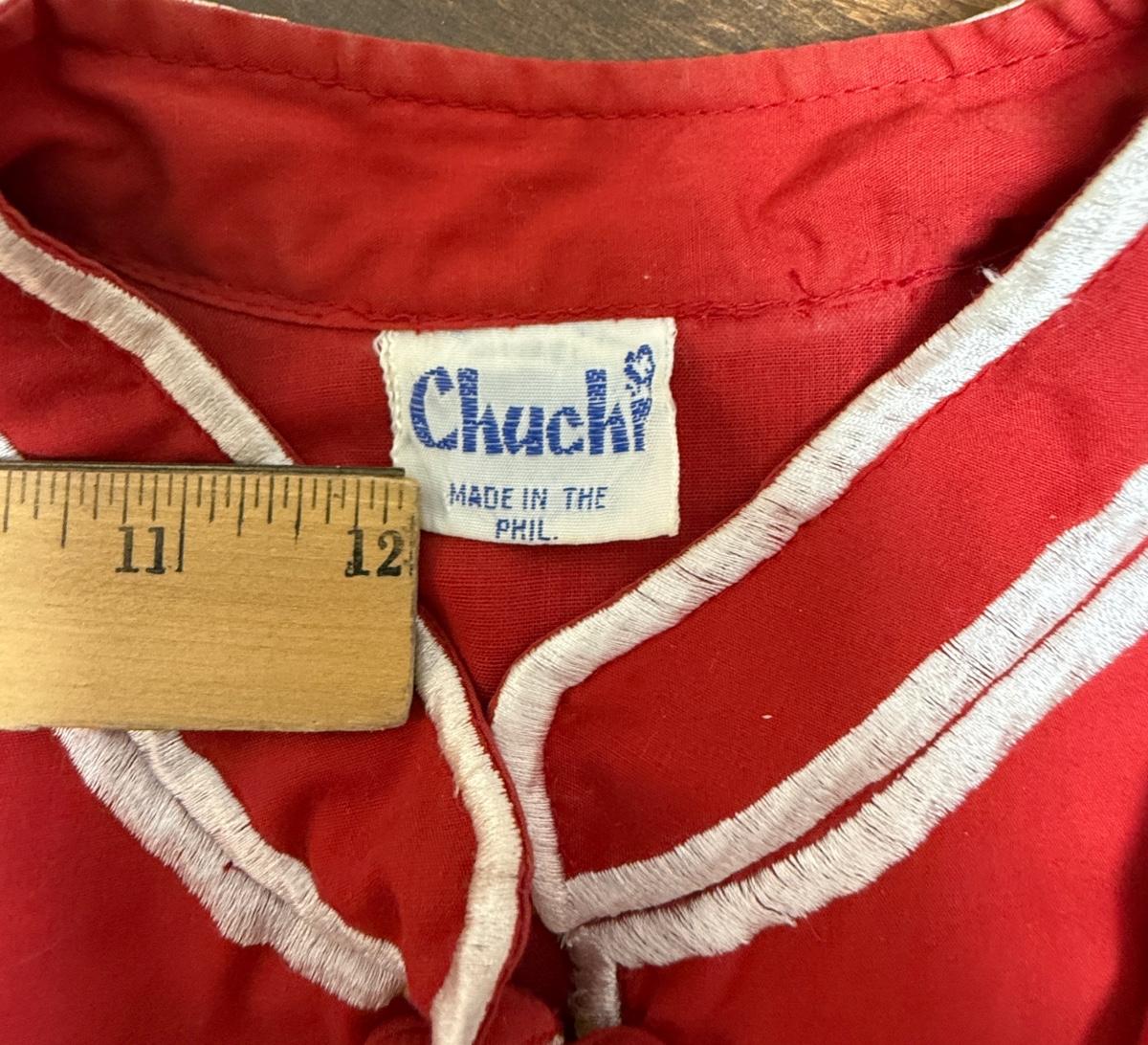 Vintage Chuchi Chinese Asian Red Blouse Jacket Embroidered Flowers