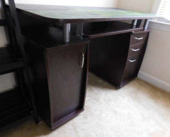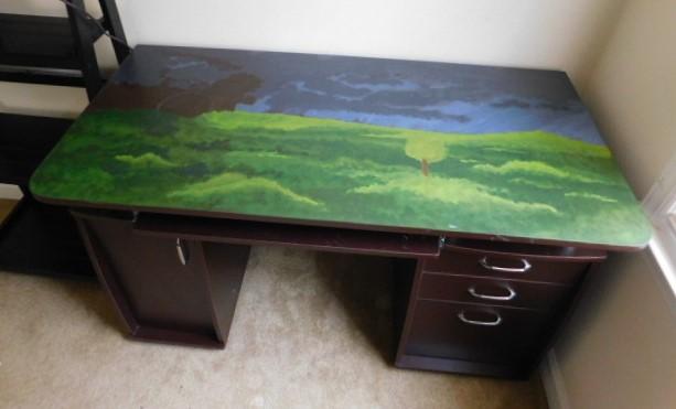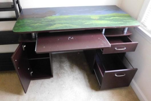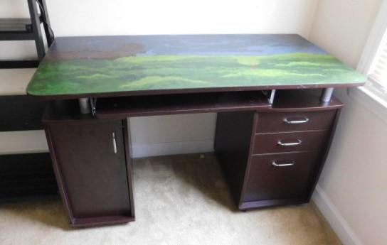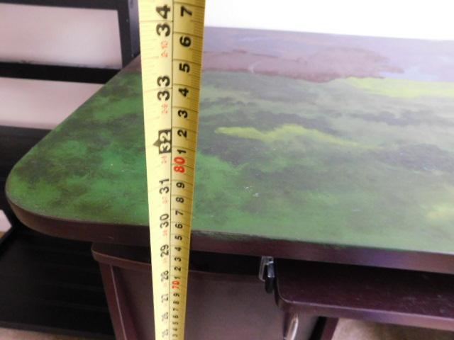 Knee Hole Computer Desk with File Drawer and Storage hand painted art on surface. Expect some scratches and wear.