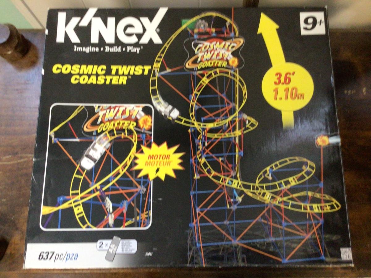 These are two great K’Nex box sets. Both are open one is Cosmic Twist Coaster the other is Lava Launch Coster .