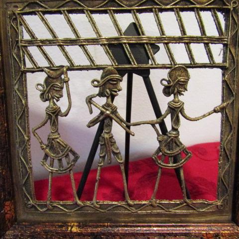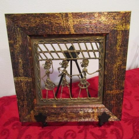 THE BRASS FRAME WAS MADE USING THE LOST WAX PROCESS AND INSPIRED BY TRIBAL AND VILLAGE LIFE.