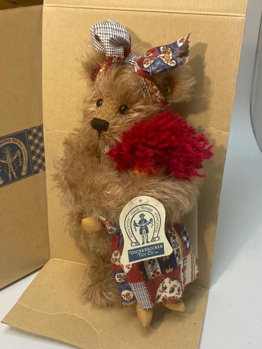 Knickerbocker Toy Co. Collectible Teddy Bear Plush Polly & Her Dolly with Box. In good condition, still attached to box inside.