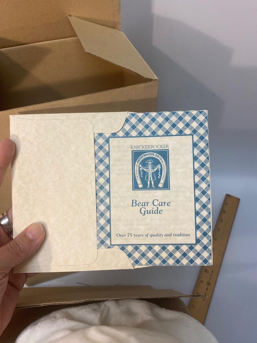 There is no significant damage to the bear and is in overall good collectible condition. Comes with care instructions, check pictures for more details and for sizing.