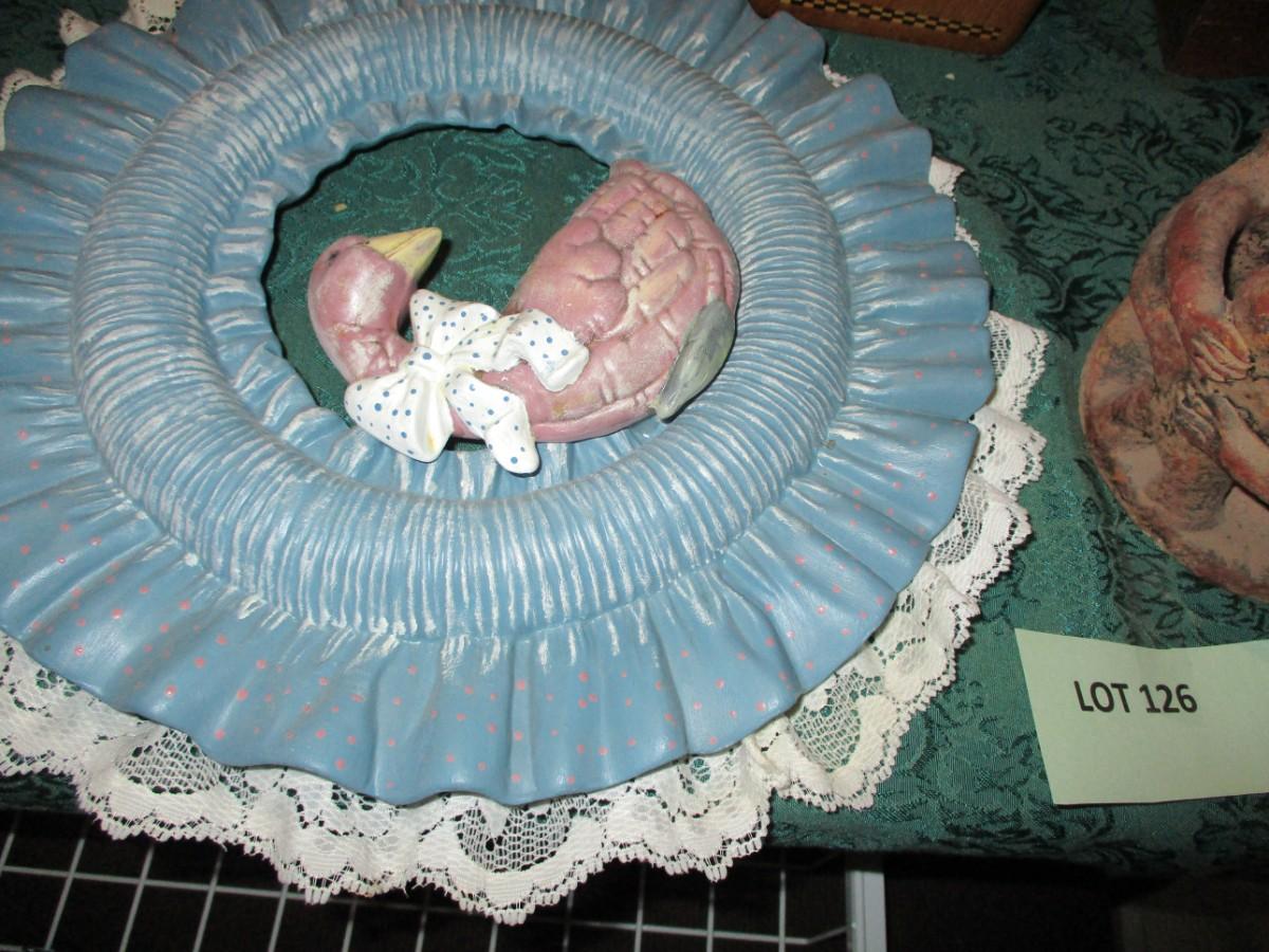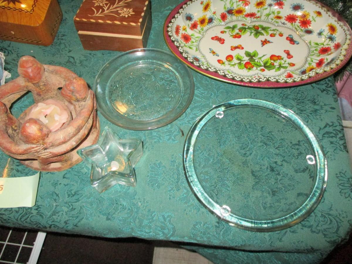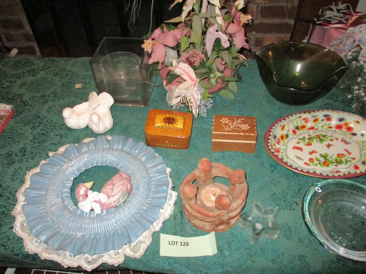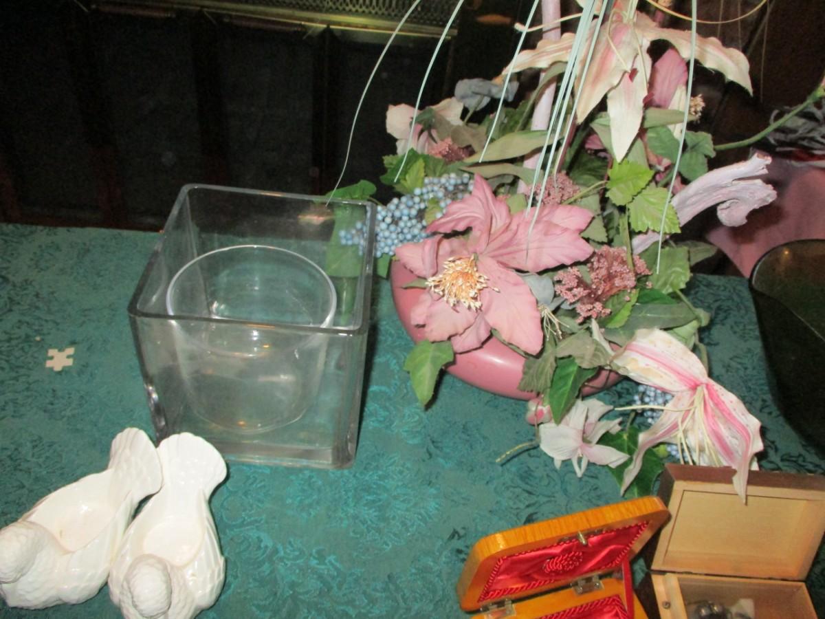 Miscellaneous candle holders, duck,keepsake vase w/fausx flowers