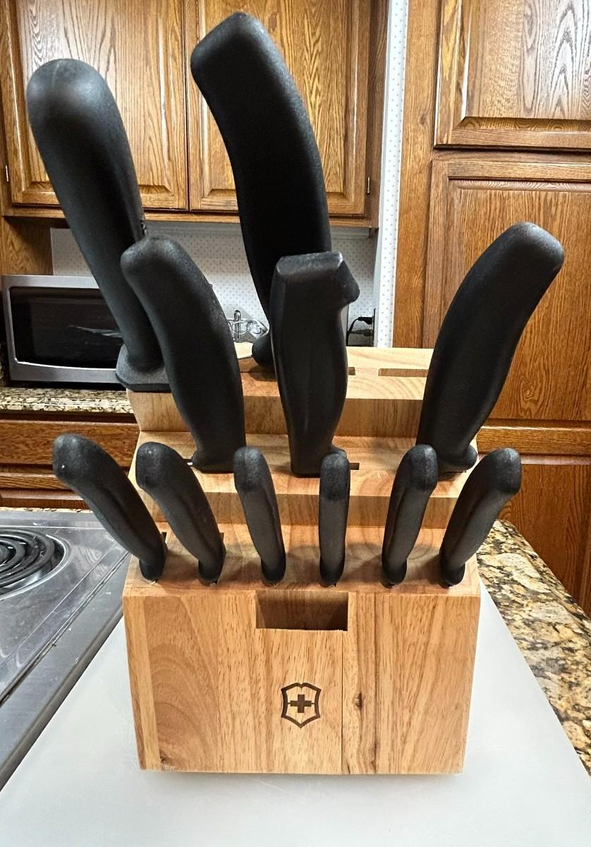 Knife block includes 10 knives and a sharpener