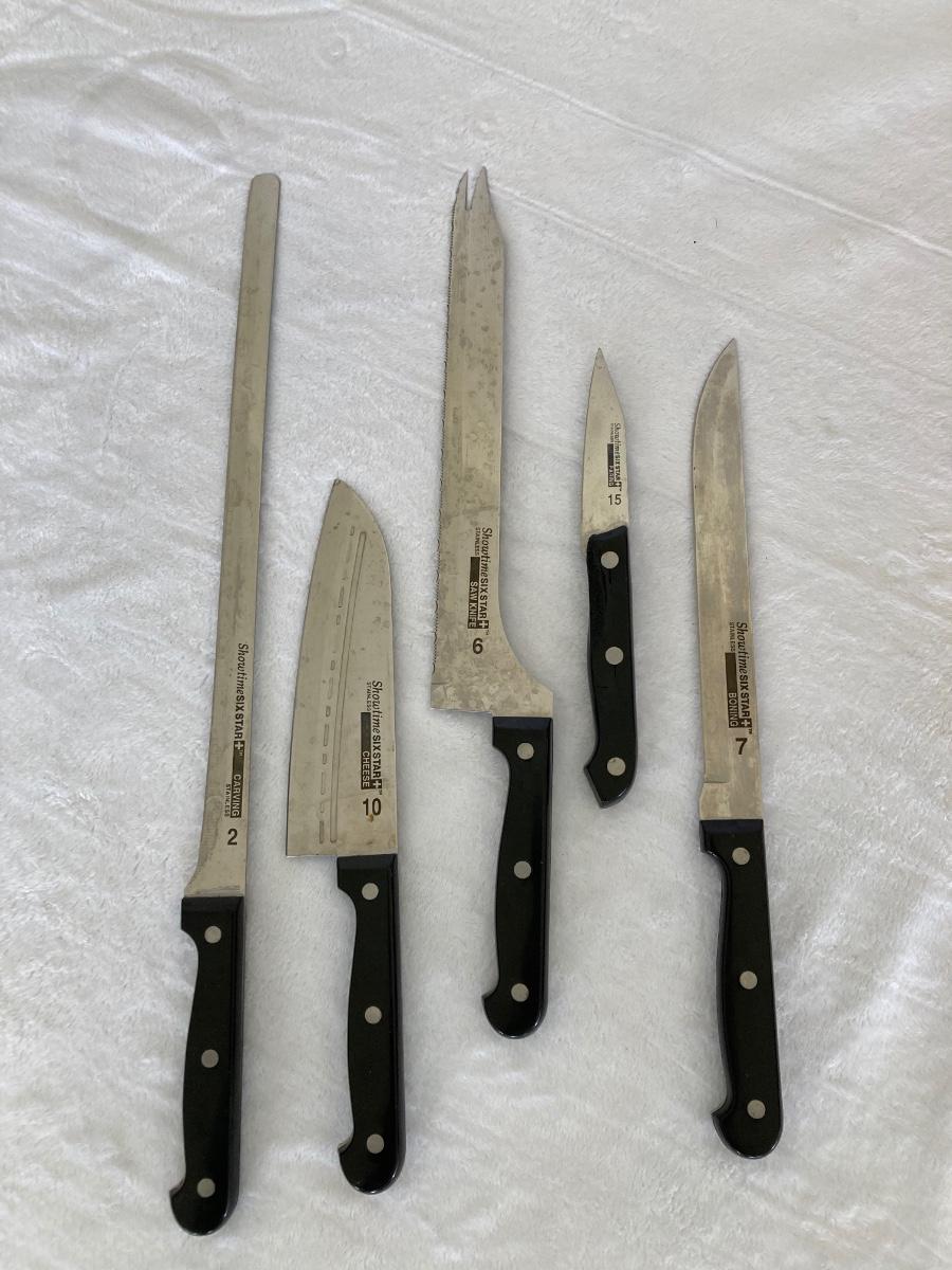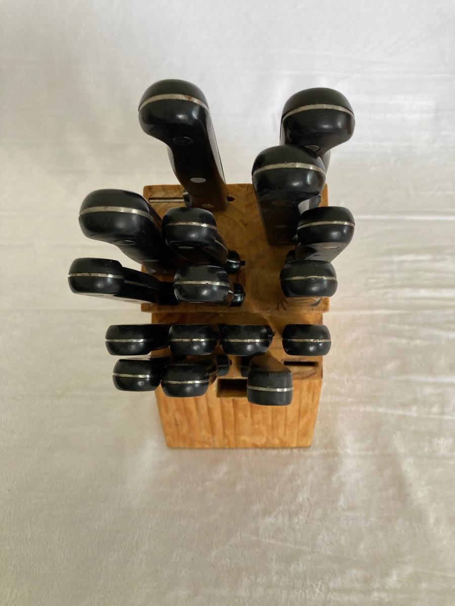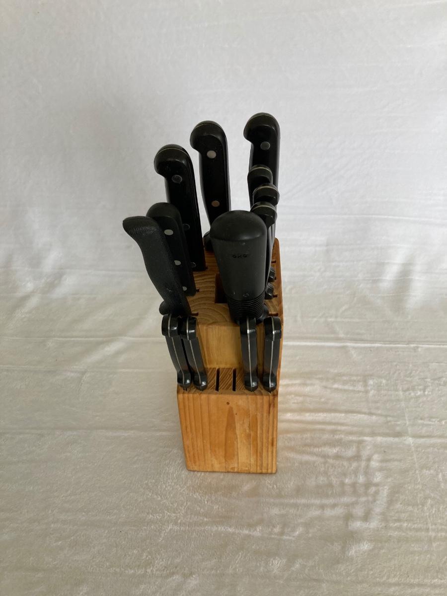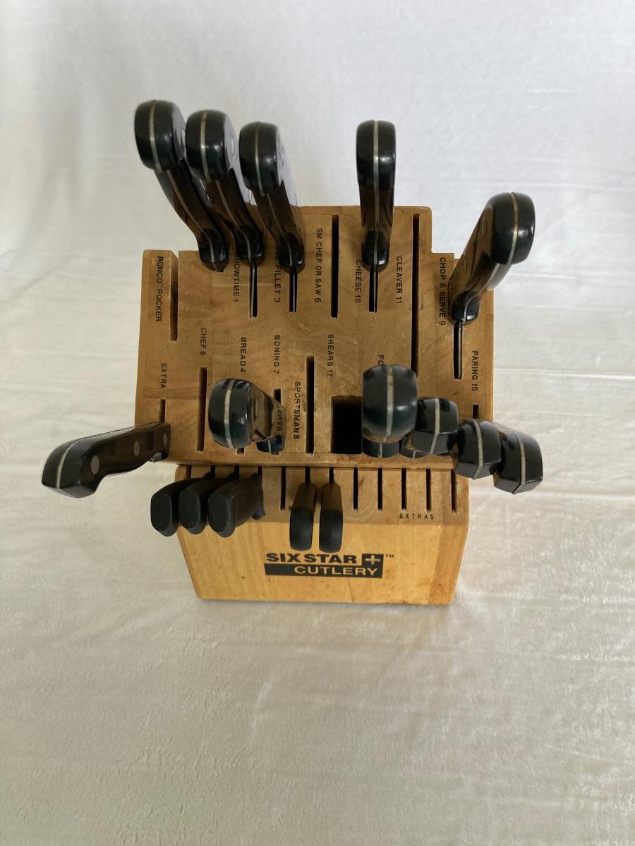 Be Basic Essentials. One Ginsu Chef Knife. Three Wood knife blocks included.