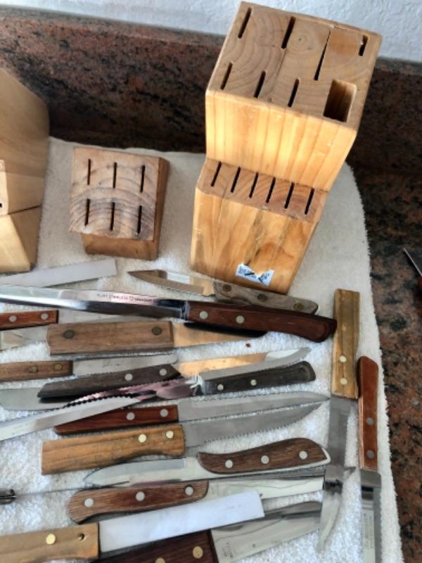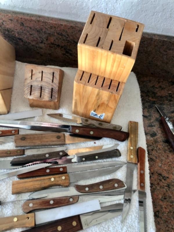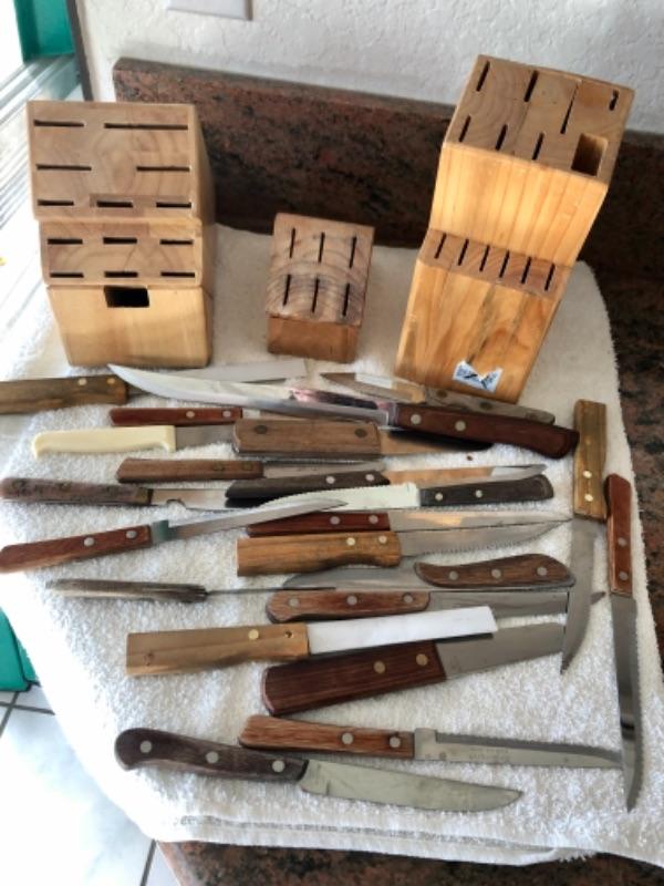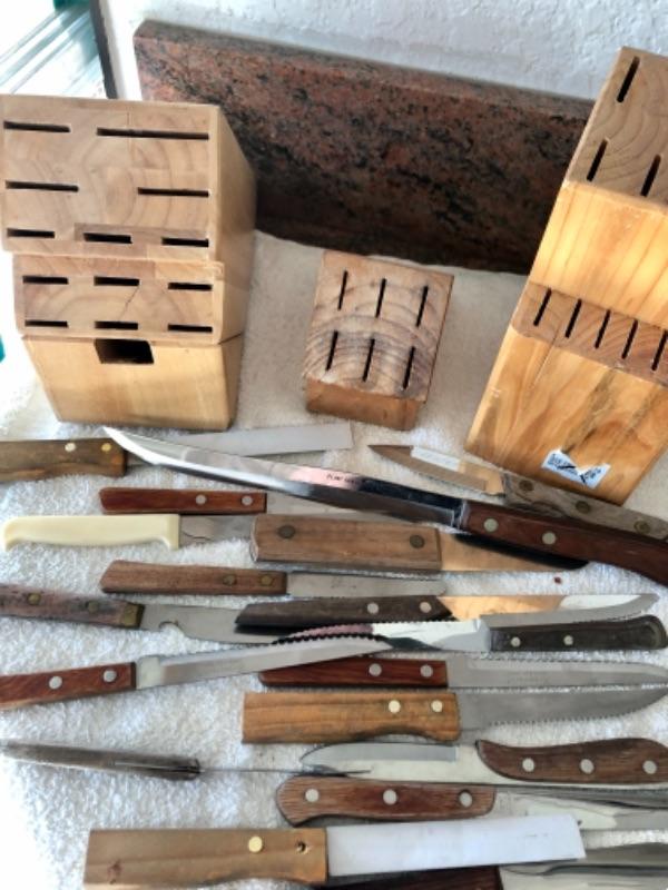 Mixed Knife Lot with 3 Wood Blocks YD#022-0213