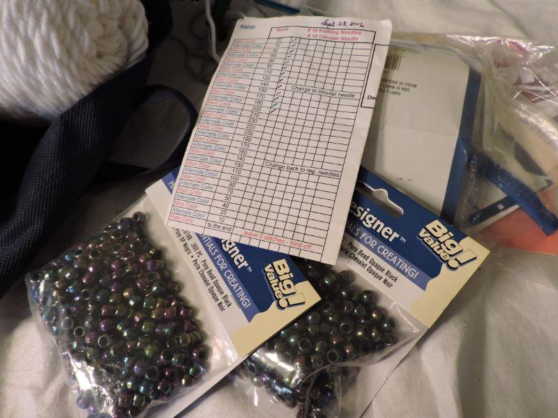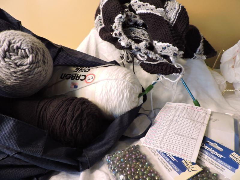 All the yarn and tools you need to knit this afgan, and its already started for you! Comes with instruction sheet, knitting needles, and all the beads needed. A little basic knowledge and you should be good to go! **Please read Terms and Conditions before placing a bid. Pick up is Wednesday, September 25 from 4pm to 7pm and Saturday, September 28 from 9am to 1pm in Williamstown, NJ. All sales are final. All sales are as is, where is. Please review all photos. Any props included in photos are not included in listing. All measurements are approximate.