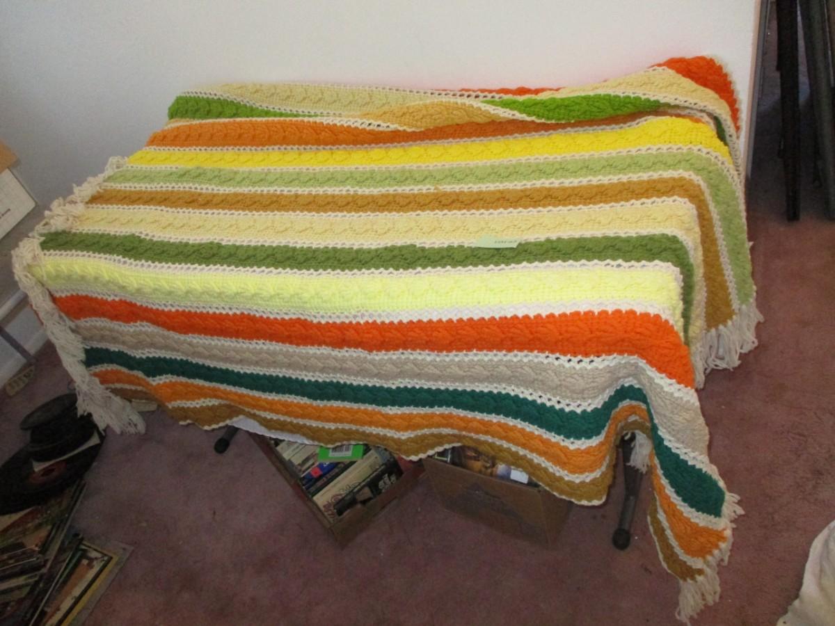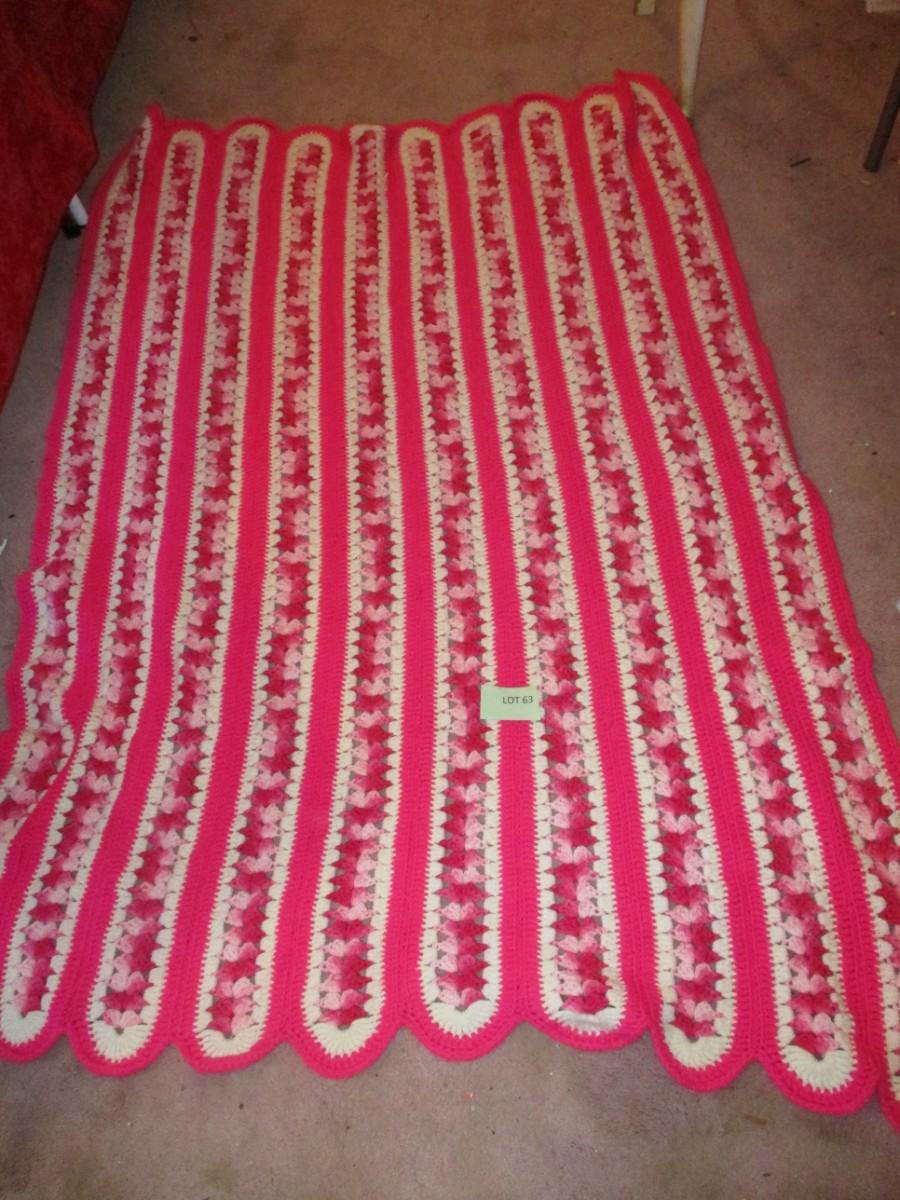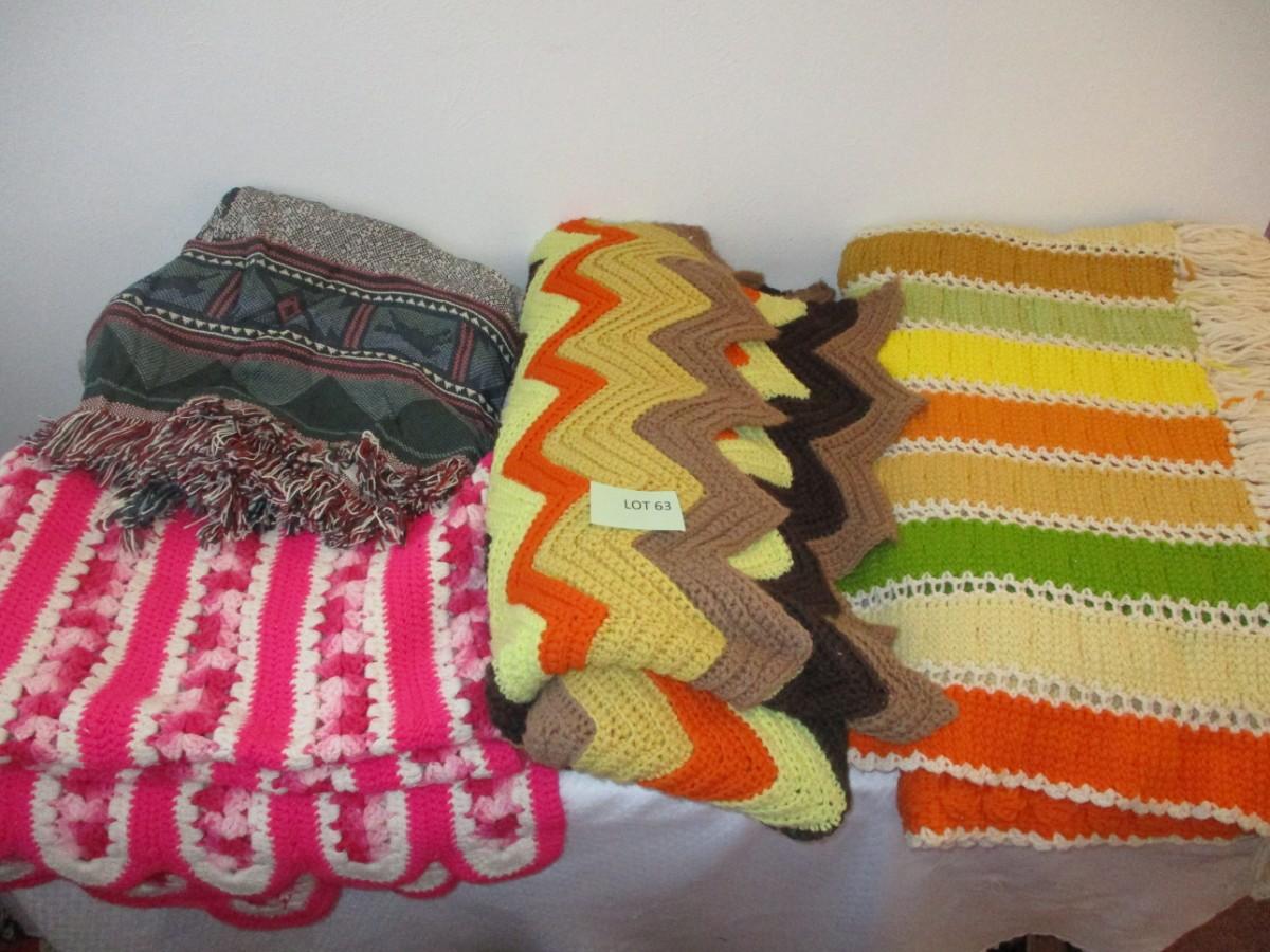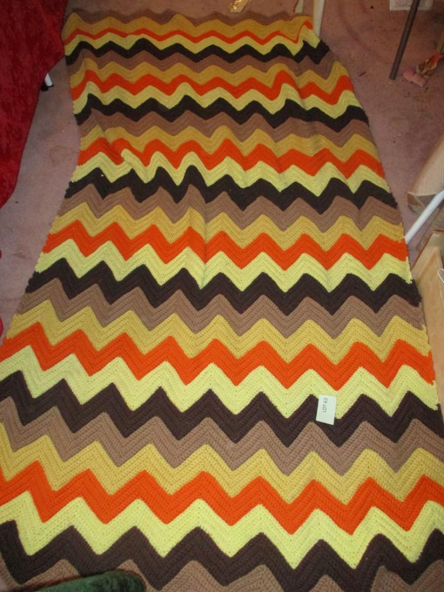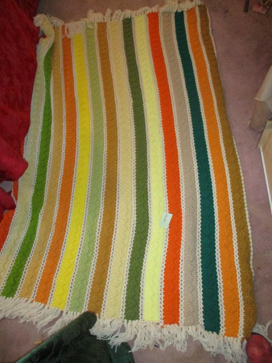Brown Orange Zig Zag Knitted blanket approx 79x43. Pink/White approx 58x40. Stiped yellow/orange approx 68x49. All great condtion. Throw blanket