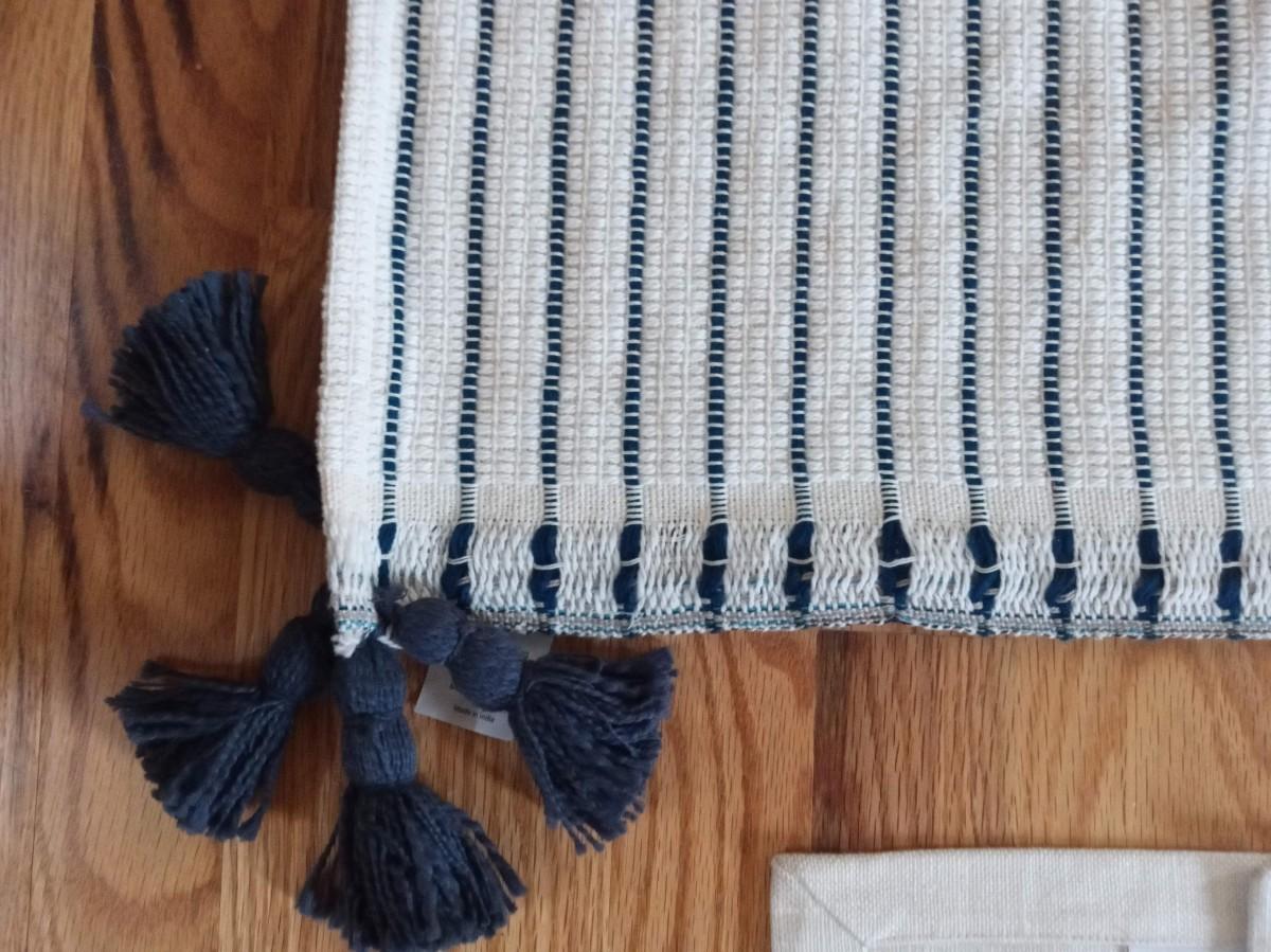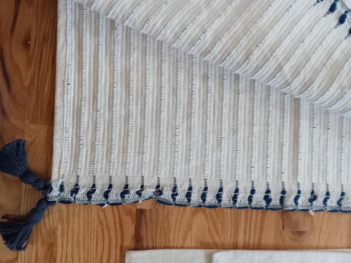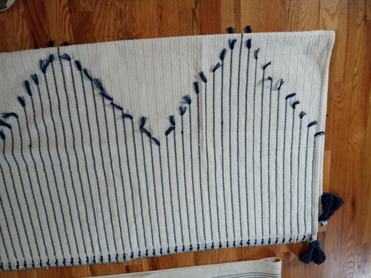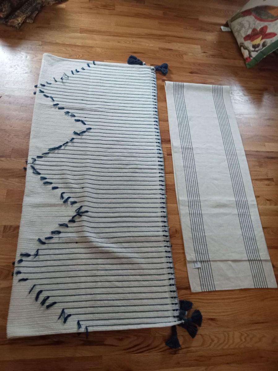 KNITTED THROW BLANKET FROM INDIA AND WILLIAMS SONOMA TABLE RUNNER
