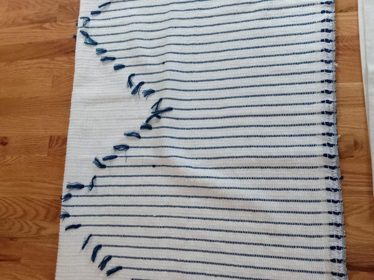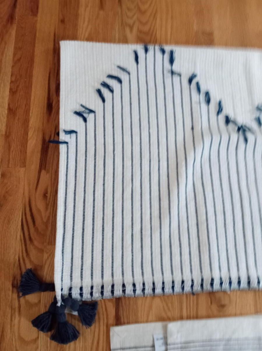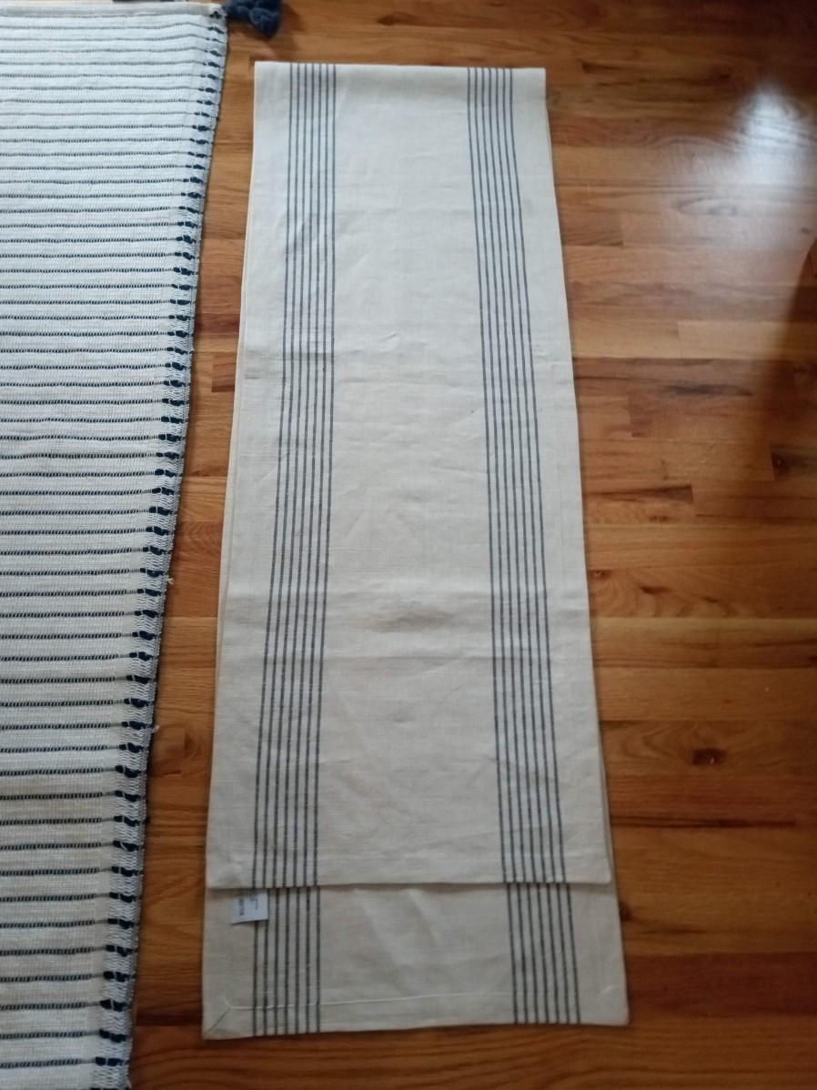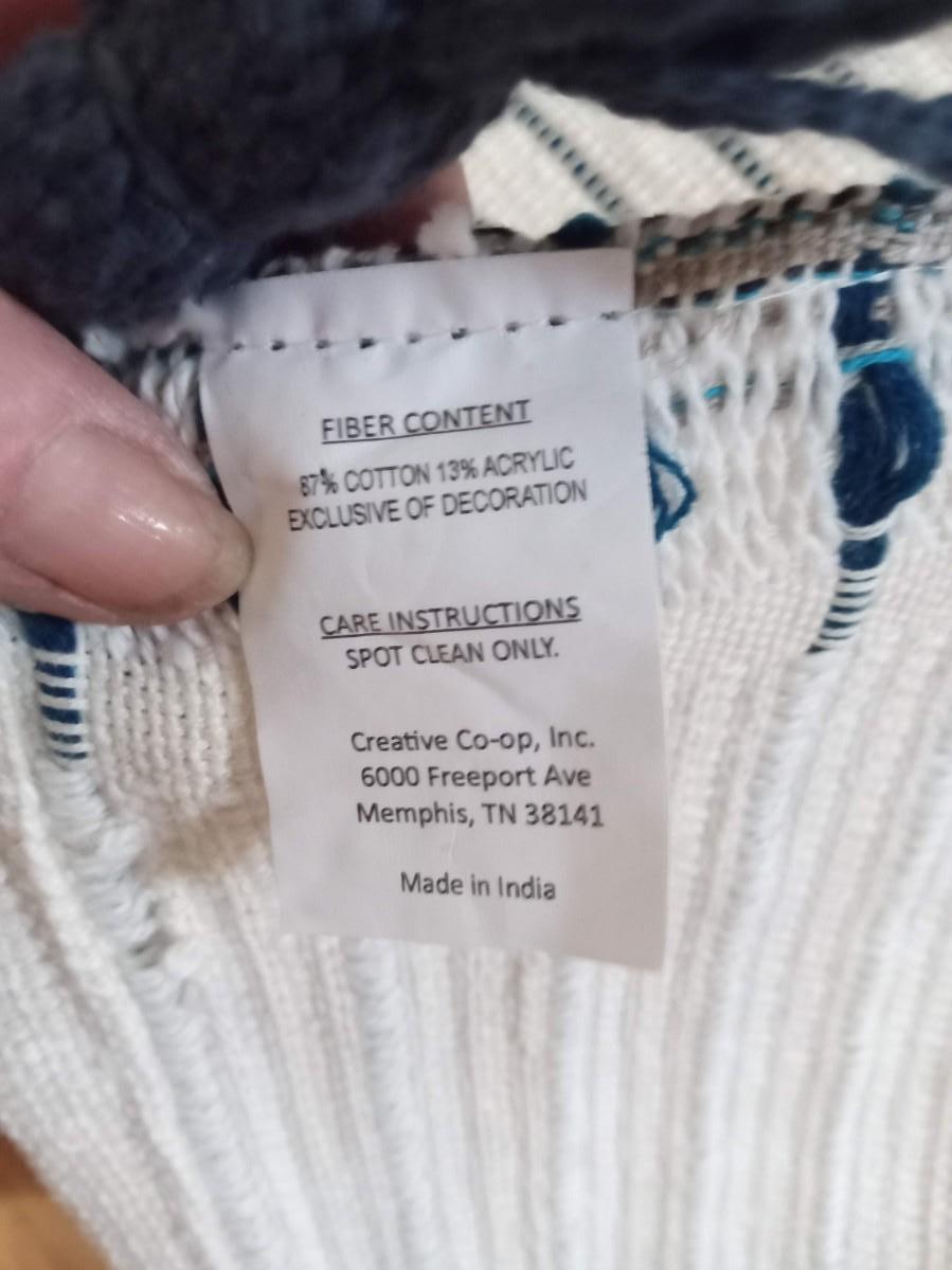 KNITTED THROW BLANKET FROM INDIA AND WILLIAMS SONOMA TABLE RUNNER