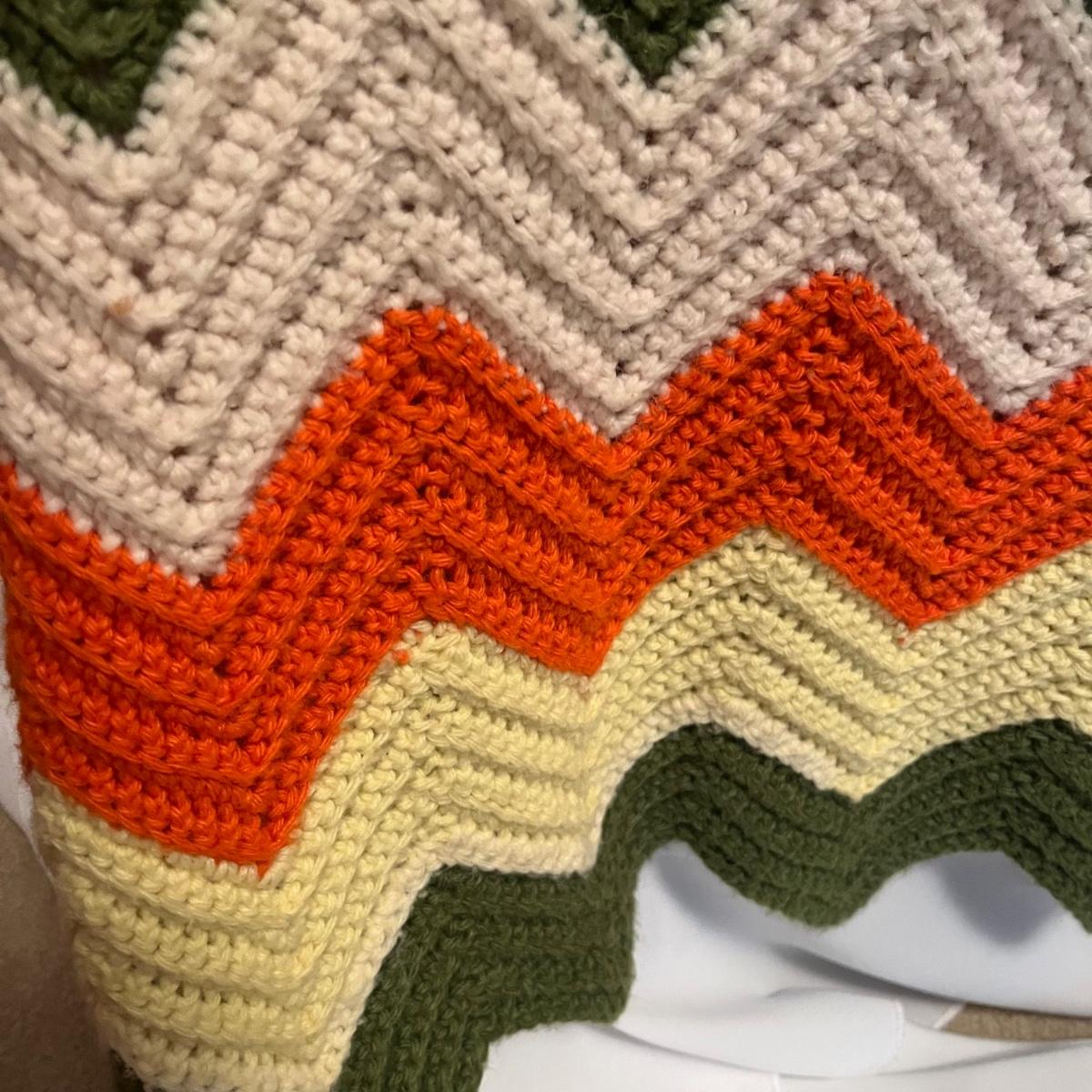 Lot includes three knitted throws. The red white and blue throw measures 60” x 64”, the yellow, orange and green one measures 56” x 66” and the fall colored throw measures 36” x 52”.