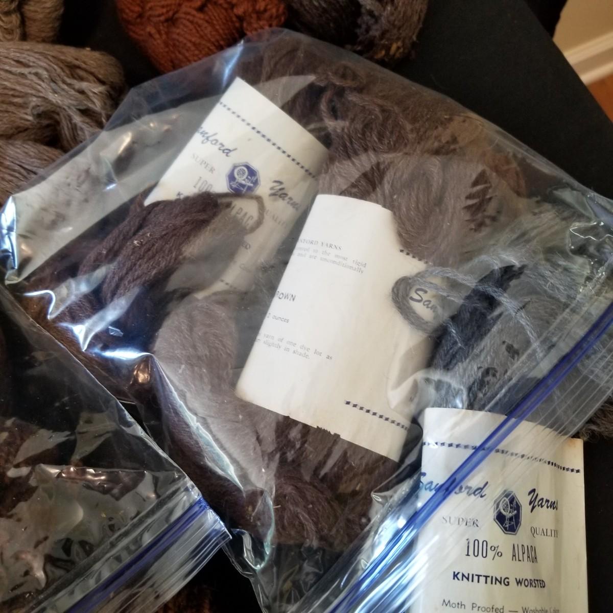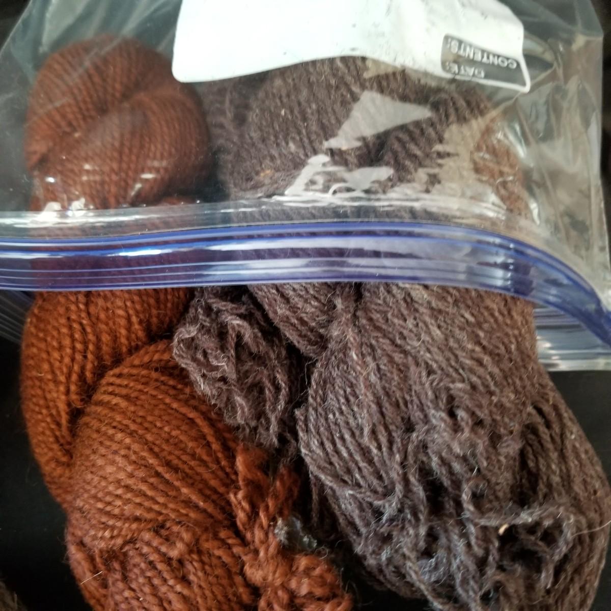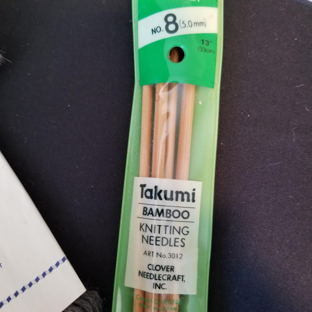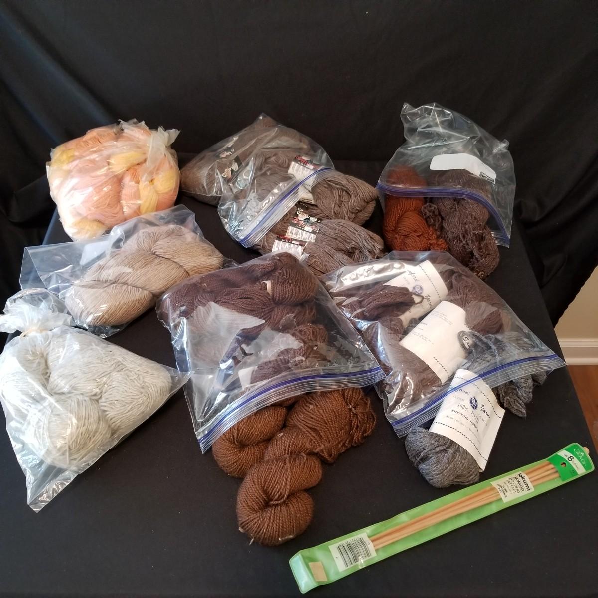 Knitting yarn and needles.  Two pair No. 8 Takumi bamboo knitting needles.  Eight skeins La Emilia llama yarn.  Four skeins Sanford alpaca yarn.  Approximately twelve other skeins in different colors, see photos.   Shipping available.