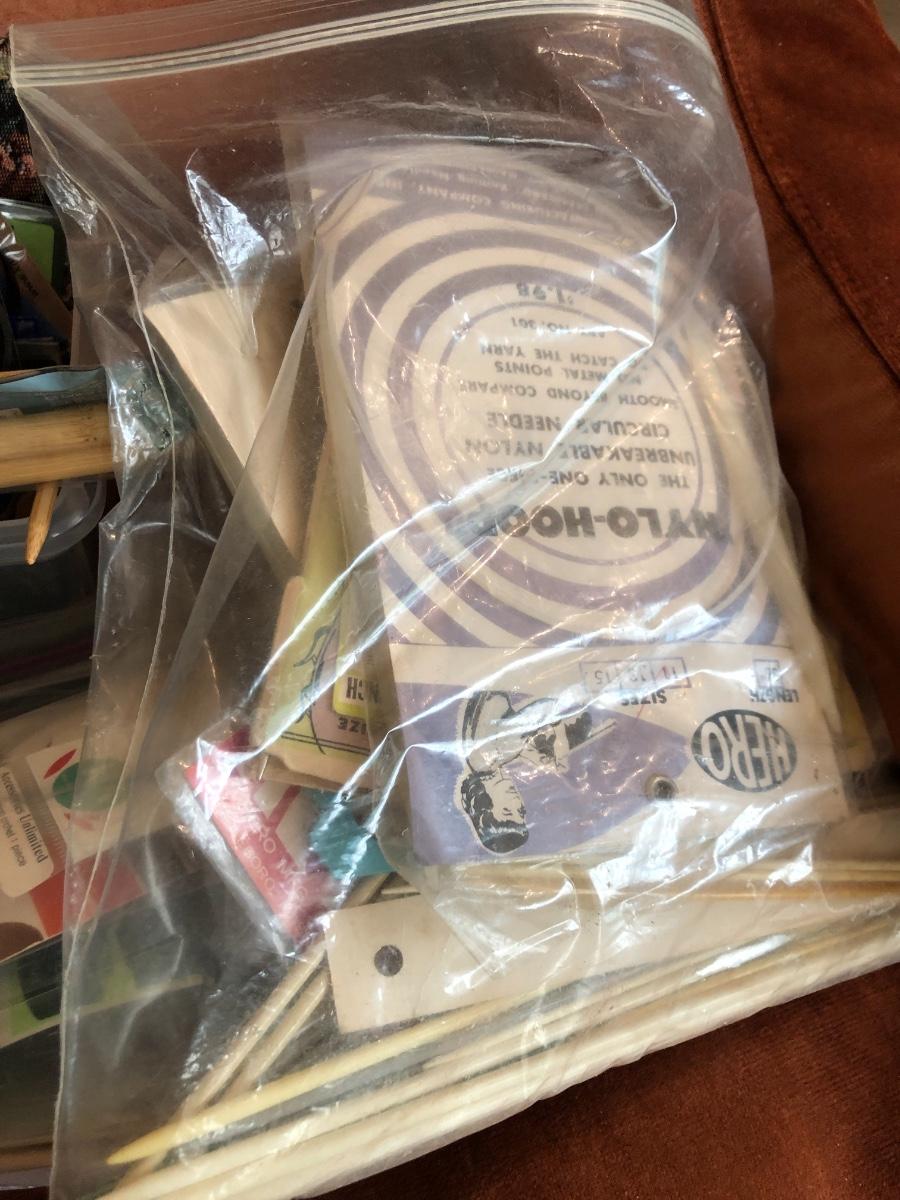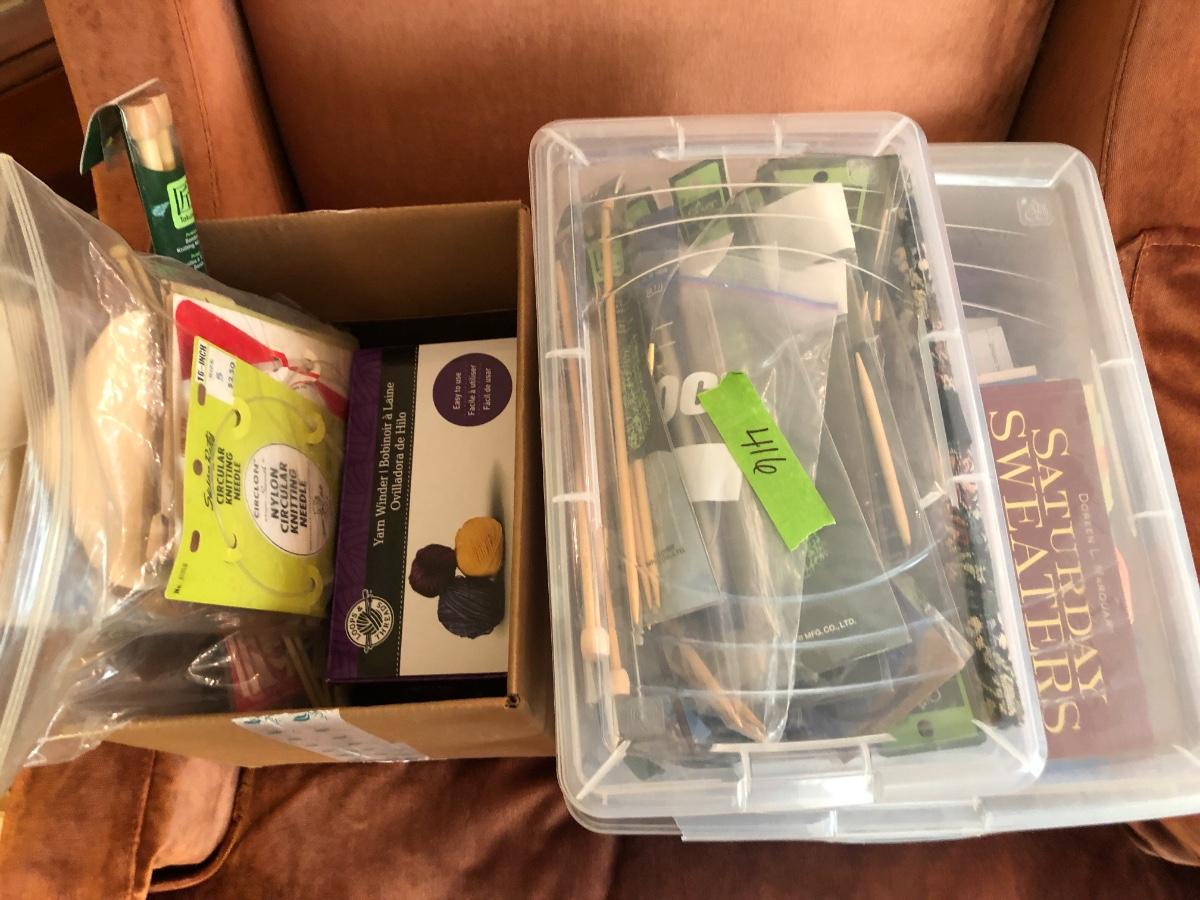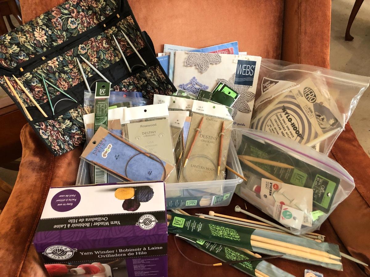Knitting Needles, Crochet Hooks, Hoops, Yarn Winder, Lg. Box Patterns +++ -Lot 416
