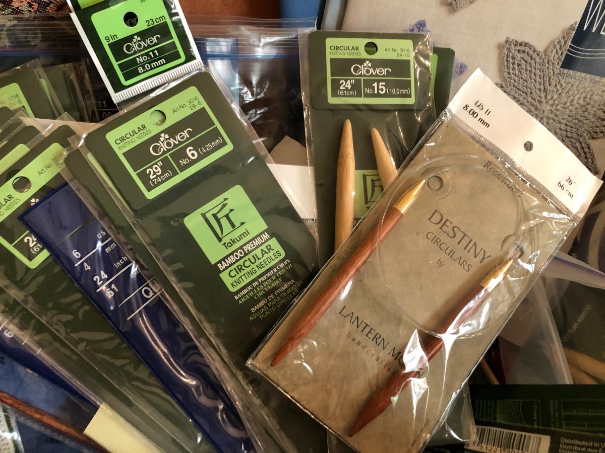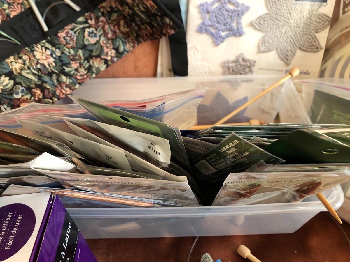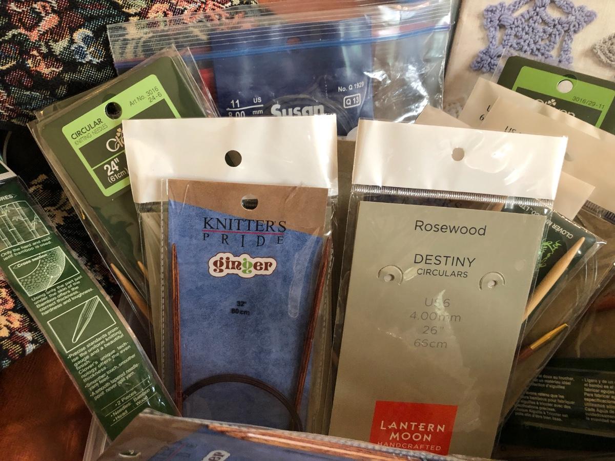 Knitting Needles, Crochet Hooks, Hoops, Yarn Winder, Lg. Box Patterns +++ -Lot 416