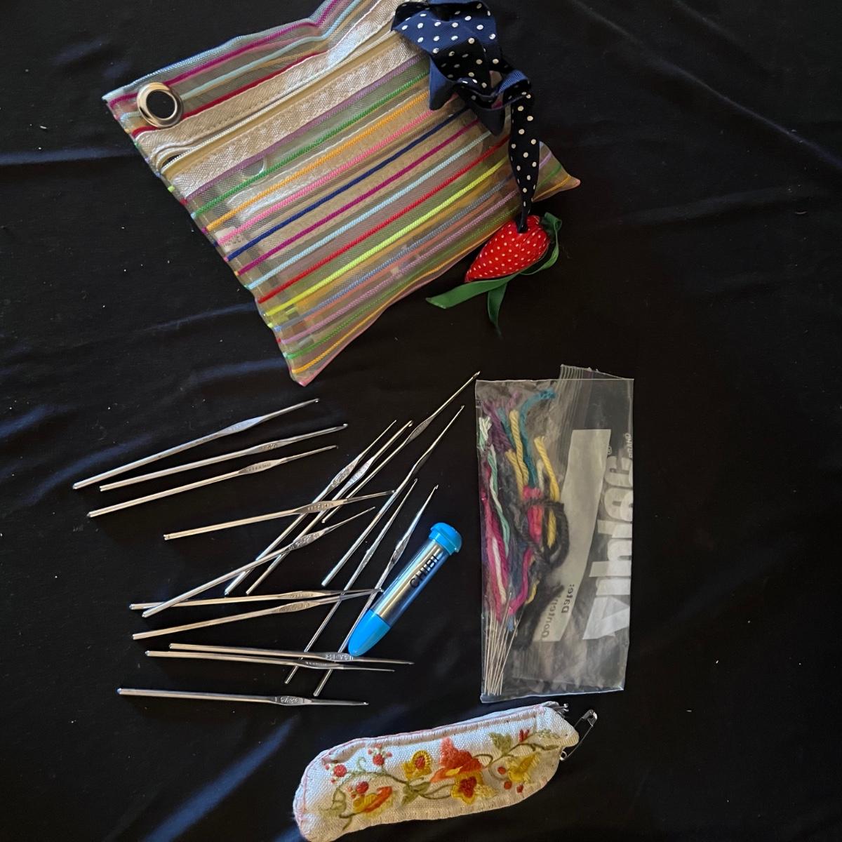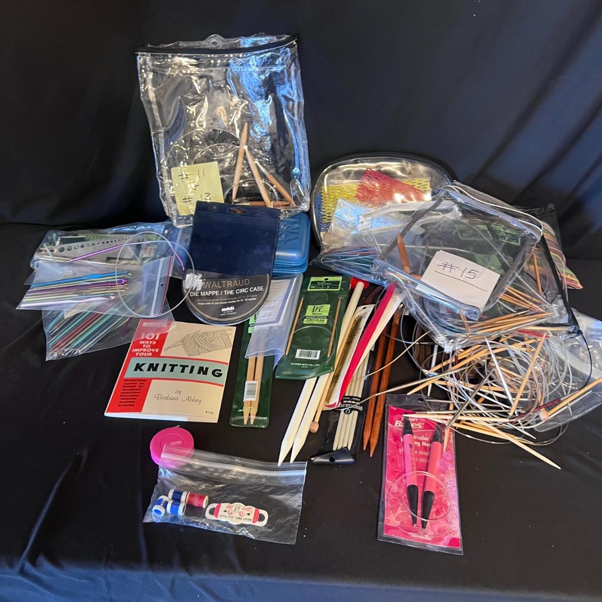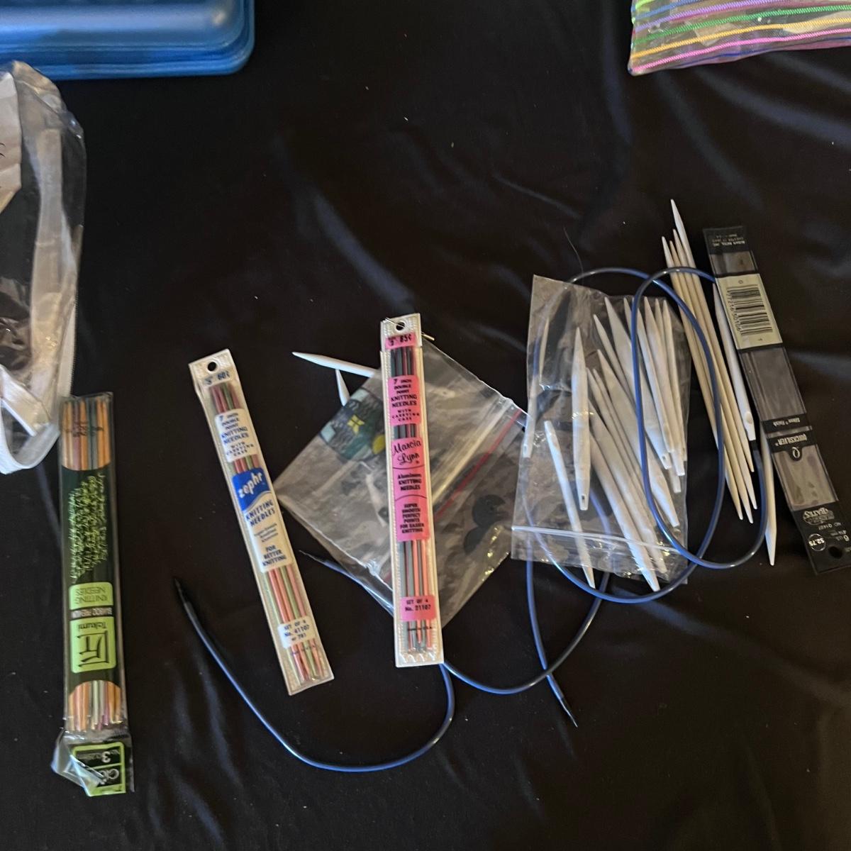 Huge assortment of knitting needles and other sewing accessories. See pics for full inventory. Everything in photos is included.