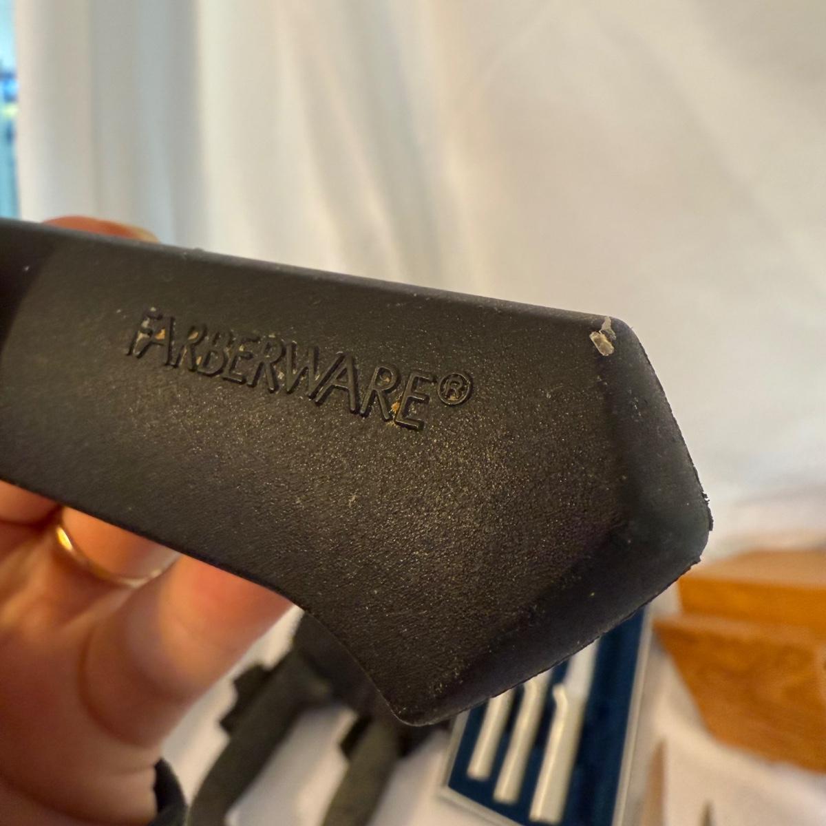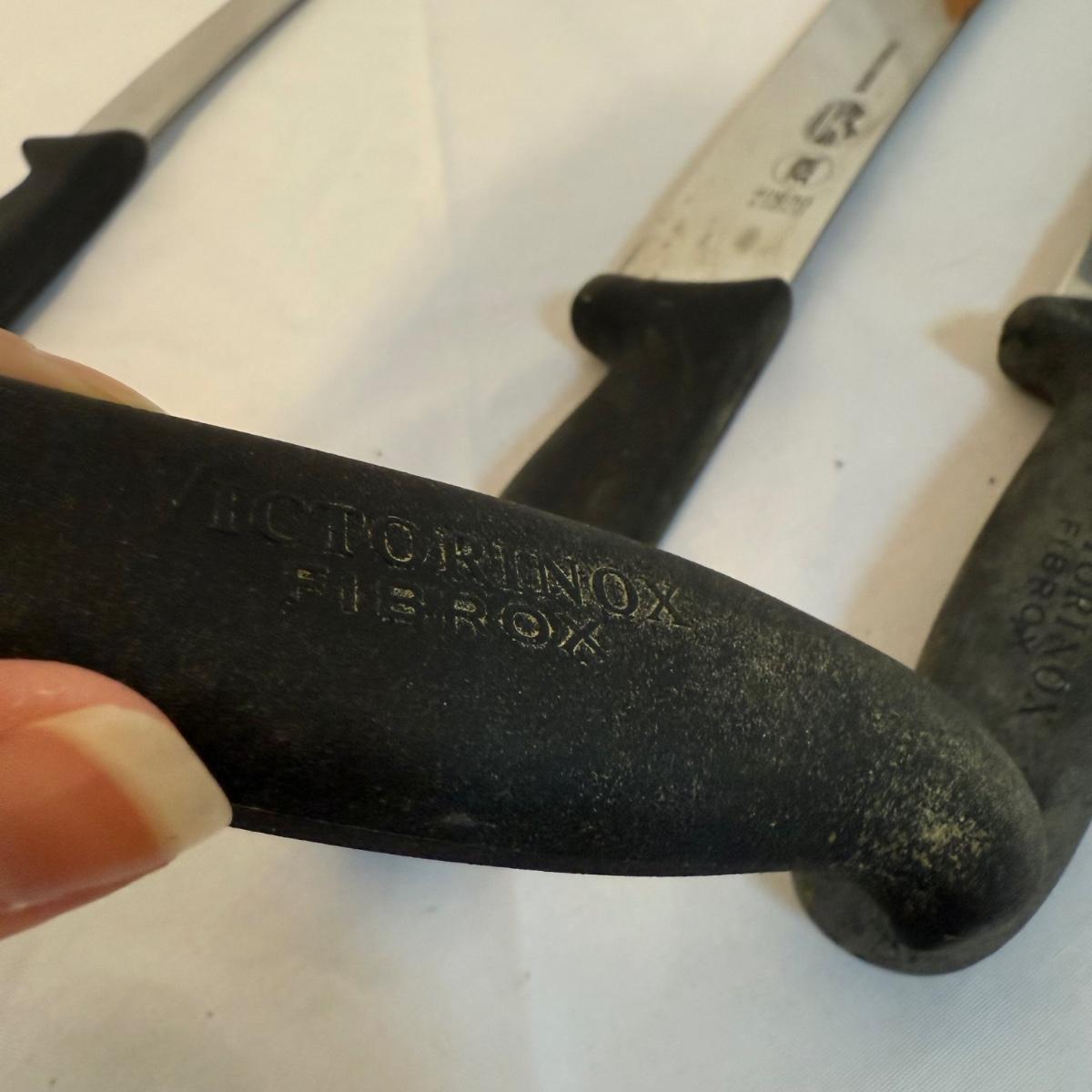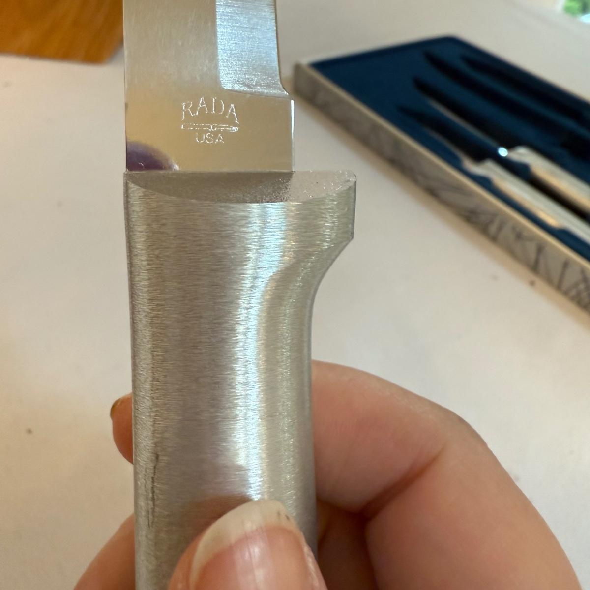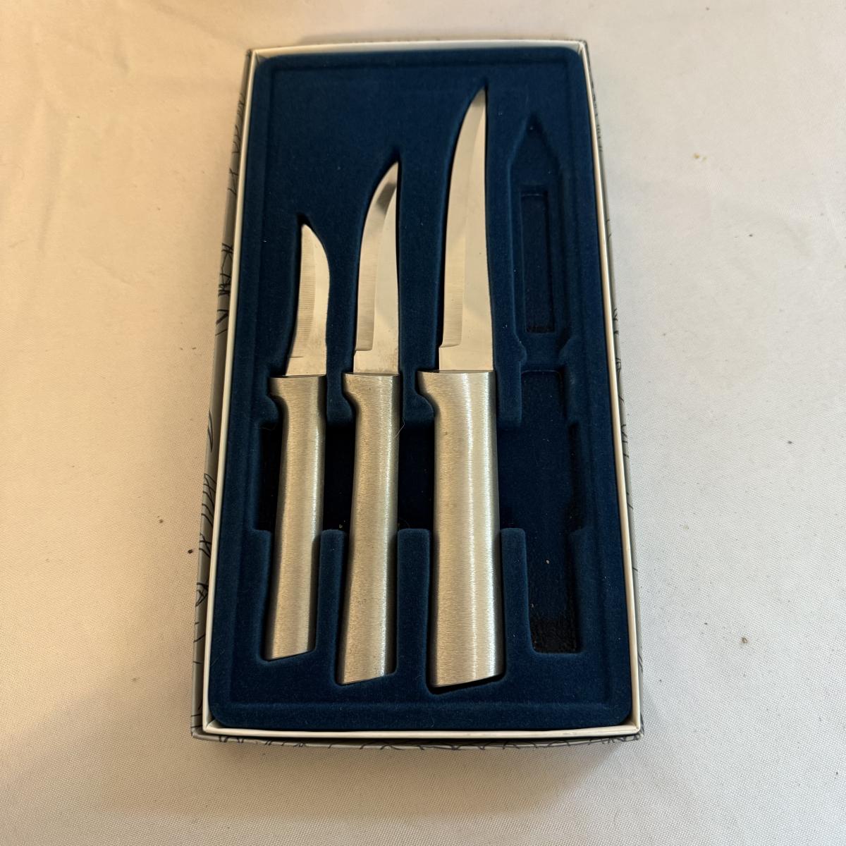 This lot contains over 20 knives. Includes a knife block that measures 7”x 5” x 9”H and comes with 12 knives and some kitchen scissors. Also included are two ‘Chef’s Collection’ knives and three ‘Rada’ knives. Lastly there are four ‘Forschner’ knives with blade covers. The largest measures 17” from the tip of the blade to the handle and the smallest measures 13.5”. These knives and the blade covers could use a cleaning. Shipping available.