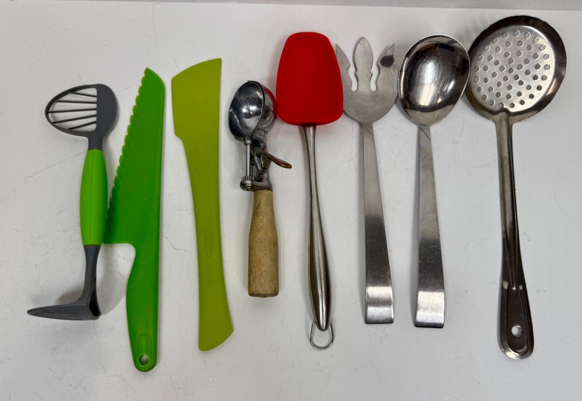 Kitchen Tool Lot - Ice cream scoop, Slotted Spoon, Silicone Spoon, Serving Spoons, etc