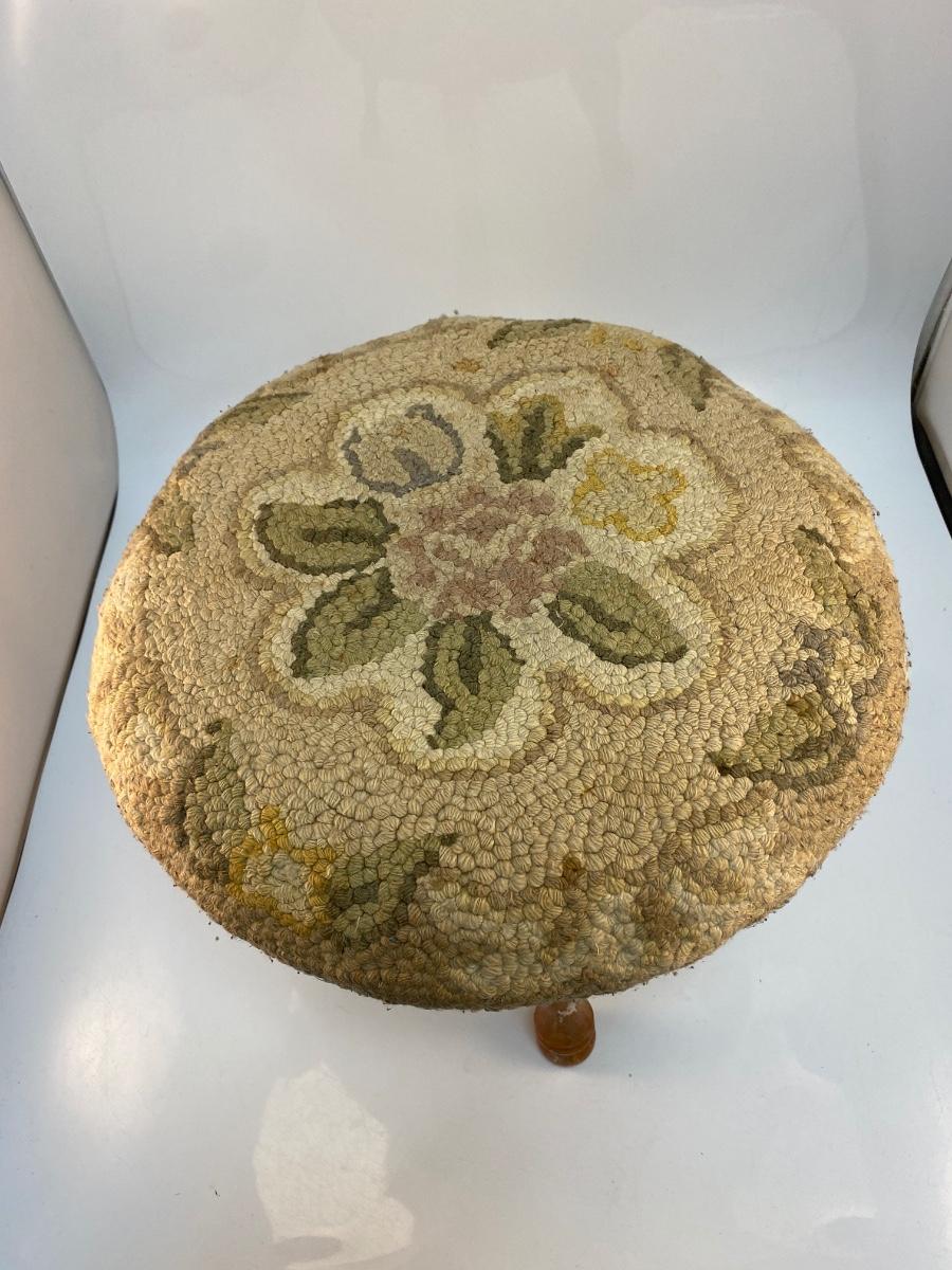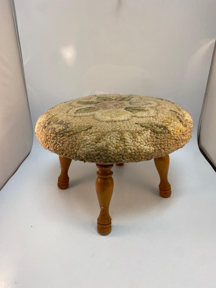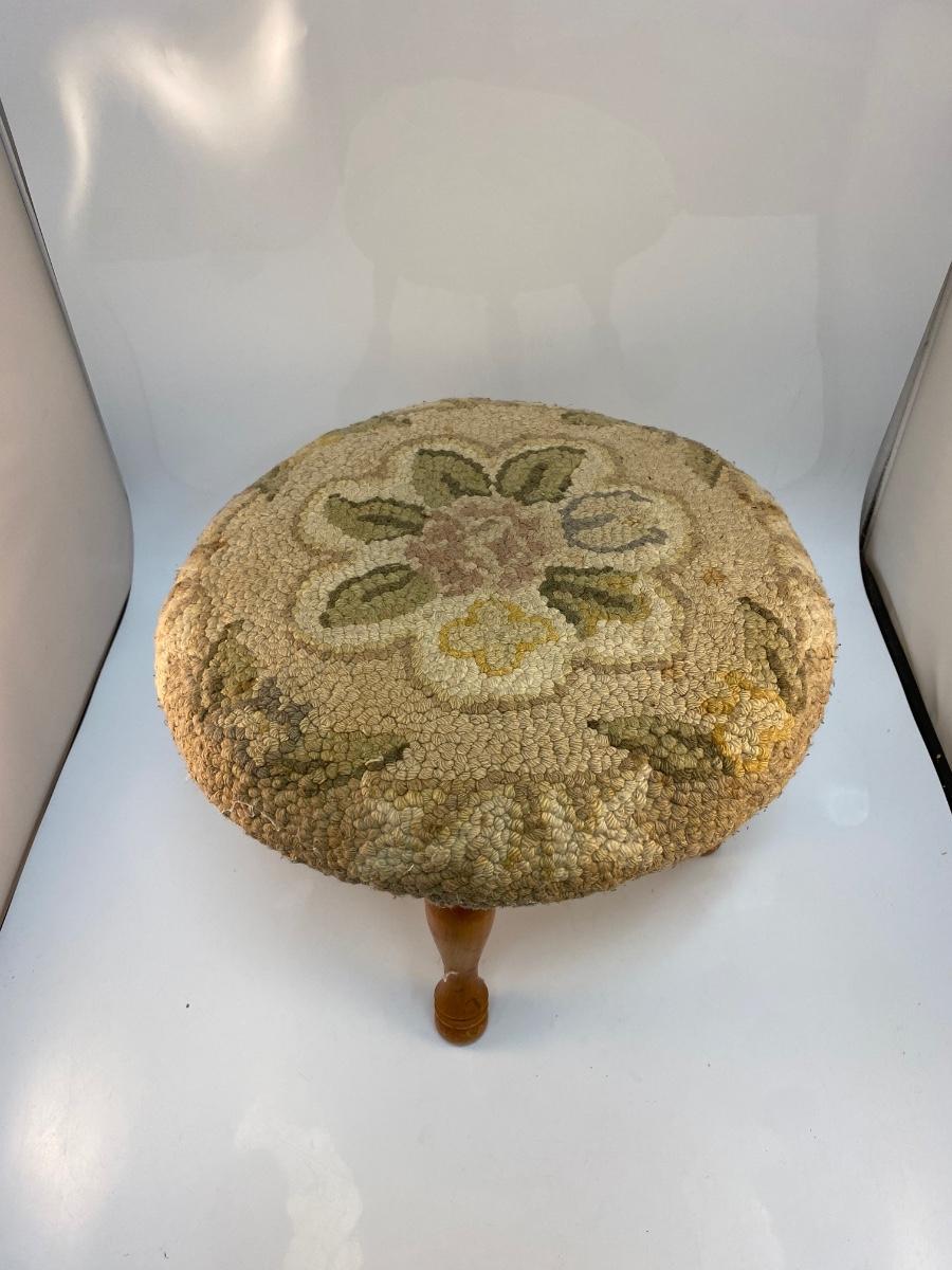 Vintage Floral Patterned Upholstered Footstool. Sturdy. Some discolor from age and use.