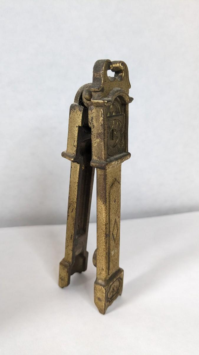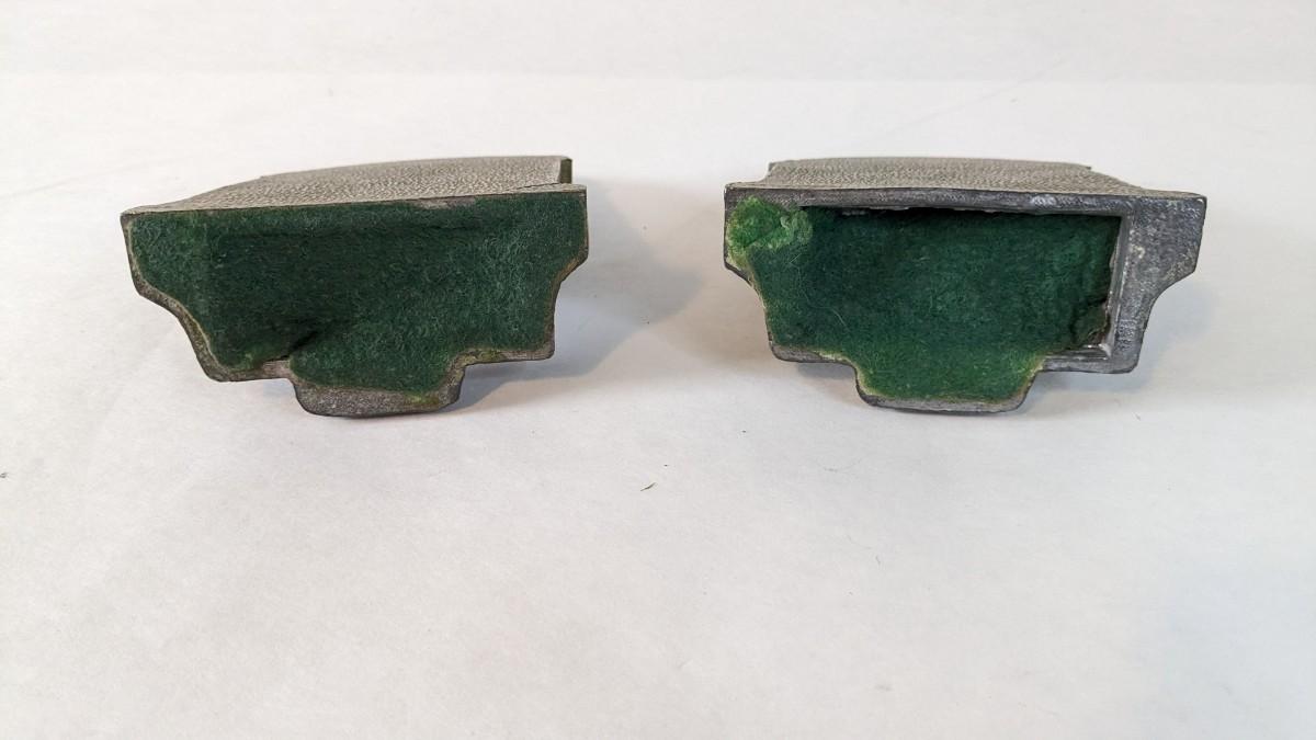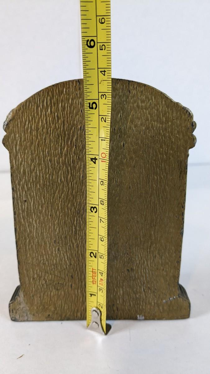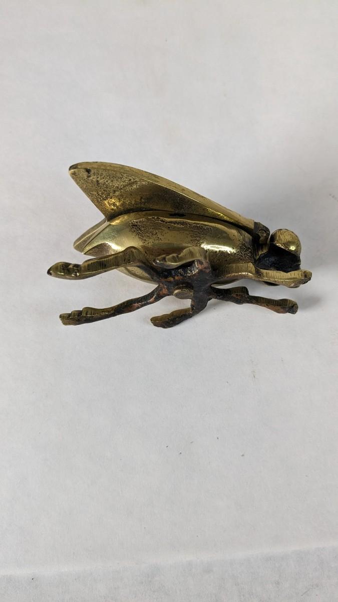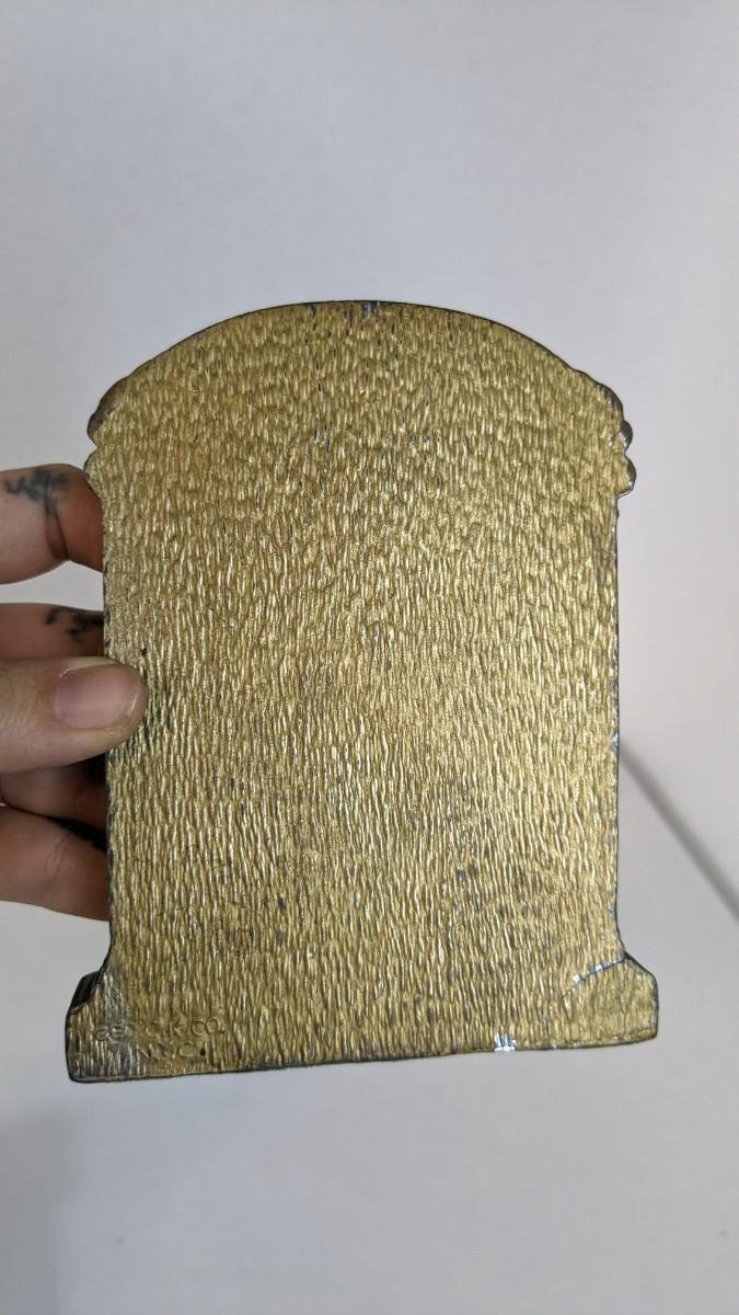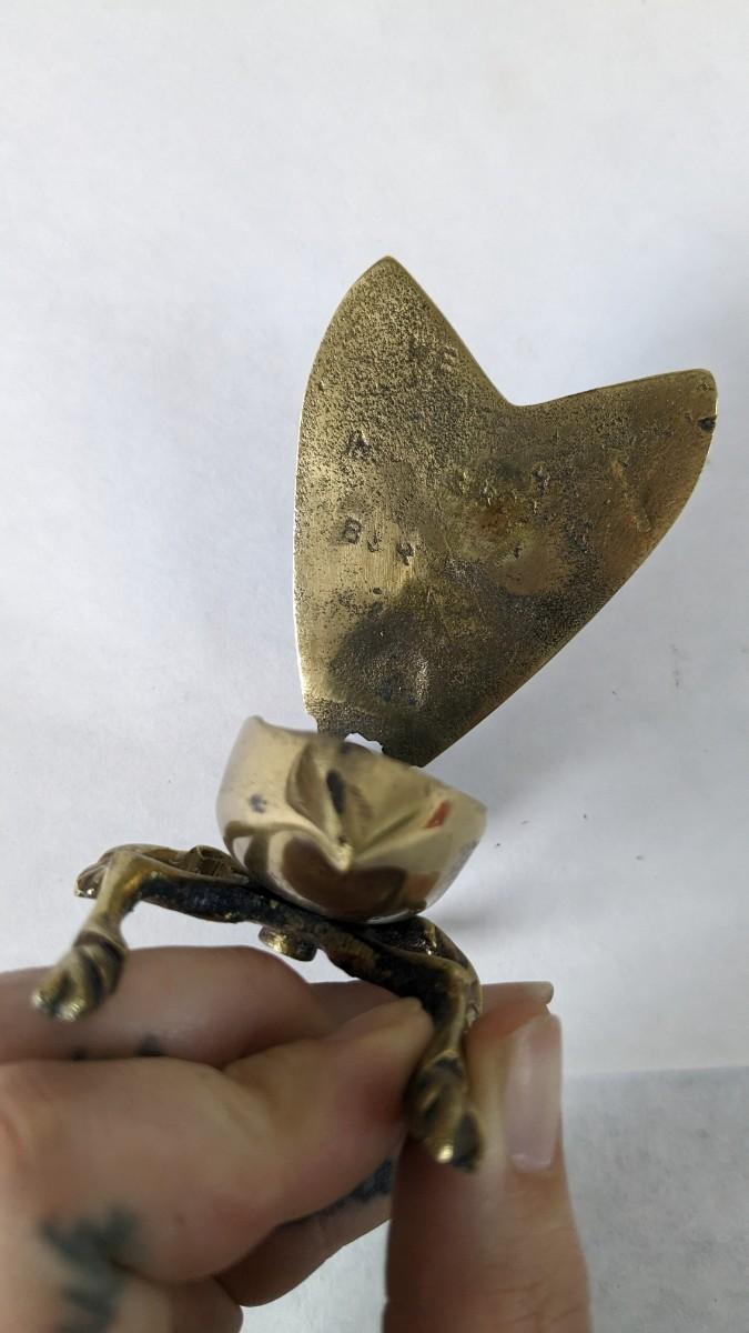 Includes two solid brass door knockers, brass fly ashtray, hollow cast "The Thinker" bookends by Geo Ck Co. NYC please note one of them has a crack and the other has bottom push among other various wear noted in photos, and heavy antique Bradley and Hubbard Lion bookend. Patina noted to all pieces.