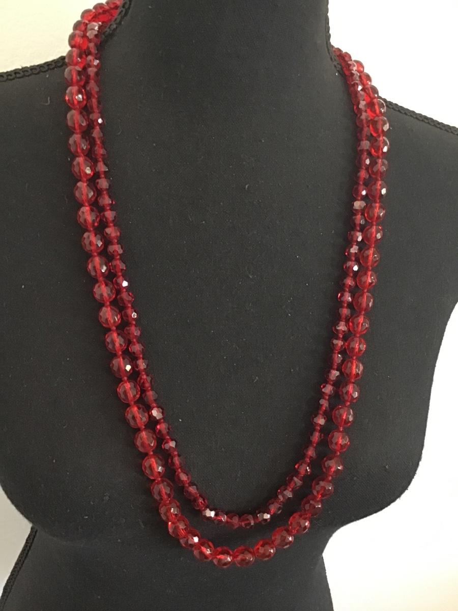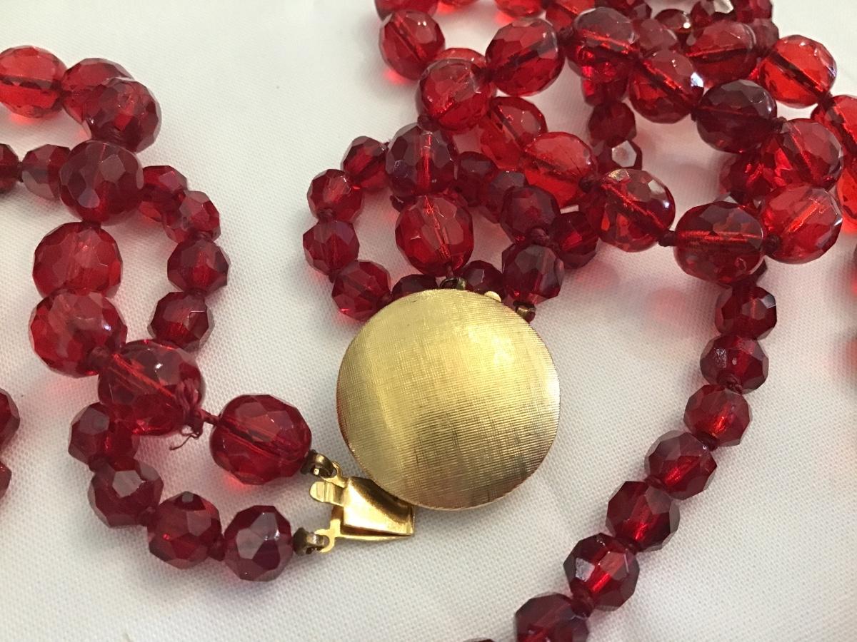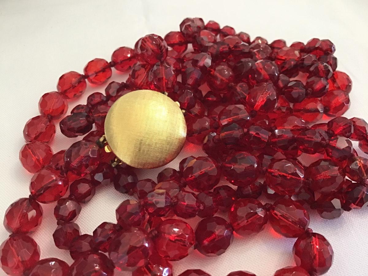 Knotted Double Strand Red Glass Necklace