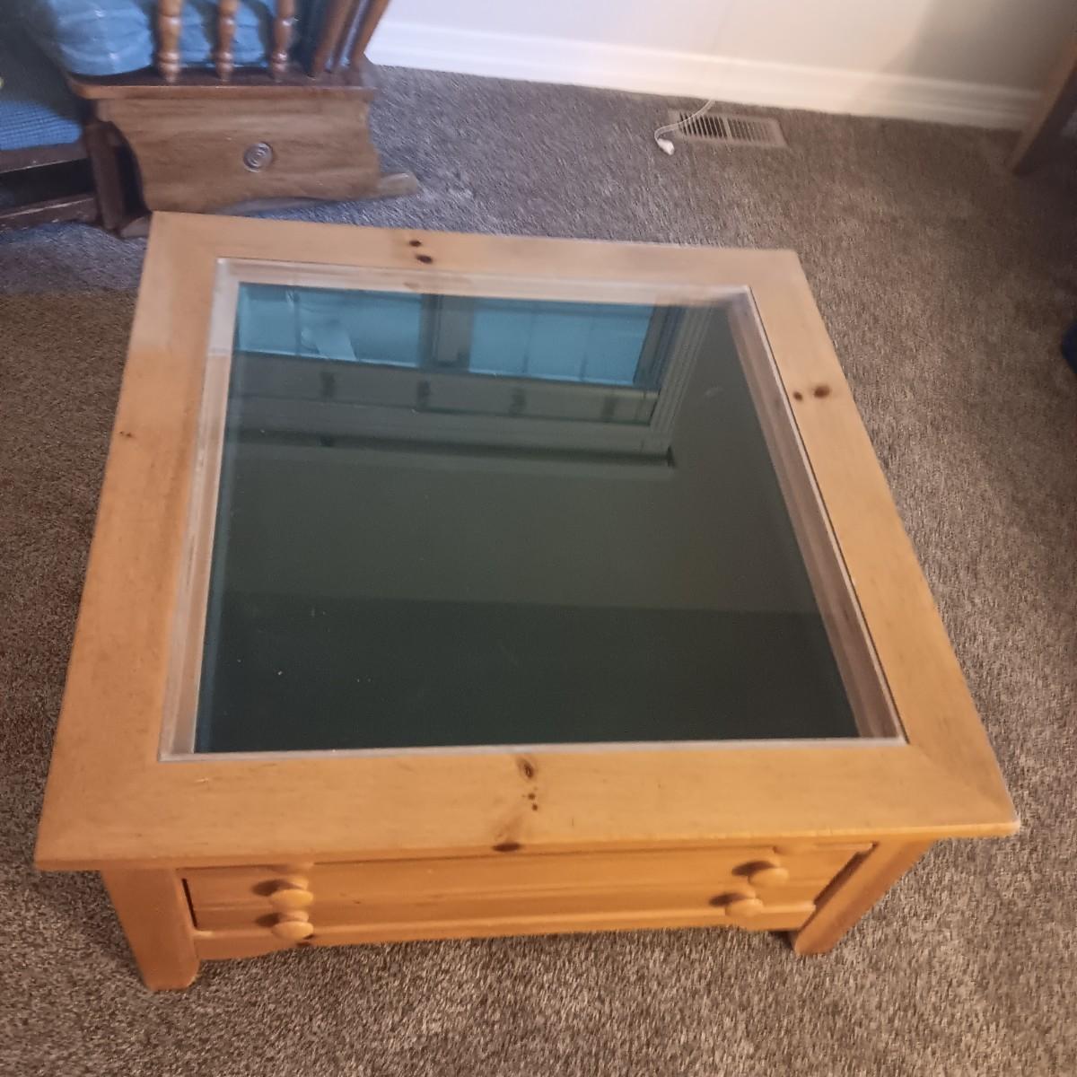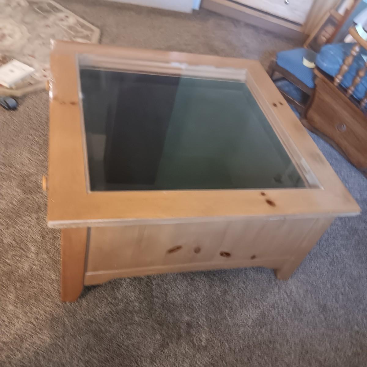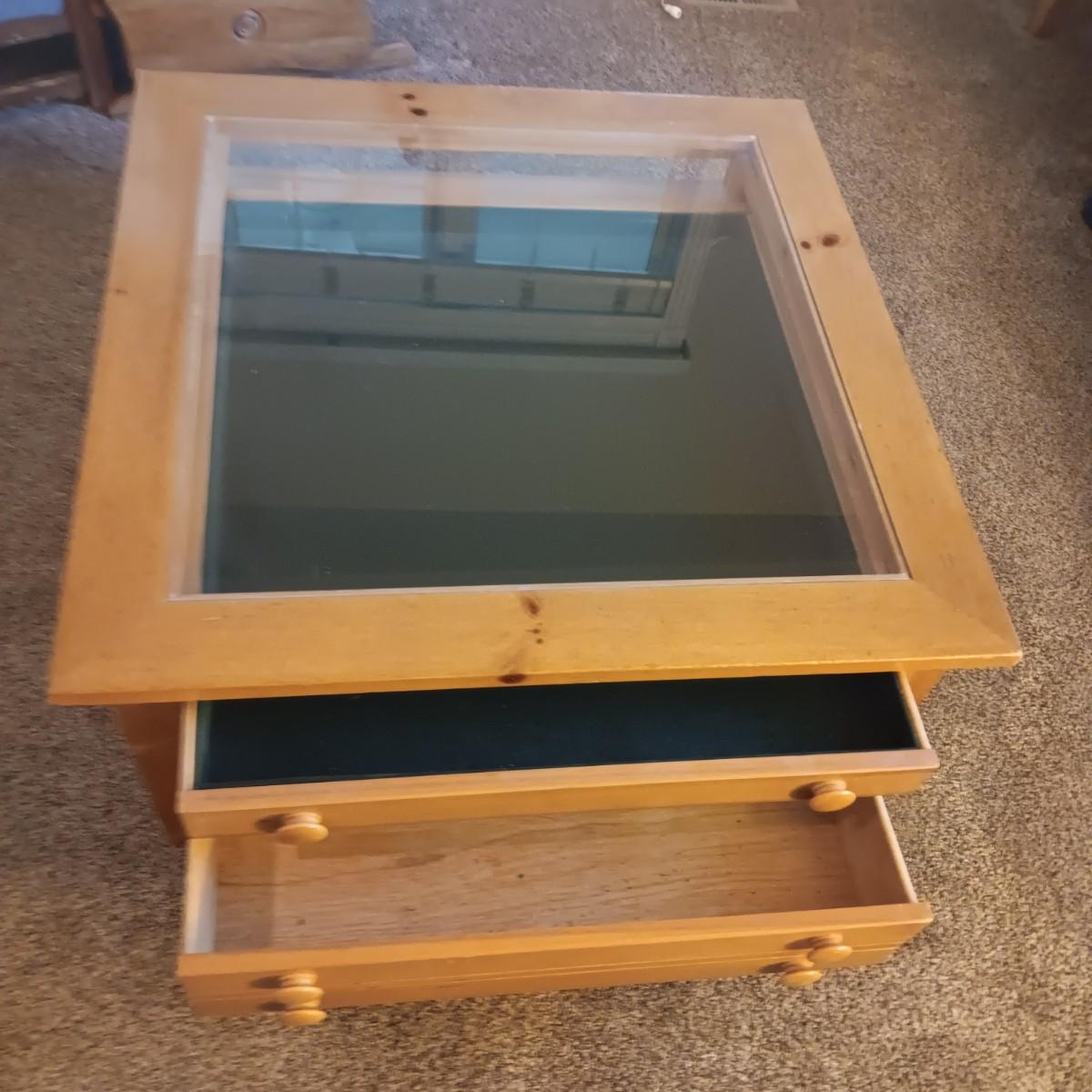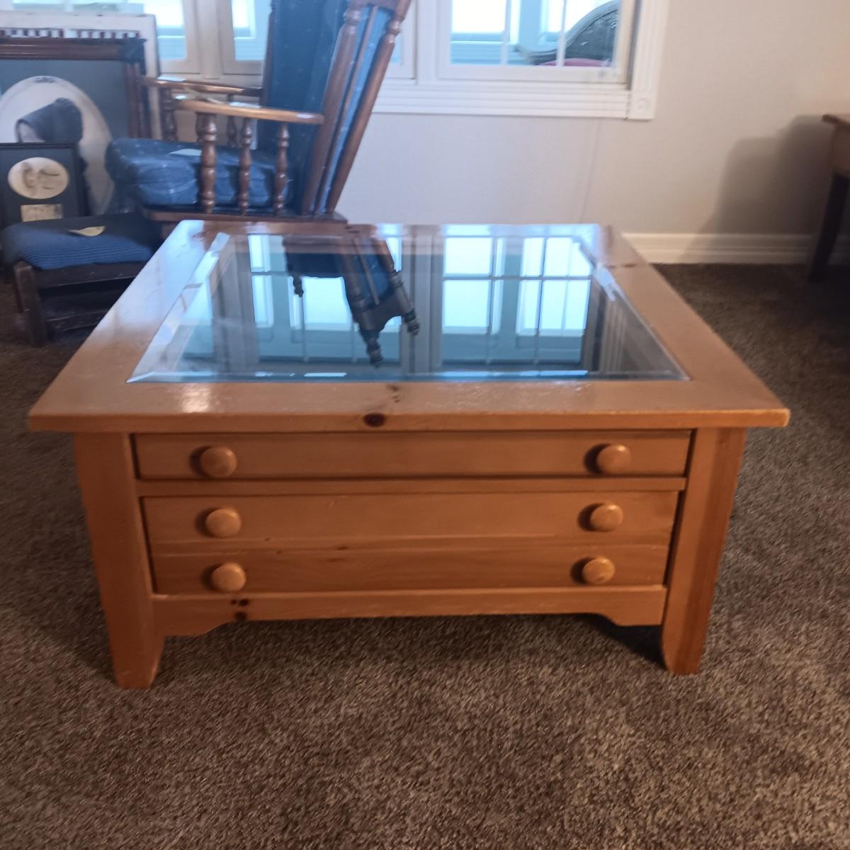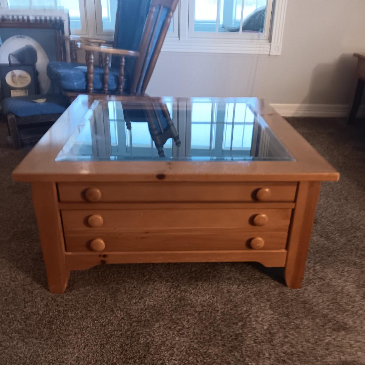 KNOTTY PINE DISPLAY COFFEE TABLE WITH DRAWERS