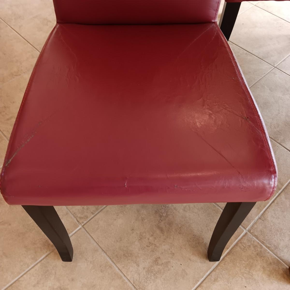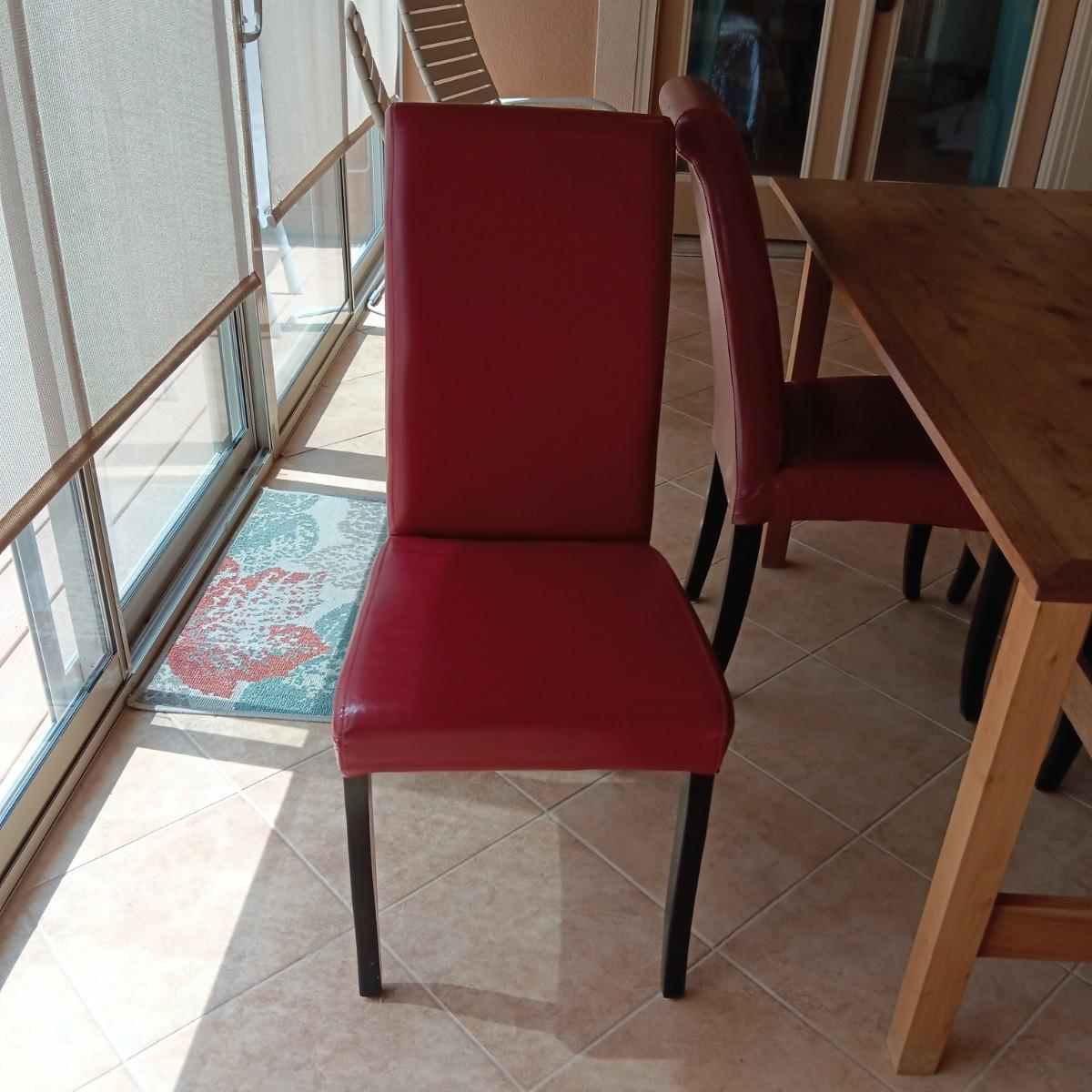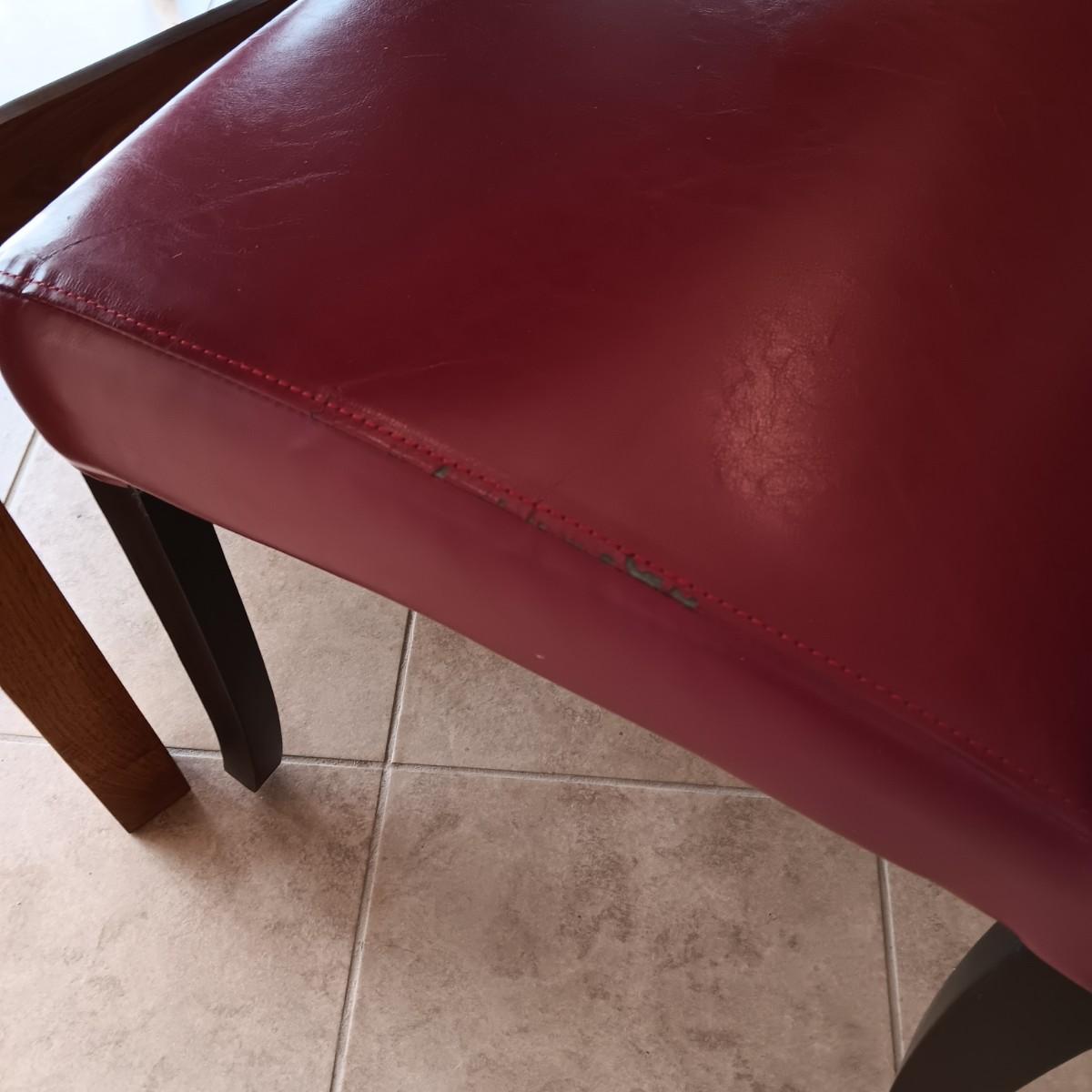 THE TABLE IS LOCATED IN THE SUN ROOM, WHICH GETS A LOT OF SUN. THEREFORE, THE CHAIR'S VINYL IS STARTING TO CRACK AS WELL AS OTHER SUN DAMAGE