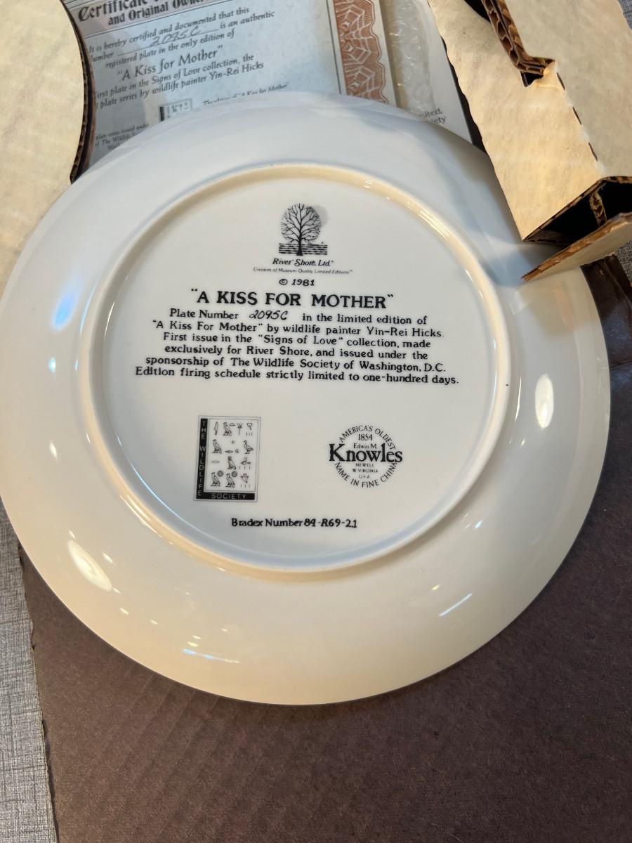 Knowles Decorator Plate titled " Kiss from Mother" In Original Box