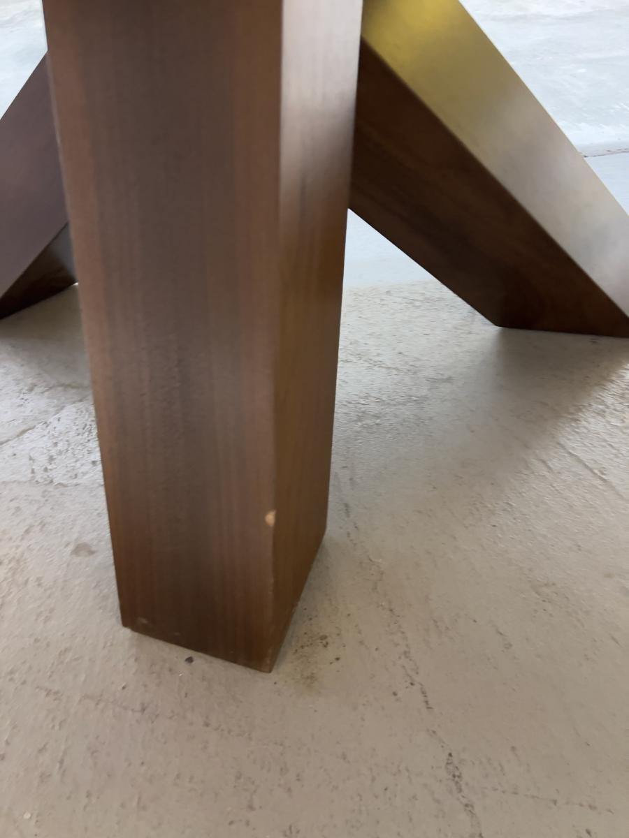 Table top is beautiful. Not used. The Base does have a minor chips - See Photo. t comes in 2 pieces to move. High quality! Please provider moving assistance and secure transportation and or packing materials for moving. Measures 48 X 84 HUGE! Retails for $9,800.