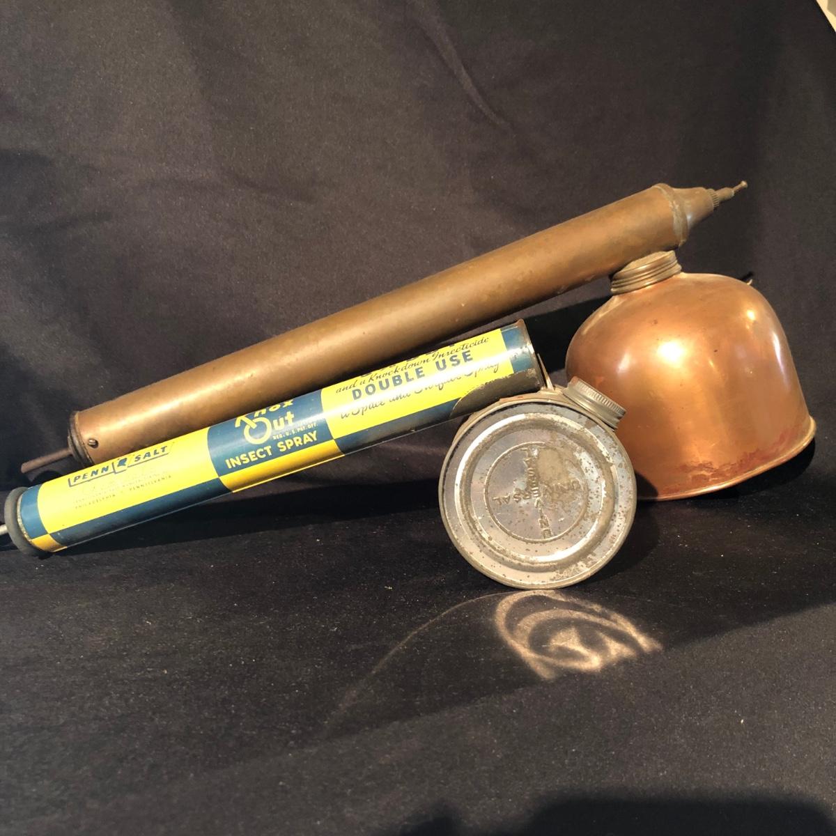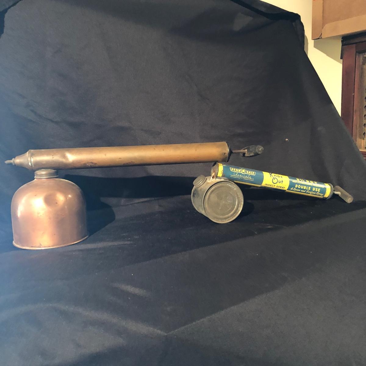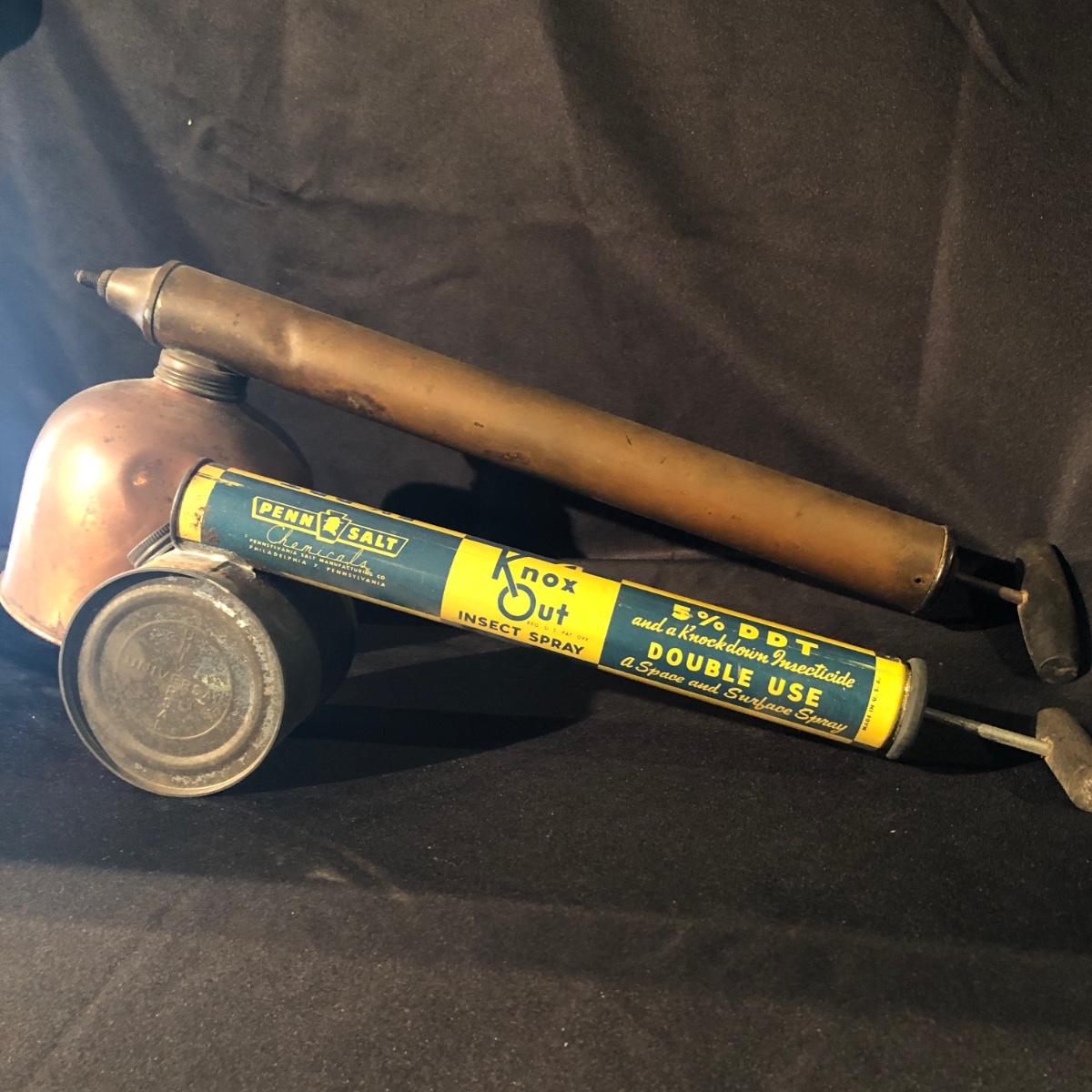 This lot contains 2 sprayers: one Penn Salt Knox Out Insect Sprayer and a D.B. Smith & Co. Blizzard sprayer. Both sprayer’s arm move smoothly. The Knox Out measures 13” long (with arm inside) and the Blizzard is over 18” long. Shipping Available.