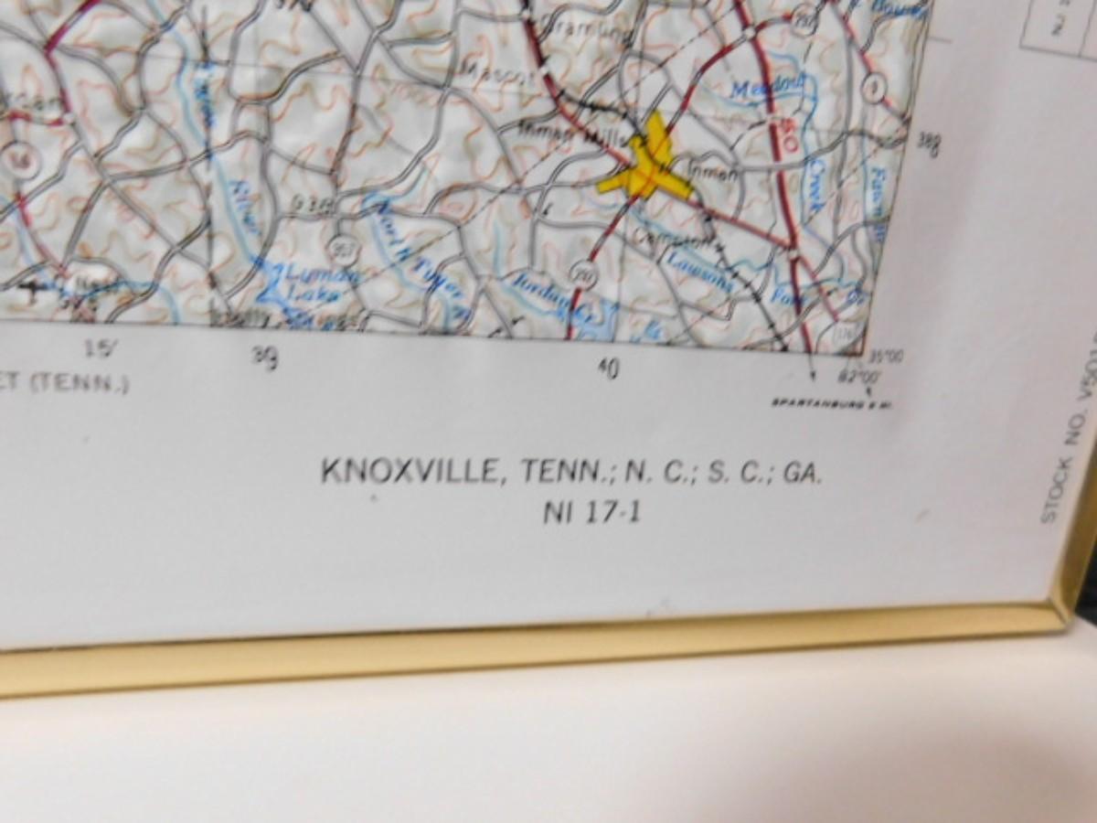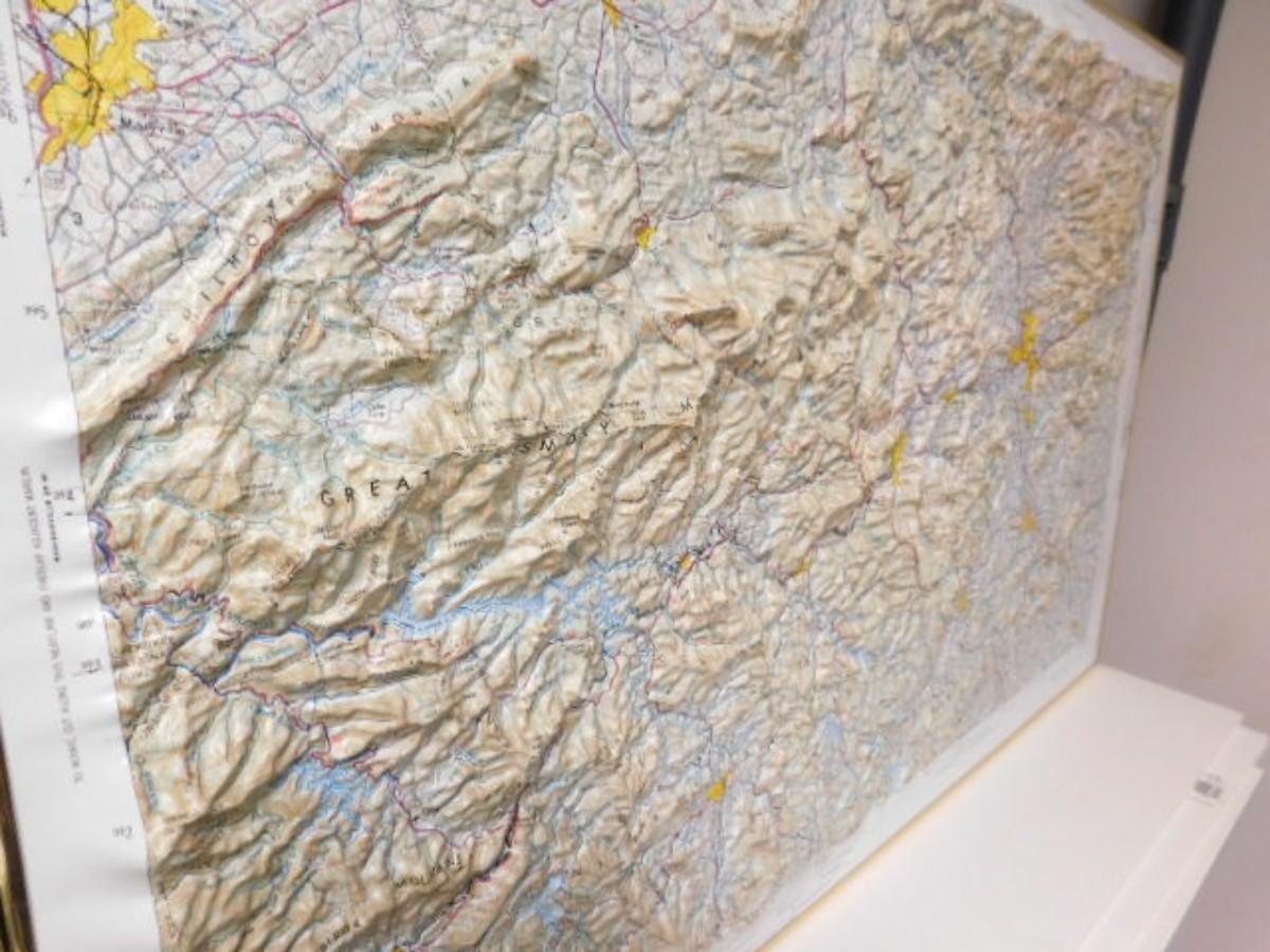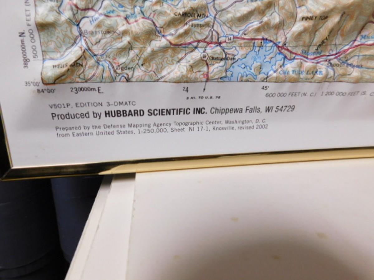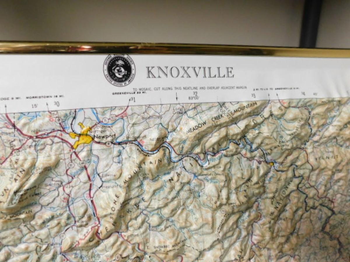 Knoxville Blue Ridge Parkway Relief Map Pressed Plastic in Frame