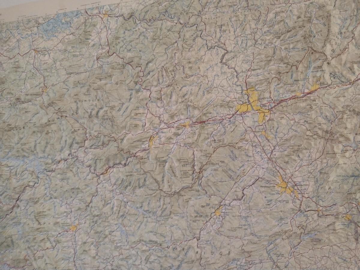 Knoxville, TN Blue Ridge Mountains Relief Map 1972