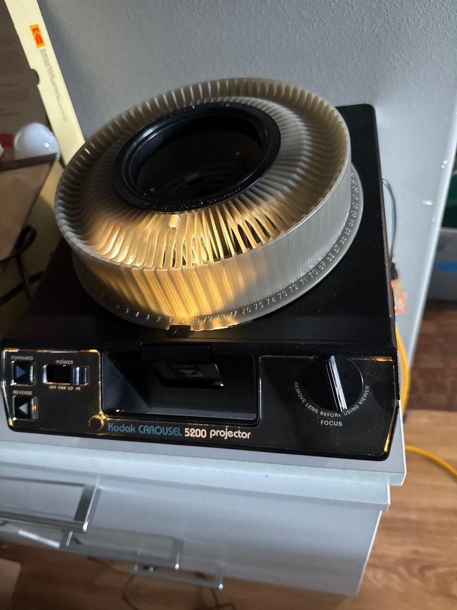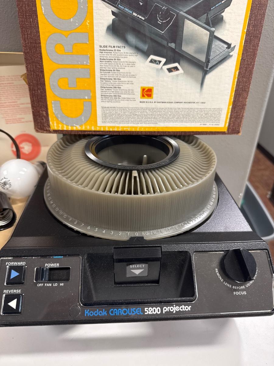 Kodak carousel projector 5200. I turned on the light came on. The fan came on. I did not put any slides into project..