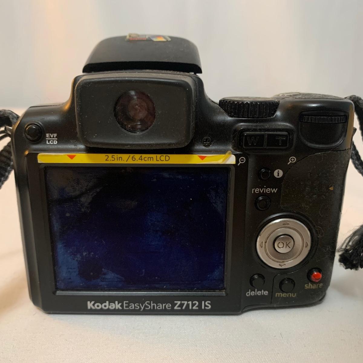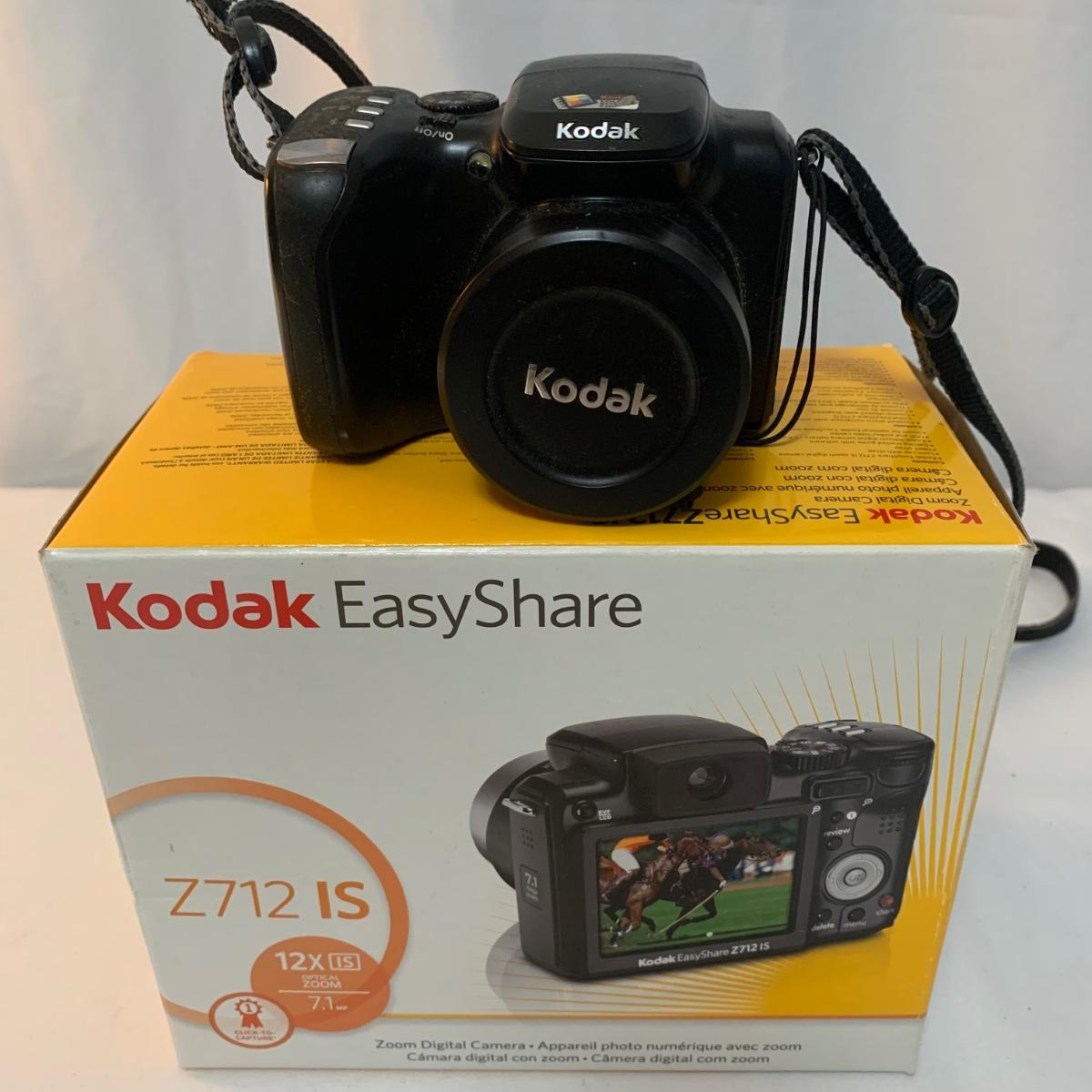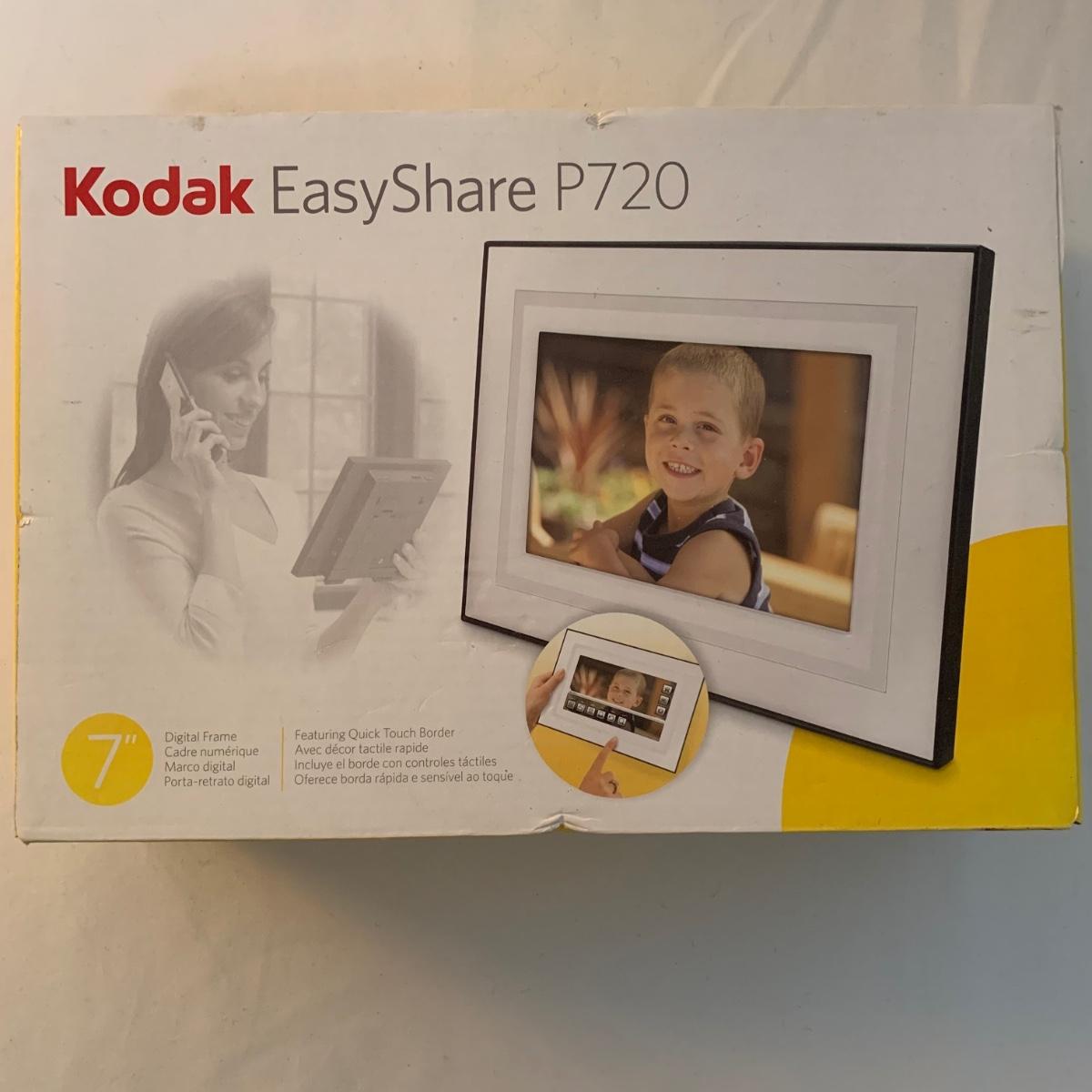 This Easy Share kit includes an unopened Kodak EasyShare P720 7” Digital Frame, unopened Kodak color cartridge & photo paper kit, and Kodak Z712 IS Zoom Digital Camera with 7.1 MP. All items appear to be in good condition, however we are unable to verify functionality due to uncharged batteries.